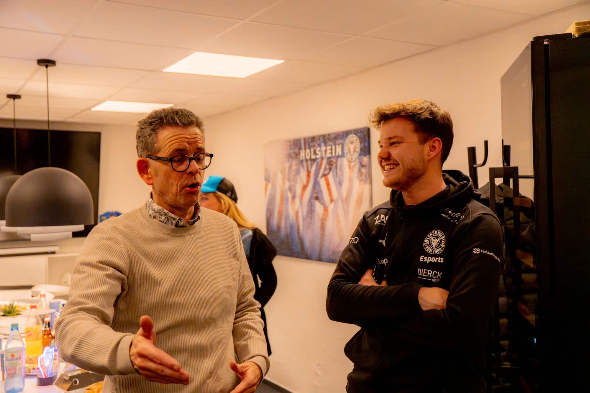 Um unsere eStorks bei ihren wichtigen Spielen zu unterstützen, trafen sich die Sponsoren Lennart Krieger (sonne.SH), Stephan Lüthe (Butzkies Stahlbau GmbH), Susann Weiss (IKK – Die Innovationskasse) und Tom Malessa (d.velop AG) sowie Daniel Rach (Leiter Vermarktung Holstein Kiel) am Dienstagabend in unseren eSport-Räumlichkeiten. Nach dem erfolgreichen zweiten Duell gegen Heidenheim hatten die Partner dann Gelegenheit, unsere Spieler persönlich kennenzulernen und sich mit ihnen über den eSport-Alltag und die VBL-Spieltage auszutauschen. Auch für ein direktes Kräftemessen an der Konsole war ausreichend Zeit, sodass der Abend einen rundum gelungenen Abschluss fand.