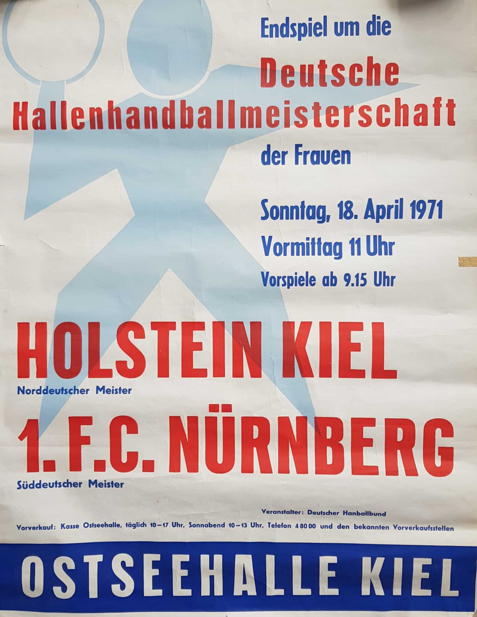 Am 18. April 1971 stand das große Finale in der Kieler Ostseehalle auf dem Programm. Wie schon im Endspiel des Vorjahres traf Holstein erneut auf den amtierenden Meister, den 1. FC Nürnberg. Nach der Finalniederlage 1970 hatten die KSV-Akteurinnen fast ein Jahr kein Spiel mehr verloren. Zur Vorbereitung auf den großen Tag hatte Bartels, der Großvater des ehemaligen Störche-Profis Fin Bartels, zum Kurztrainingscamp in Plön und Malente gebeten. „Die Chancen stehen 50:50. Unserem Heimvorteil können die Nürnbergerinnen ihre größere Cleverness entgegensetzen“, hatte der ehemalige Kreisläufer des THW Kiel kommentiert.