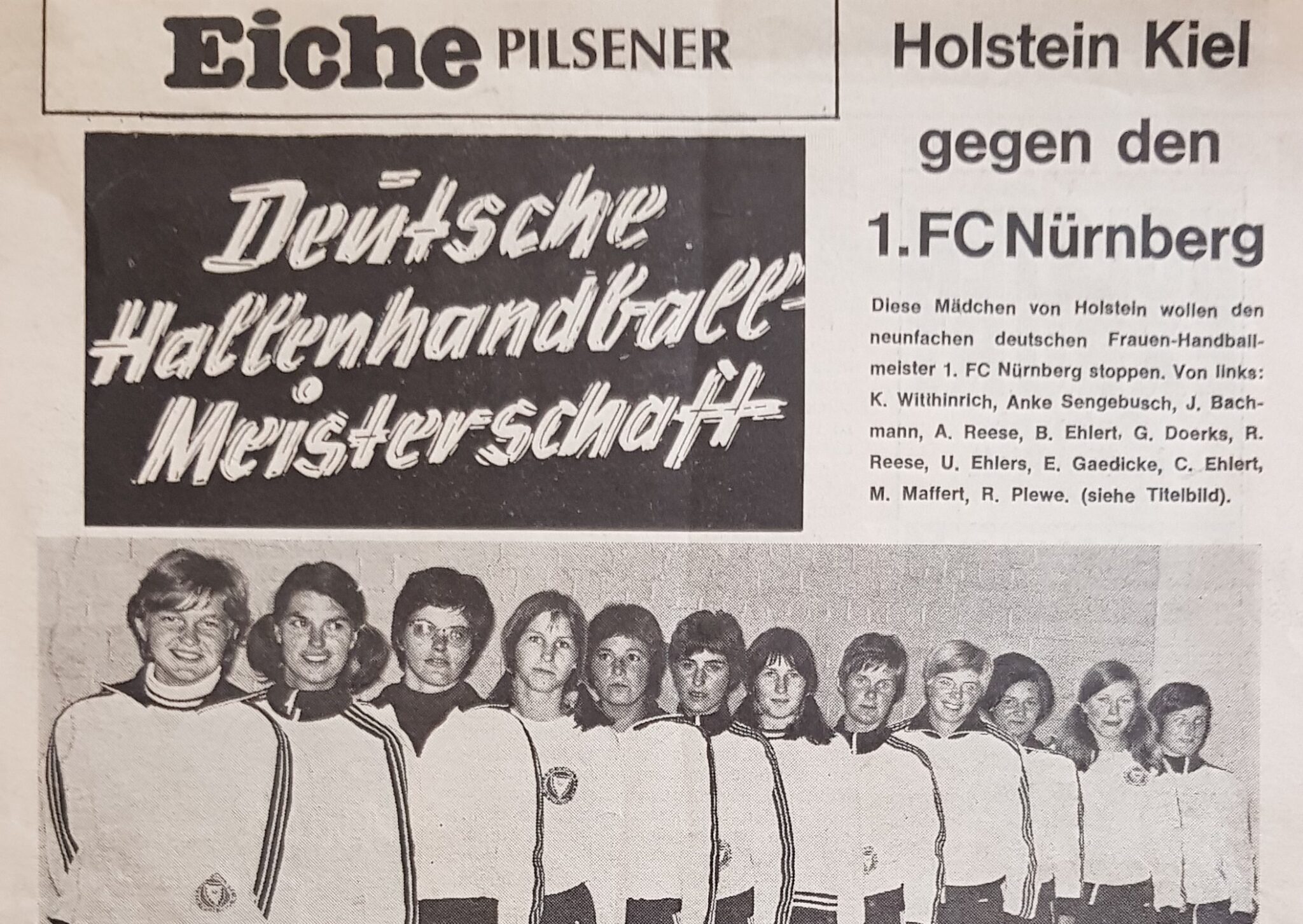 Holstein Kiel: Karin Witthinrich – Gisela Dörks, Renate Plewe (1 Tor), Dagmar Neutze (1), Ursula Ehlers, Carmen Ehlert, Bärbel Ehlert (2), Erika Gaedicke (2), Monika Maffert, Anke Sengebusch. Im Kader: Jutta Bachmann, Anneliese Reese, Renate Reese, Angelika Meyer.