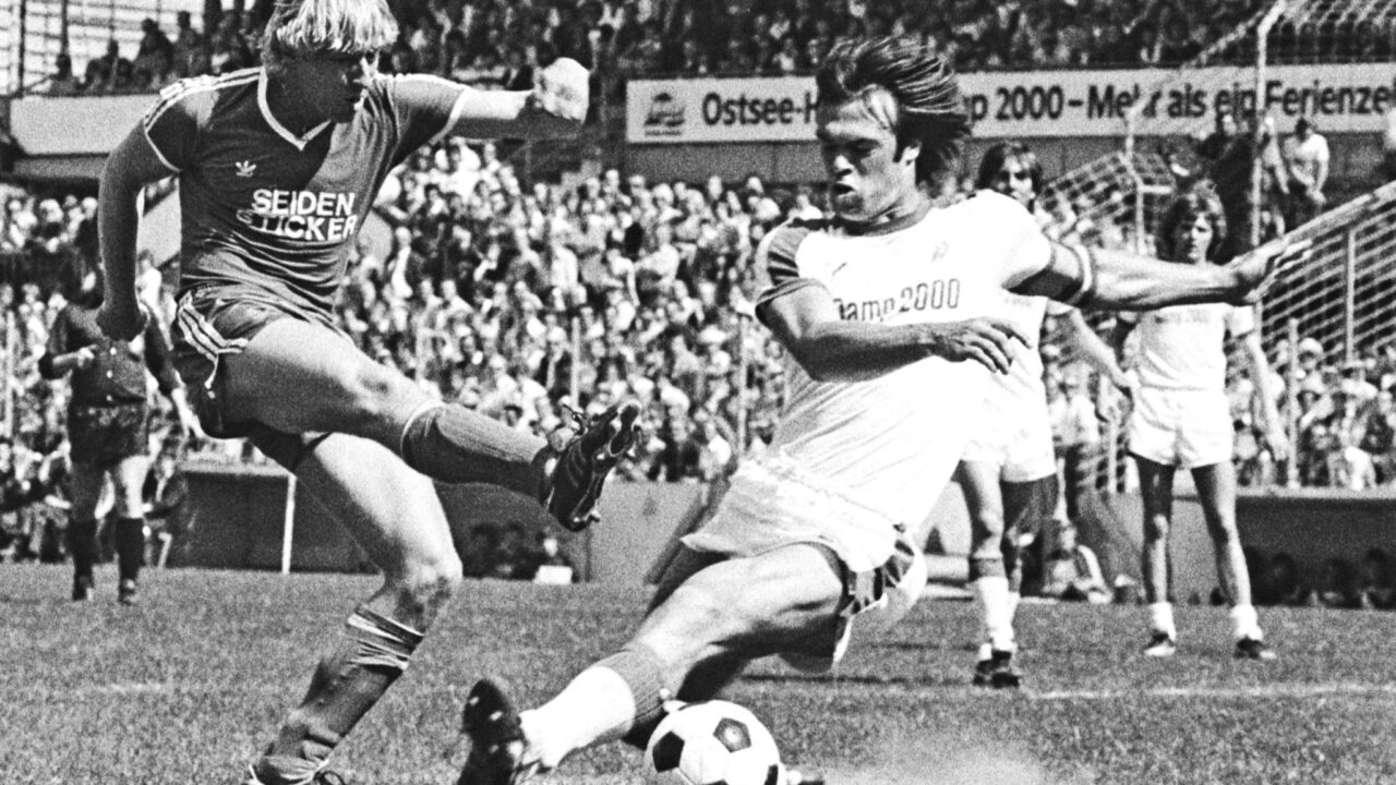 Rassiger Zweikampf im Mai 1980 zwischen Bielefelds Christian Sackewitz und dem Kieler Immo Stelzer