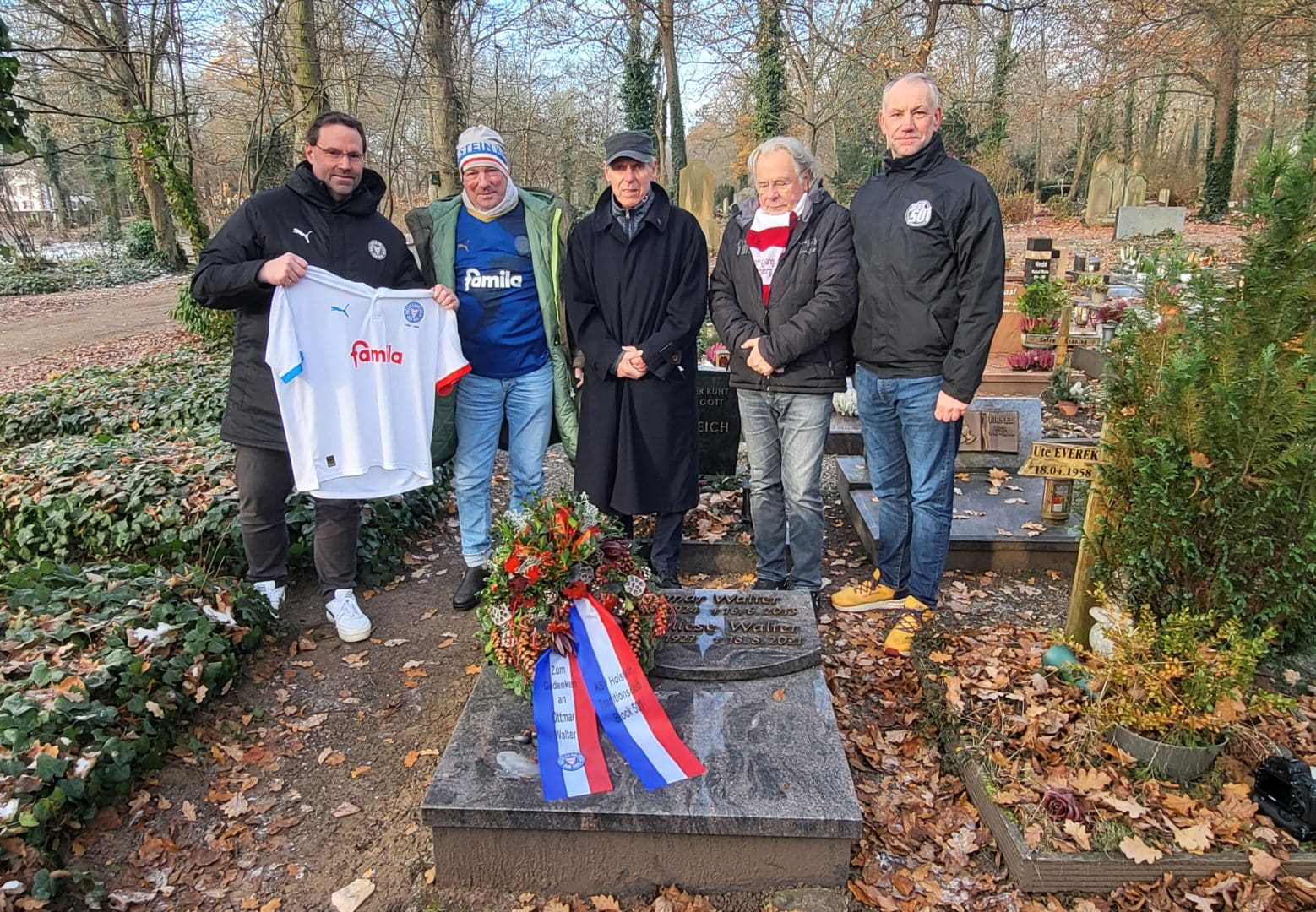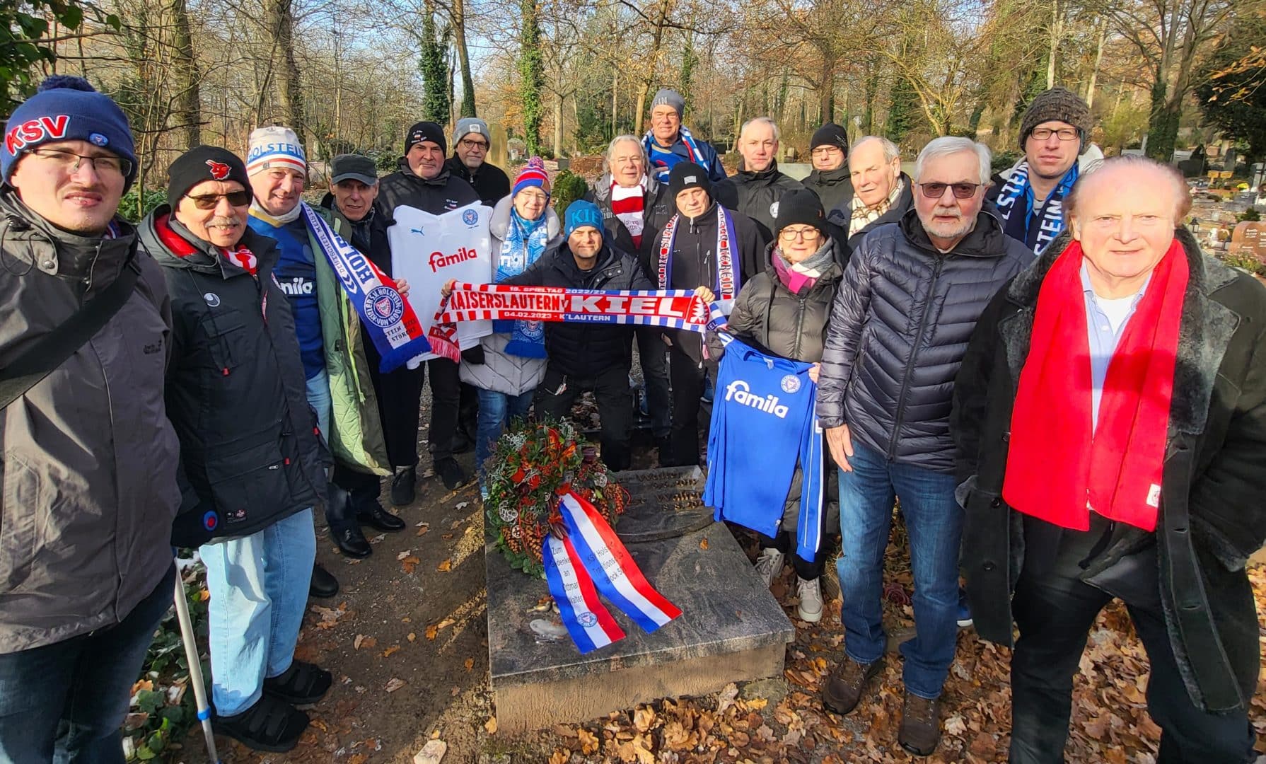 Wenige Wochen vor dem Ende des 125. Vereinsjubiläums der KSV Holstein, in dem der Kieler Traditionsverein an zahlreiche Größen der Vereinsgeschichte erinnert hat, wurde am heutigen Vormittag – im Vorfeld der Zweitligabegegnung zwischen den Störchen und den Roten Teufeln – auf dem Hauptfriedhof in Kaiserslautern am Grab des Fußball-Weltmeisters Ottmar Walter ein Kranz niedergelegt.