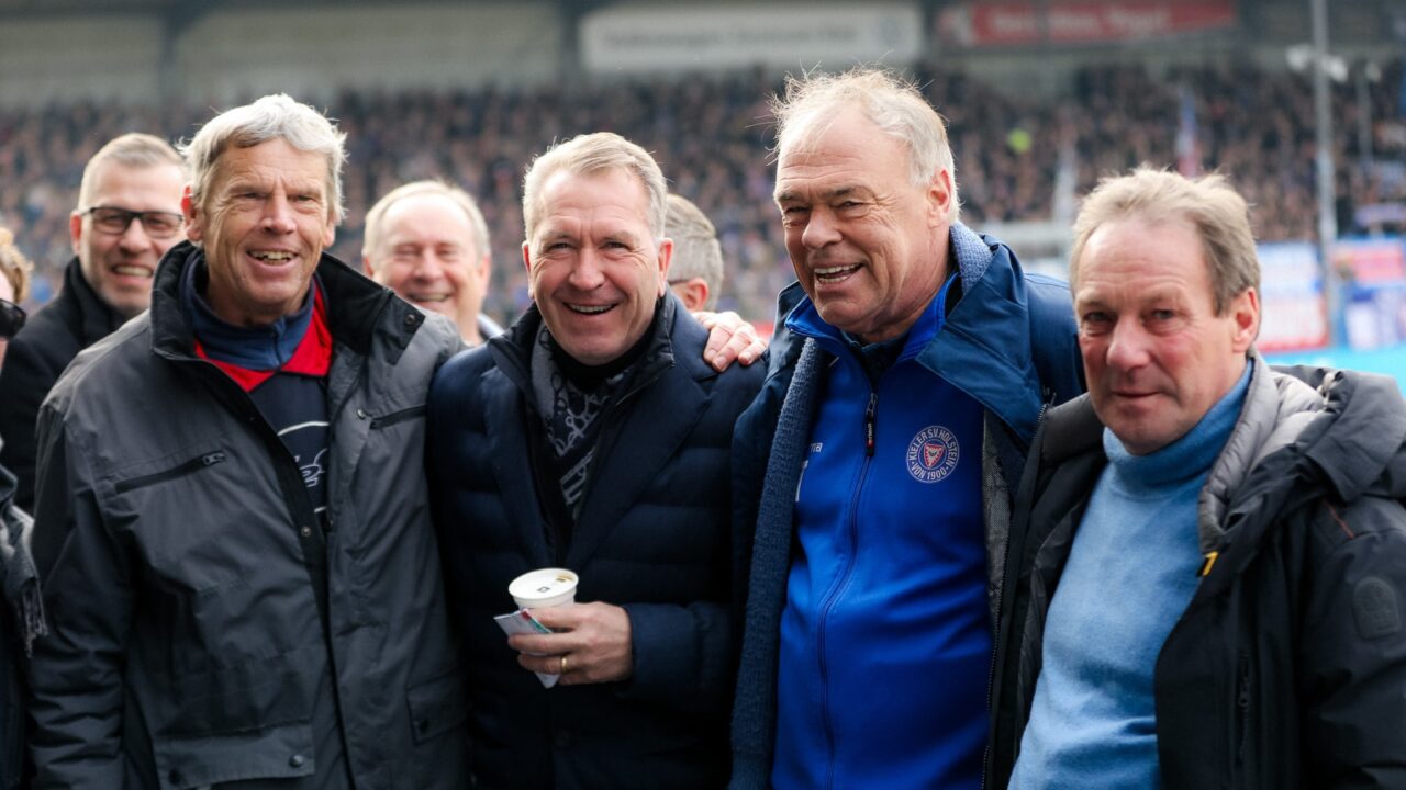 Mit Axel Möller, Andreas Köpke, Immo Stelzer und Thorsten Neumann (Foto von links) trafen sich vier alte Helden aus seligen Zweitliga-Zeiten auf ihrem Holsteinplatz. Insgesamt 906 Punktspiele absolvierten die vier Ex-Störche im Trikot der KSV Holstein. Der Europameister von 1996 und ehemalige Bundes-Torwarttrainer, Andreas Köpke, weilte im Rahmen von Dreharbeiten zum 125. Vereinsgeburtstag in seiner alten Heimat Kiel.