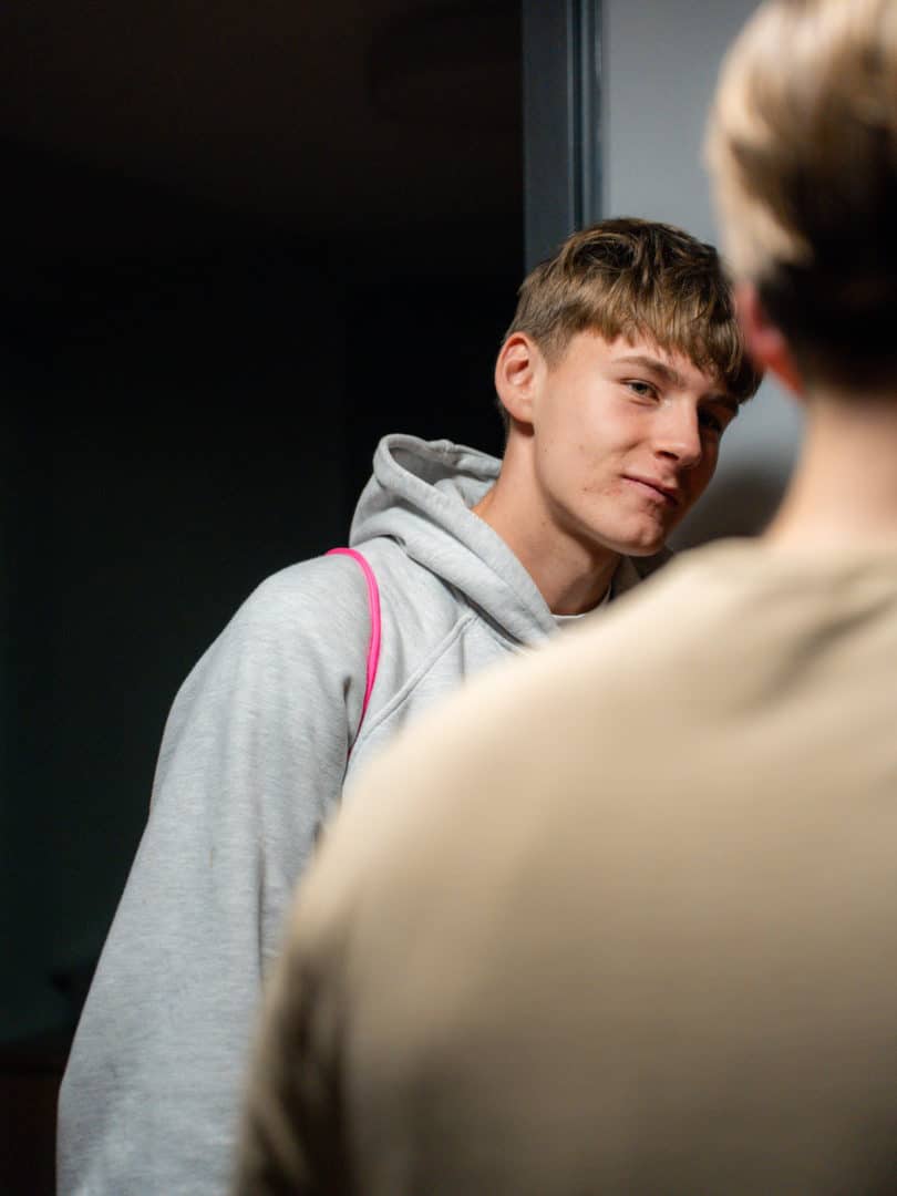 Nach dem sportlichen Teil folgte der vielleicht eindrucksvollste Moment des Tages: Die jungen Insassen führten Holsteins U19-Spieler durch ihren Wohntrakt. Die Jungstörche erhielten Einblicke in die Zellen, die Gemeinschaftsküche und das Wohnzimmer. Die Gespräche wurden spürbar tiefgründiger. Es ging um persönliche Lebenswege, Alltagsabläufe in der Jugendanstalt und die verschiedenen Tätigkeiten, denen die Jugendlichen dort nachgehen.