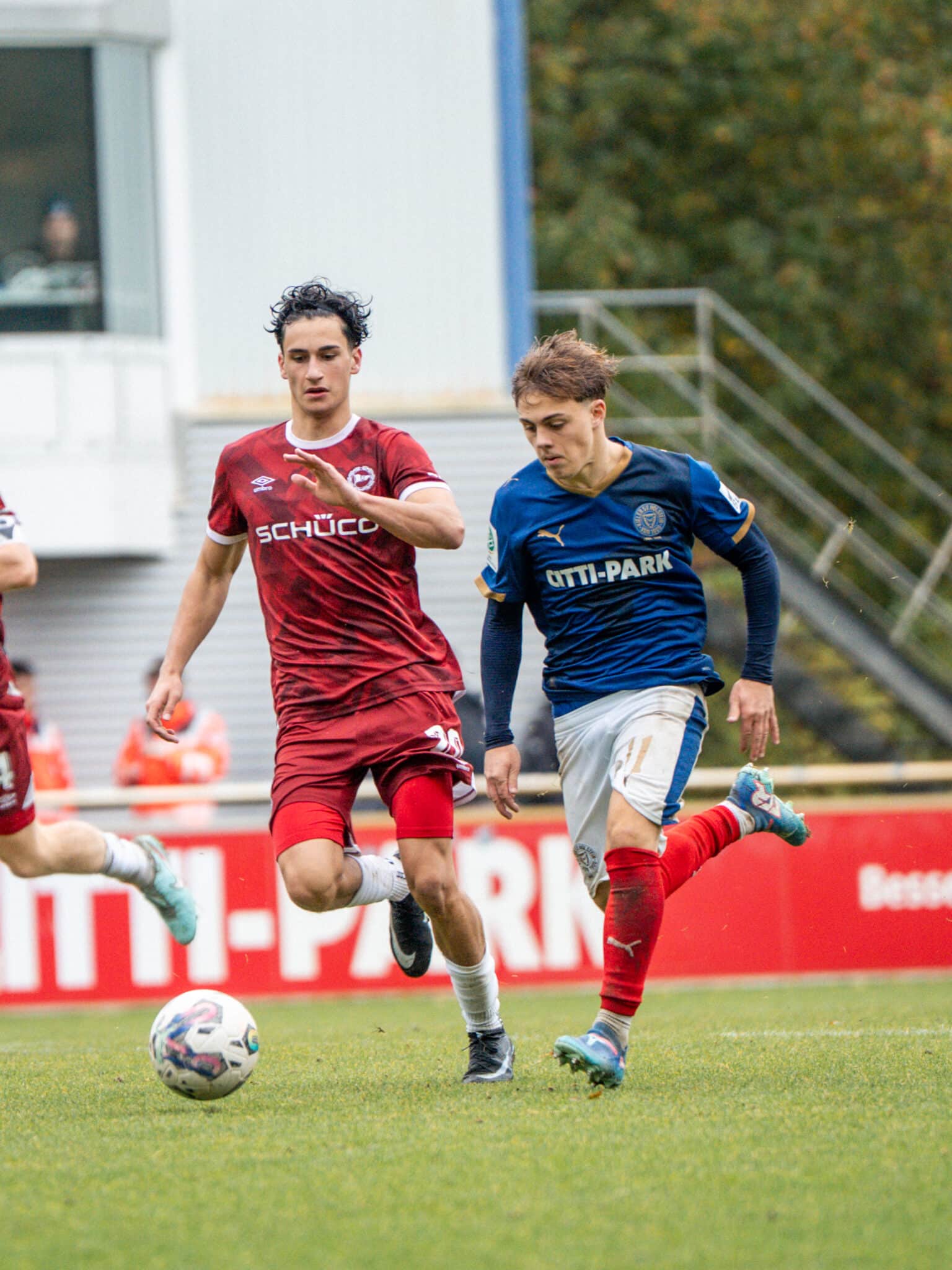 Hinter Holsteins U17 liegt eine erfolgreiche Vorrunde in der DFB-Nachwuchsliga, die am Ende mit der Qualifikation für die A-Spielklasse belohnt wurde. Wir haben im Zwischenfazit mit U17-Cheftrainer Maximilian Grobler über den Weg der vergangenen Monate gesprochen. Dabei ging es nicht nur um die Ergebnisse, sondern vor allem auch um die Entwicklung seiner Mannschaft abseits des Fußballplatzes.