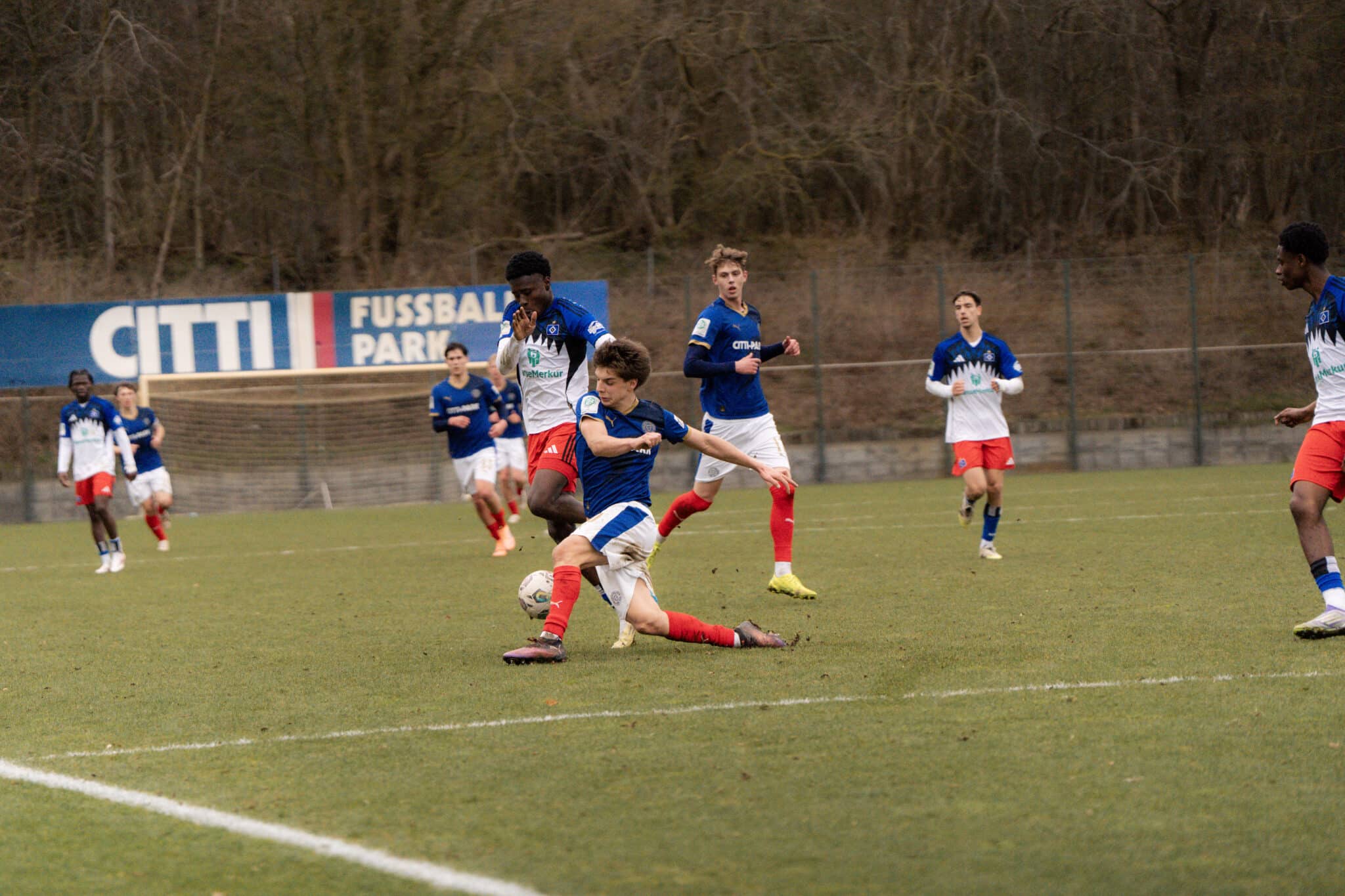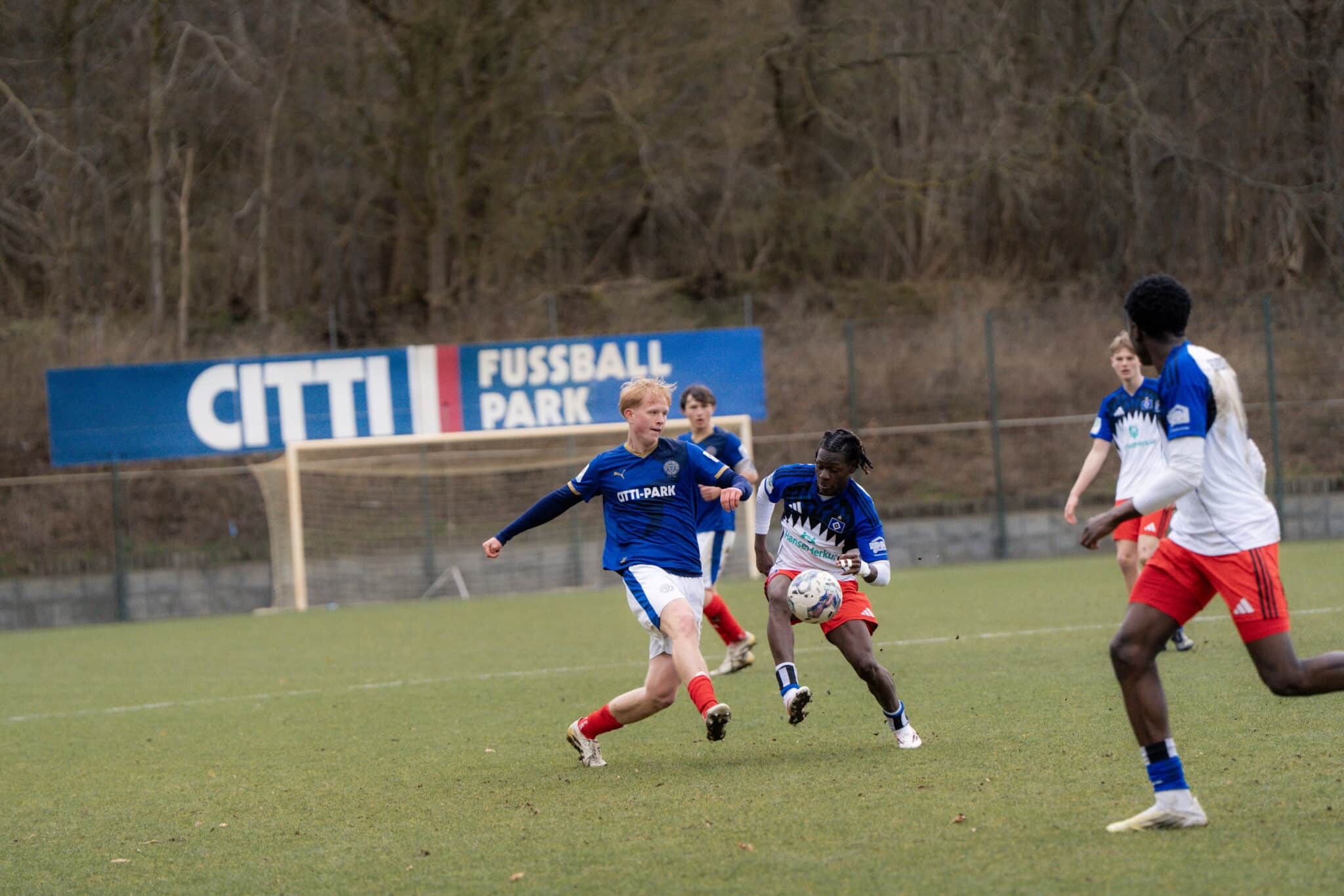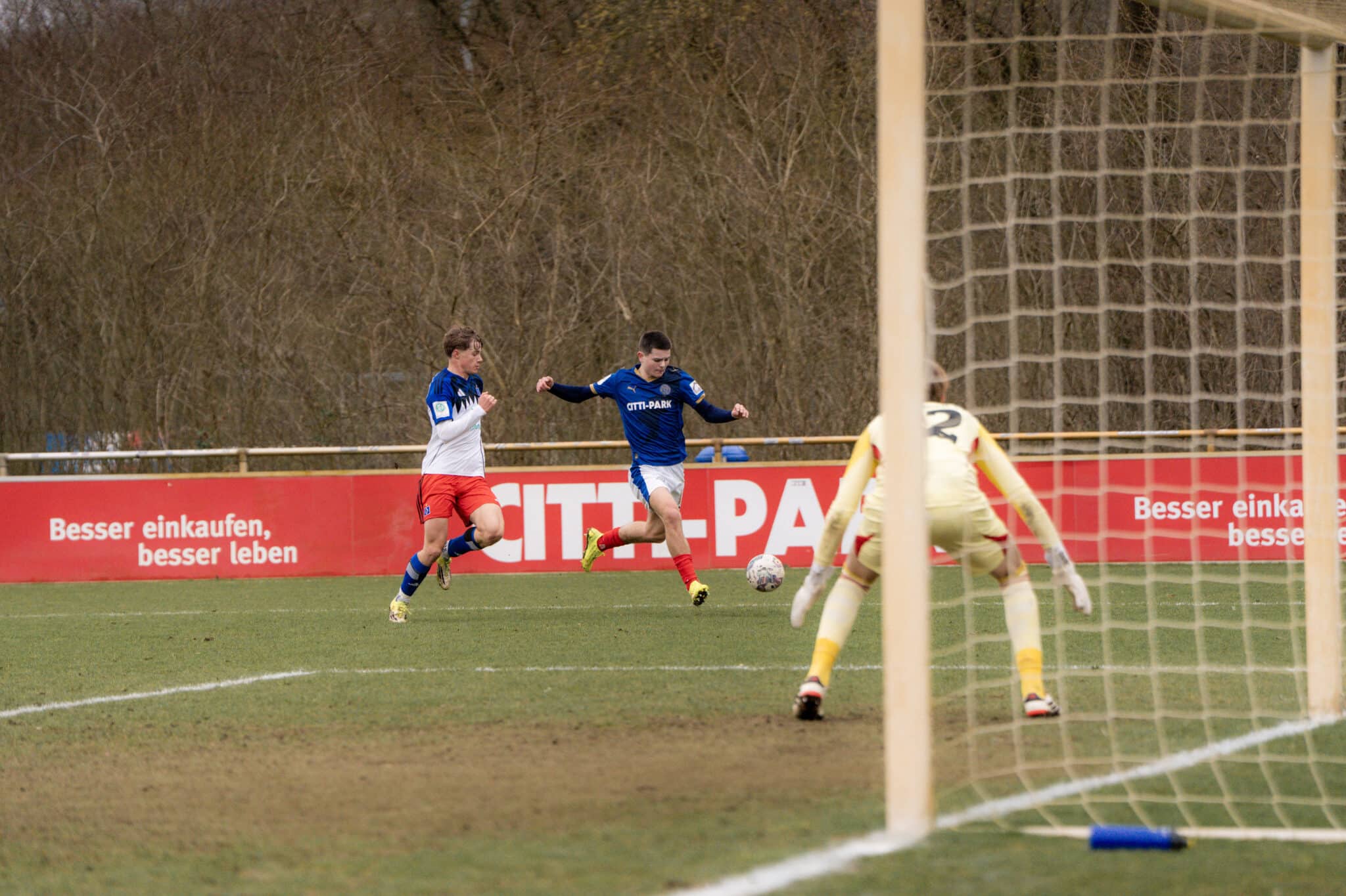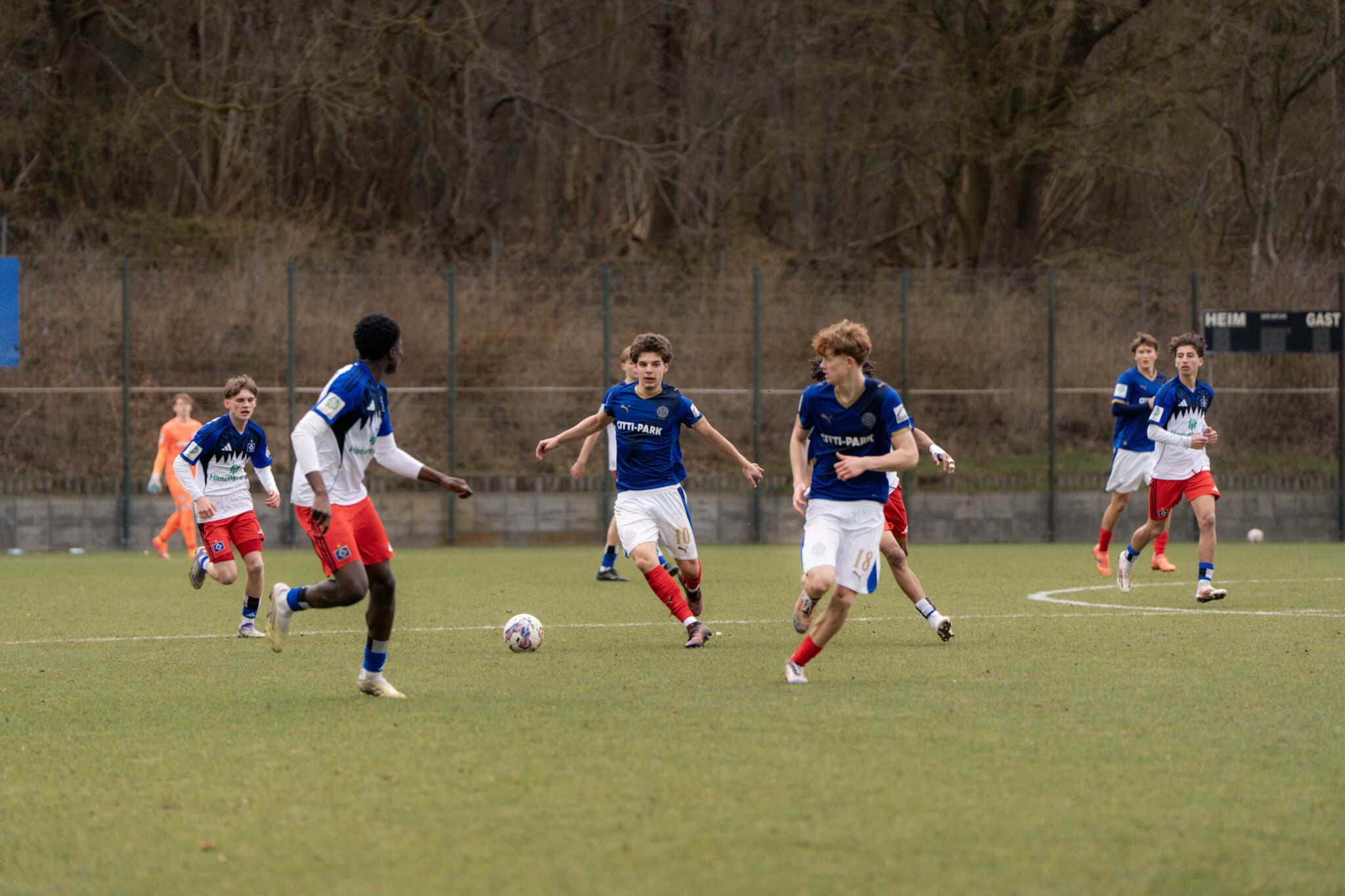 In der Arena des CITTI FUSSBALL PARKS erwischte unsere U17 am vergangenen Samstag gegen den HSV-Nachwuchs einen schwierigen Start und hatte zunächst Schwierigkeiten, das Hamburger Angriffsspiel nachhaltig zu stören. In der Anfangsphase musste sich die Defensive der Jungstörche deshalb auch in einer Situation geschlagen geben. Nach zehn gespielten Minuten durchbrach ein HSV-Spieler das defensive Mittelfeld unserer U17 und bediente seinen eingelaufenen Mitspieler Nico Meckien, dem aus halbrechter Position das Tor des Tages gelang.