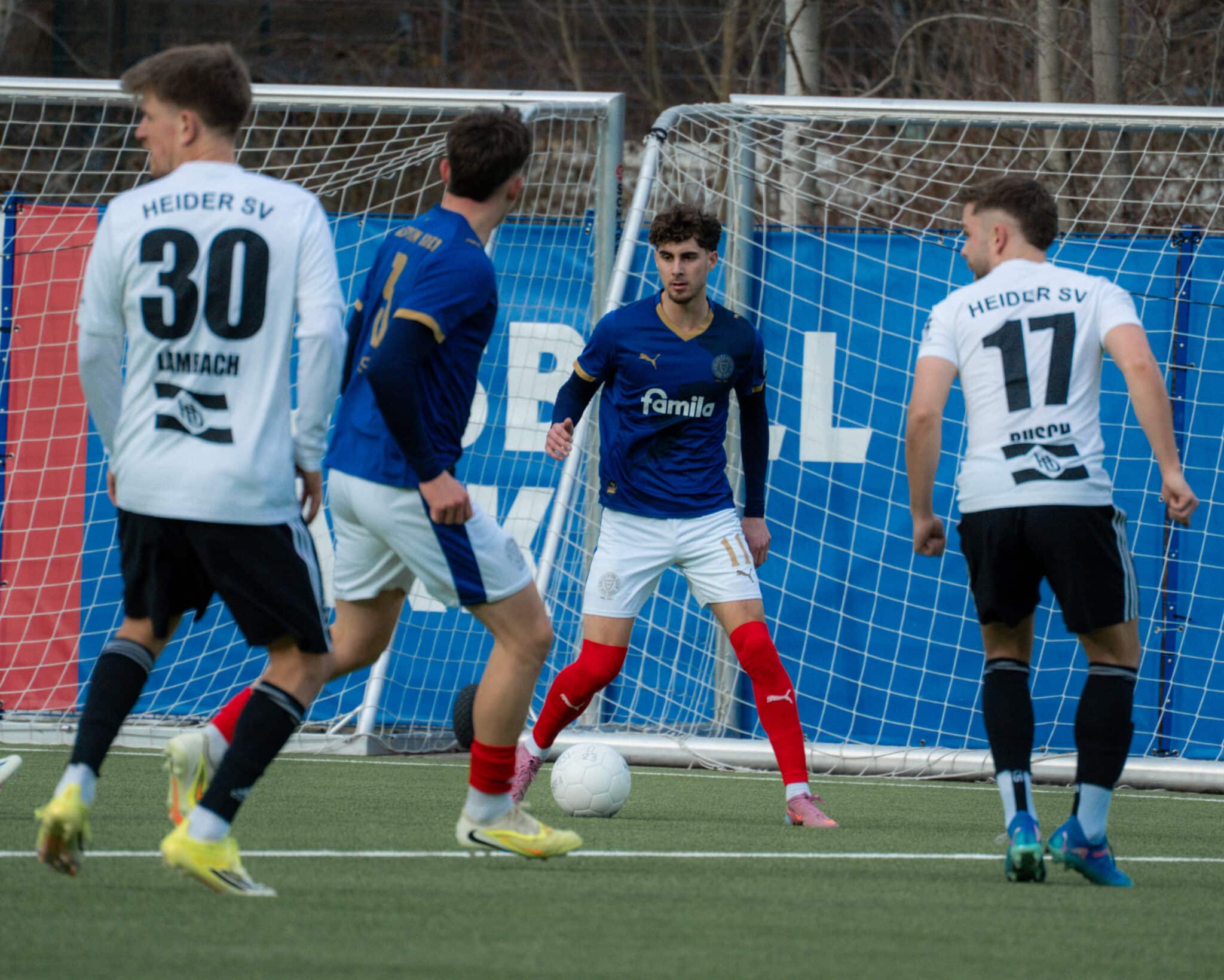 Die Partie begann mit einer Hiobsbotschaft für Holstein. In der vierten Spielminute wurde Hamza Muqaj in Heider-Strafraumnähe gefoult und musste anschließend eine knappe Viertelstunde auf Feld behandelt werden. An dieser Stelle schon einmal eine gute und schnelle Besserung! An Muqas Stelle füllte in der Folge Islam Matene die Position im Holstein-Angriff aus.