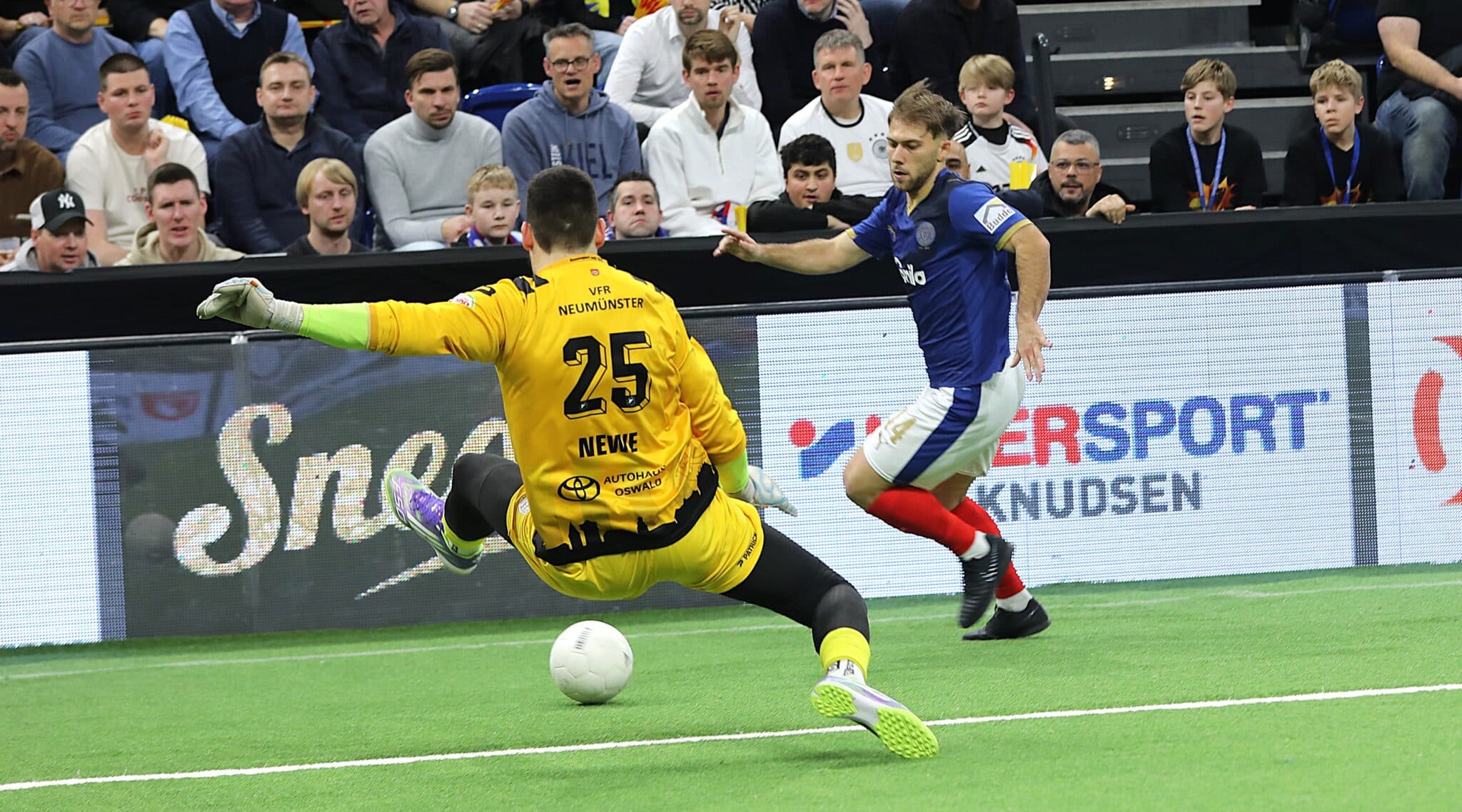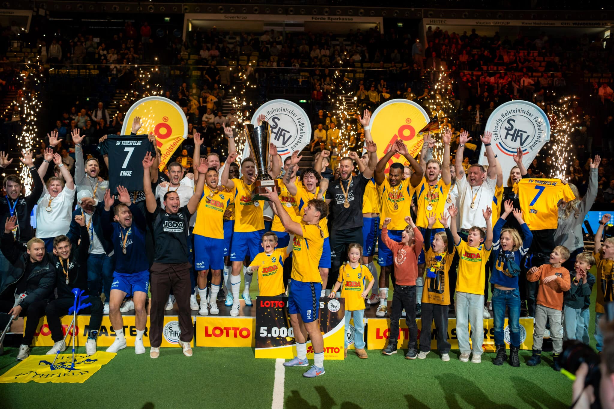 Der alte und neue Sieger des LOTTO MASTERS heißt SV Todesfelde. Der Mannschaft von Trainer Björn Sörensen gelang nach dem Gewinn der Jubiläumsausgabe im vergangenen Jahr am Samstag in der mit 8.650 Zuschauern ausverkauften Kieler Wunderino Arena bei der 26. Ausgabe des beliebten Budenzaubers die Titelverteidigung. Im Finale setzte sich Todesfelde mit 3:1 gegen unsere U23 durch.