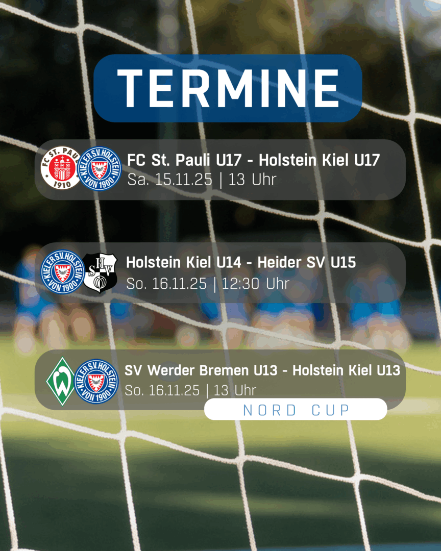 Aufgrund der Bombenentschärfung am Samstag, den 15. November, um 14 Uhr können die ursprünglich für diesen Tag angesetzten Heimspiele unserer U23 und U12 leider nicht stattfinden. Dementsprechend sind am kommenden Wochenende nur drei Nachwuchsteams mit Pflichtspielen im Einsatz: Die U17 ist beim FC St. Pauli zu Gast, und auch die U13 muss am Samstag auswärts im Nord Cup beim SV Werder Bremen ran. Für die U14 steht am Sonntag ein Heimspiel gegen den Heider SV auf dem Programm.