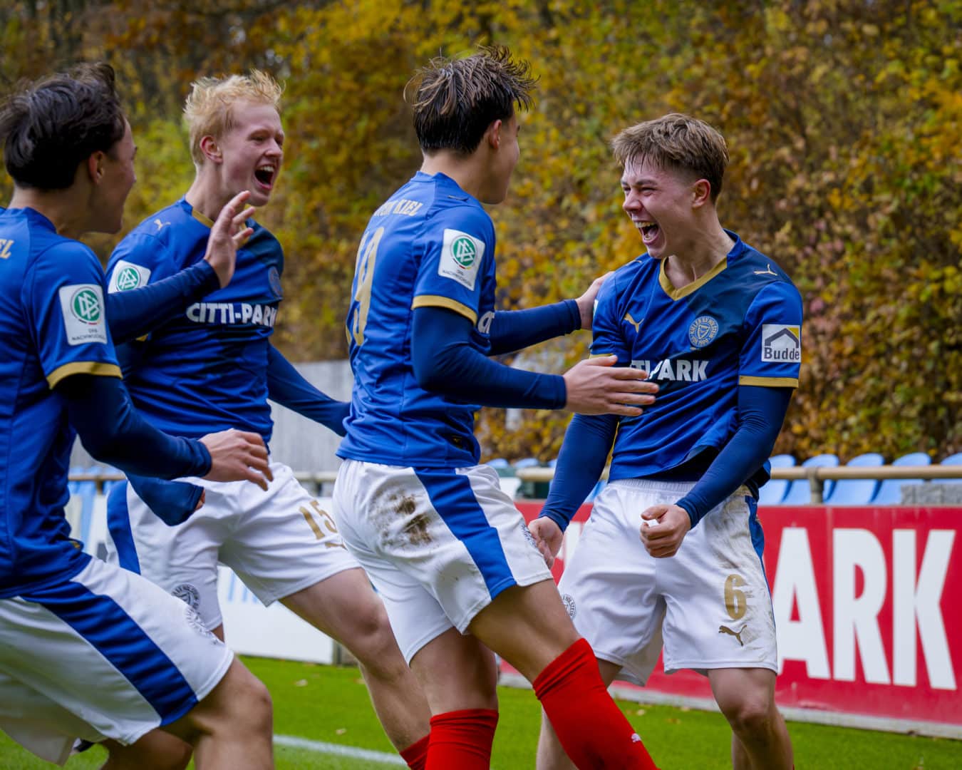 Was für eine Ausgangslage und was für eine starke Saisonleistung bis hierhin! Selbst wenn es am Ende knapp doch nicht reichen sollte, können Holsteins A-Junioren stolz sein auf diese Vorrundenleistung mit bisher sieben Siegen, zwei Unentschieden und nur zwei Niederlagen. Zum Abschluss wartet auf jeden Fall auch noch ein wahres Highlight: Dann sind unsere Jungstörche beim aktuellen Tabellenersten, dem Hamburger SV, zum Nordderby zu Gast (06.12., 13 Uhr).