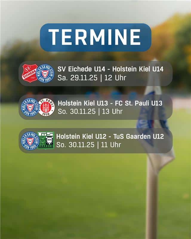 Cheftrainer Christian Riecks und seine U14 haben hingegen eine schwere Auswärtsaufgabe vor der Brust: Zum Auftakt einer englischen Woche gastieren sie beim SV Eichede. Die Stormarner rangieren aktuell punktgleich mit Spitzenreiter Kilia Kiel auf dem zweiten Tabellenplatz. Anpfiff der Partie ist am Samstag um 12 Uhr auf dem Kunstrasenplatz des Kronsforder SV in Lübeck.