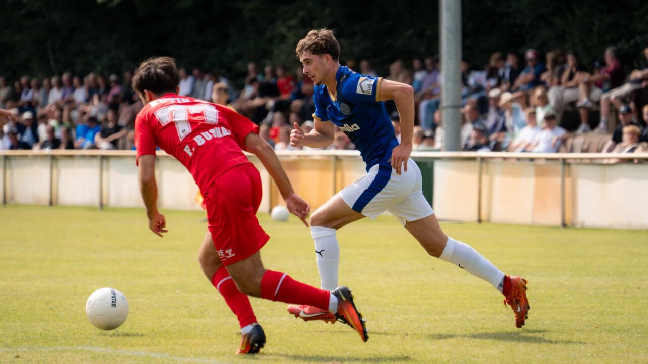 Unsere U23 startete mit Rückenwind aus dem 6:2-Sieg gegen Neumünster unter der Woche in dieses Duell und das war ihr von Beginn an anzumerken. Sie agierte insgesamt bissiger, hatte mehr Ballbesitz und drückte die Gastgeber schon früh tief in die eigene Hälfte. Allerdings hielt Eutin mit seiner Körperlichkeit gut dagegen, sodass Holsteins U23 zunächst nur zu einigen Halbchancen kam. In der 21. Spielminute war es schließlich Luca Prasse, der mit einem flachen Abschluss von der linken Seite ins Eck zur verdienten 1:0-Führung traf. Auch danach blieb es ein Spiel in eine Richtung, bei dem die Elf von Cheftrainer Willi Weiße den Ball zwar gut laufen ließ, dabei jedoch nur selten zwingend gefährlich wurde. Sowohl Ali Jamil als auch Louis Köster verpassten es, noch vor der Pause den nächsten Treffer nachzulegen – und so ging es mit dem knappen Vorsprung für unsere Jungstörche in die Kabine.