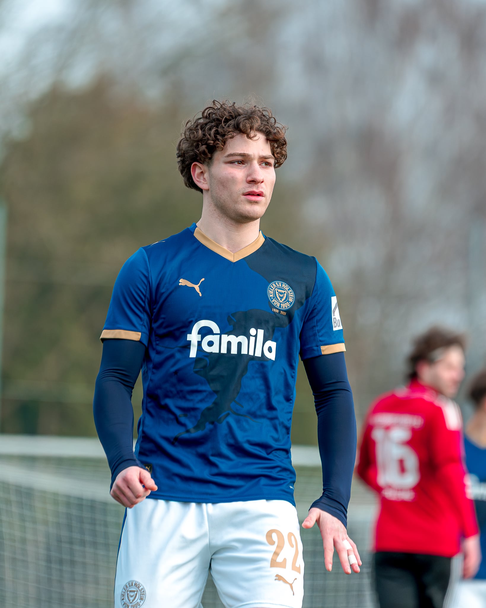 Kjell Knaak: „Wir hatten in einigen Phasen Probleme zwingende Offensivgefahr aufzubauen. Kaltenkirchen wurde dazu immer wieder über Standardsituationen gefährlich, die wir nicht gut genug verteidigt bekommen haben. Über meinen ersten Treffer für Holstein kann ich mich deshalb nicht so wirklich freuen, weil ich in erster Linie enttäuscht bin, dass wir das Spiel verloren haben.“