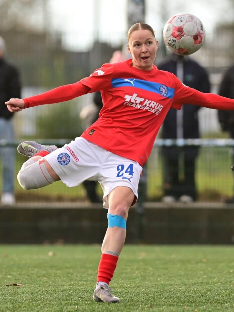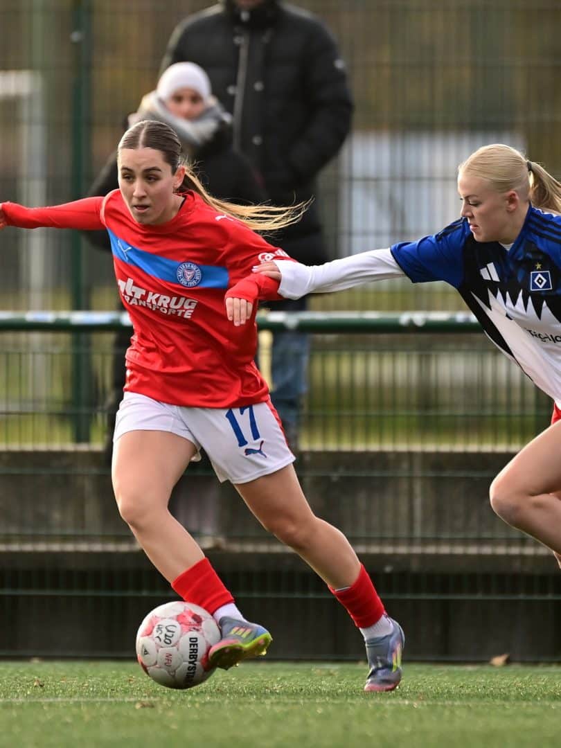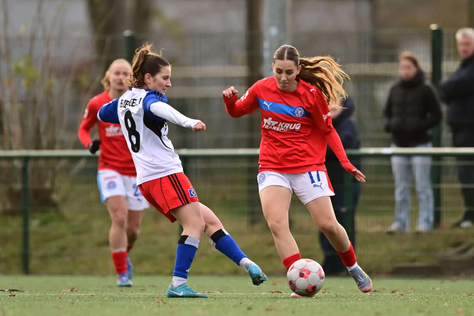 Nachdem es am 11. Spieltag der Frauen-Regionalliga Nord lange nach einem knappen Auswärtssieg unserer Holstein Women bei der U20 des Hamburger SV ausgesehen hatte, schraubten unsere Holsteinerinnen mit drei späten Toren das Ergebnis in die Höhe. Kira Hasse schnürte gegen die auf Rang vier platzierten Nachwuchsspielerinnen des HSV einen Dreierpack, zudem blieb die Elf von Cheftrainer Stefan Fischer zum sechsten Mal ohne Gegentor.