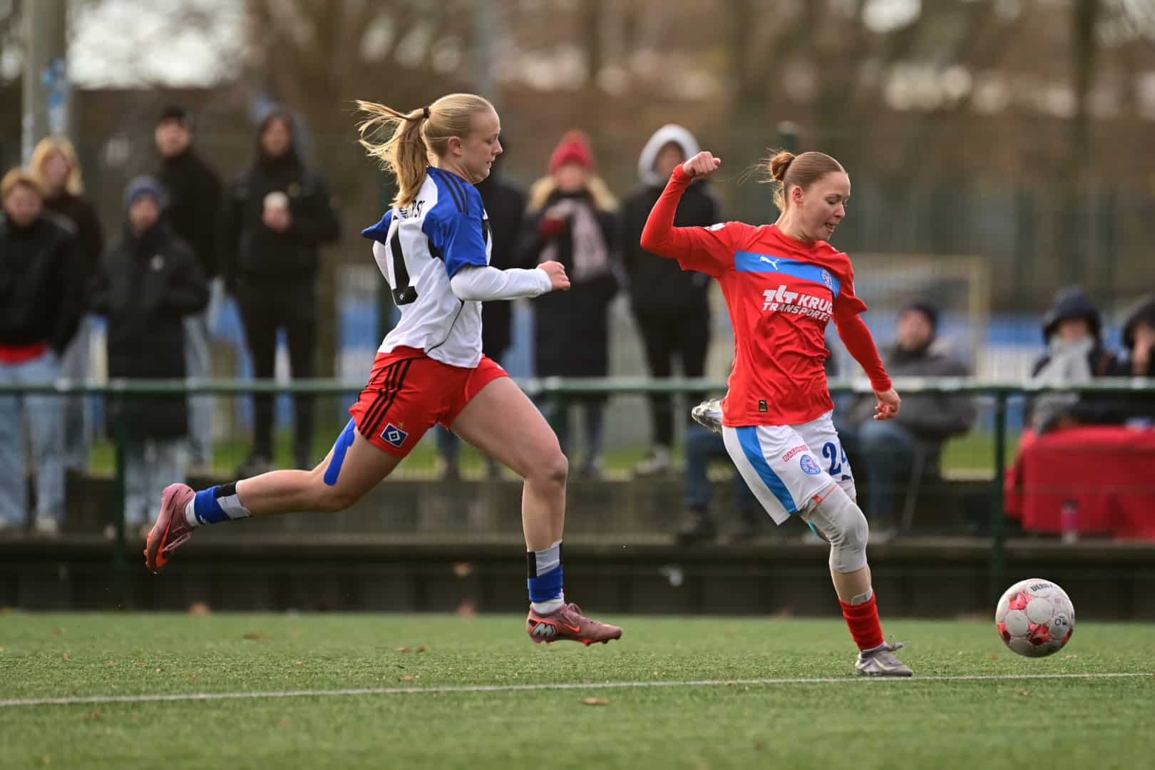 Nach dem Seitenwechsel erhöhten unsere Women das Spieltempo noch einmal und konnten die U20 des HSV mit ihrer Passsicherheit weiter ins Wanken bringen. Doch es dauerte bis in die Schlussphase, bis weitere Tore fielen. Sarah Begunk steckte gut durch zu Hasse, die den Ball durch die Beine von HSV-Keeperin Inga Schuldt zum 2:0 schob (76.). Einen dritten Treffer ließ unsere Stürmerin auch noch folgen: Die eingewechselte Paula Harder hatte sich über den Flügel gut durchgesetzt und Hasse vollendete nach einem Querpass (84.). Vier Minuten später nahm Janine Minta nach Zuspiel von Carone den Ball gut mit und vollendete in die rechte unter Ecke zum 4:0-Endstand (88.).