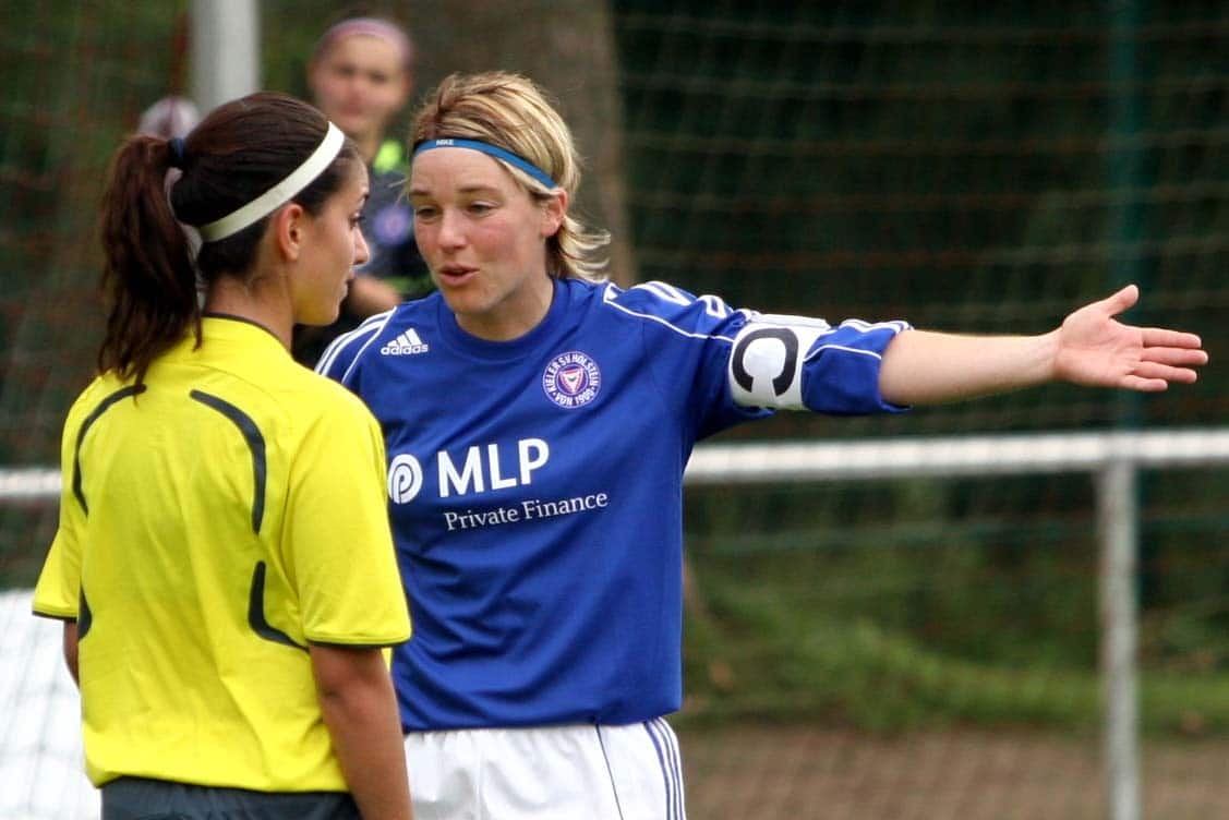 So wie in der Chronik 125 Jahre Holstein Kiel die Geschichte der Profimannschaft intensiv aufgearbeitet wurde, so findet sich dort auch eine Gesamtdarstellung zur über zwanzigjährigen Historie unserer Holstein Women wieder. Im Rahmen der Recherche wählte das Chronik-Team in Zusammenarbeit mit Experten aus dem Bereich Frauenfußball ein HOLSTEIN WOMEN ALL-STAR-TEAM. Das Ergebnis wurde bereits bei der Veröffentlichung der Chronik präsentiert und soll heute den letzten Beitrag zum Frauenfußball in diesem unserem Jubiläumsjahr bilden. Viele Namen dürften den Fans noch durchaus bekannt sein, prägten sie doch viele Jahre lang das Spiel der Holstein Women. Dass Spielerinnen aus den neun Zweitliga-Jahren den Kern des HOLSTEIN WOMEN ALL-STAR-TEAMS bilden, dürfte verständlich sein. Aber auch eine aktuelle Spielerin ist vertreten…