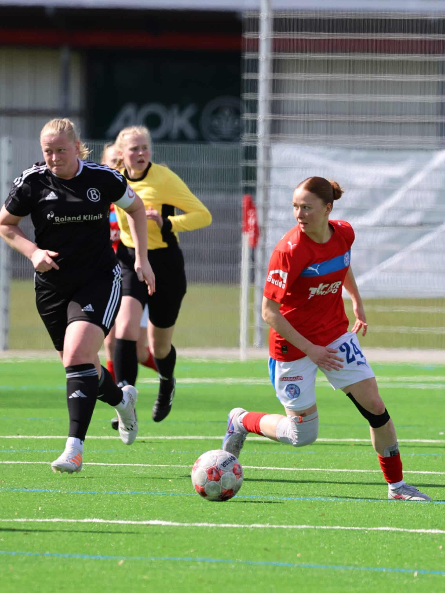 Leonie Kurth: „Wir haben in der ersten Halbzeit versucht, Druck auszuüben, sind aber nicht zu wirklich gefährlichen Torchancen gekommen. Es war insgesamt ein sehr körperbetontes Spiel, bei dem wir gut gegenhalten mussten und uns schließlich über zwei Standards und einen tollen Treffer von Kira belohnt haben. Ich habe mich sehr gefreut, endlich wieder auf dem Platz stehen zu dürfen.“