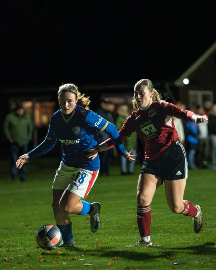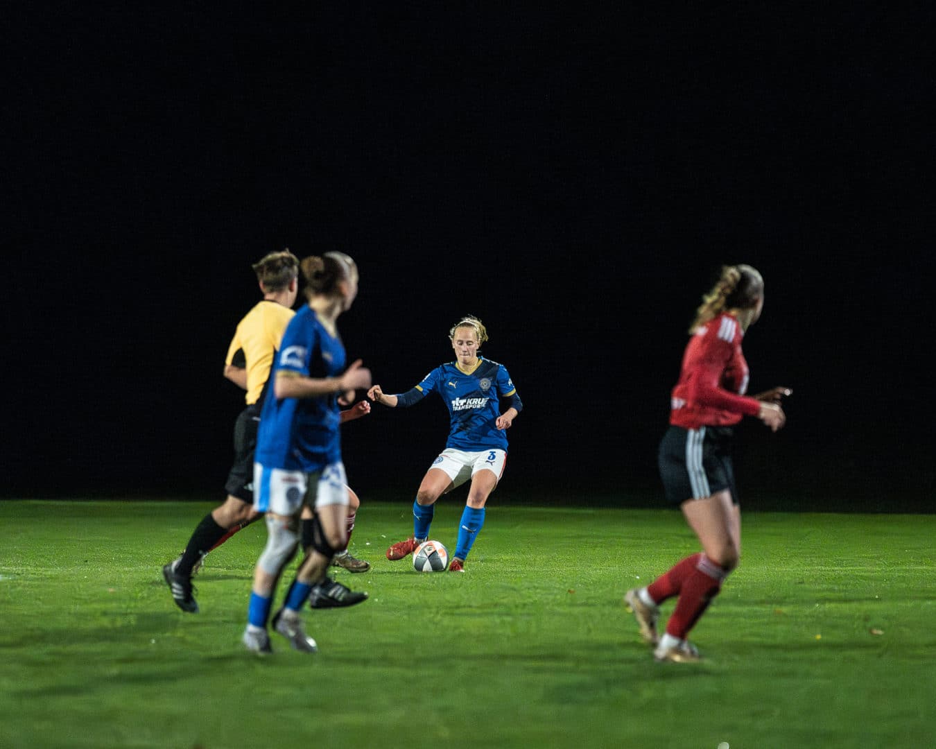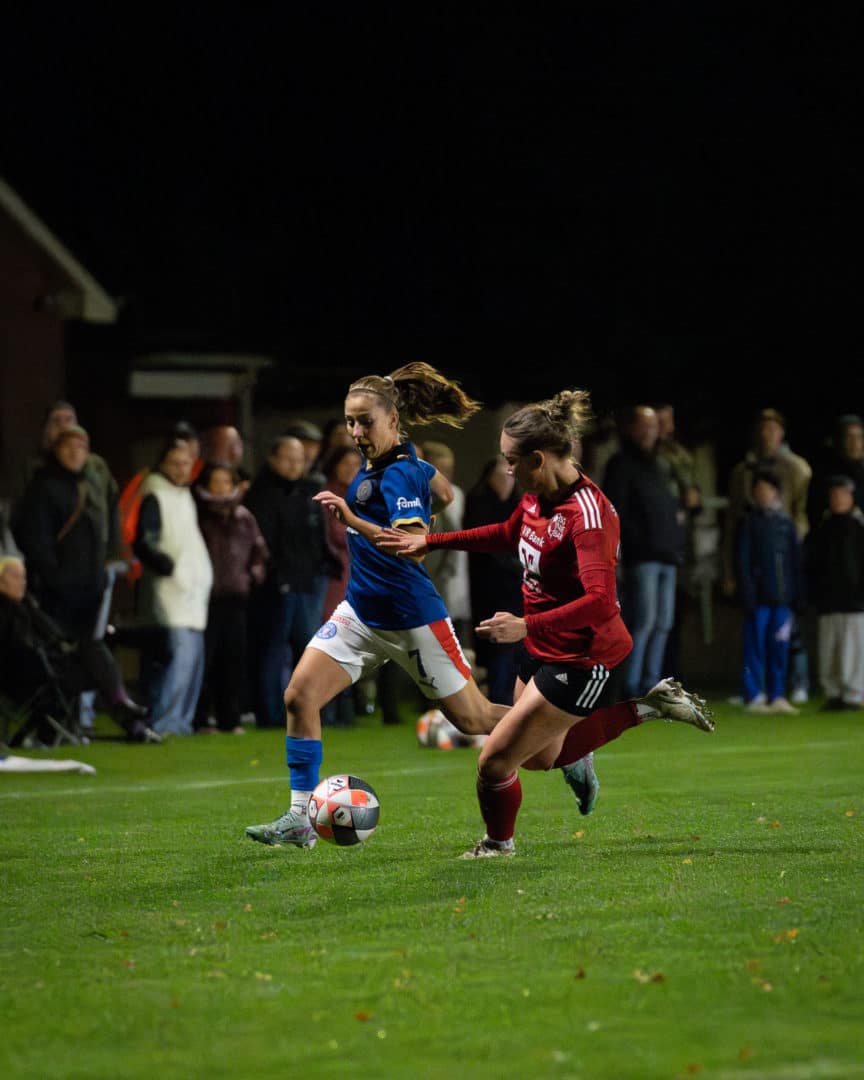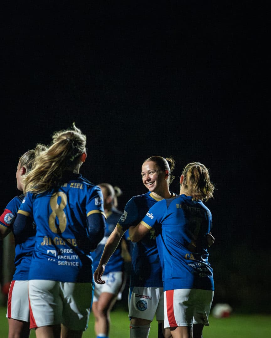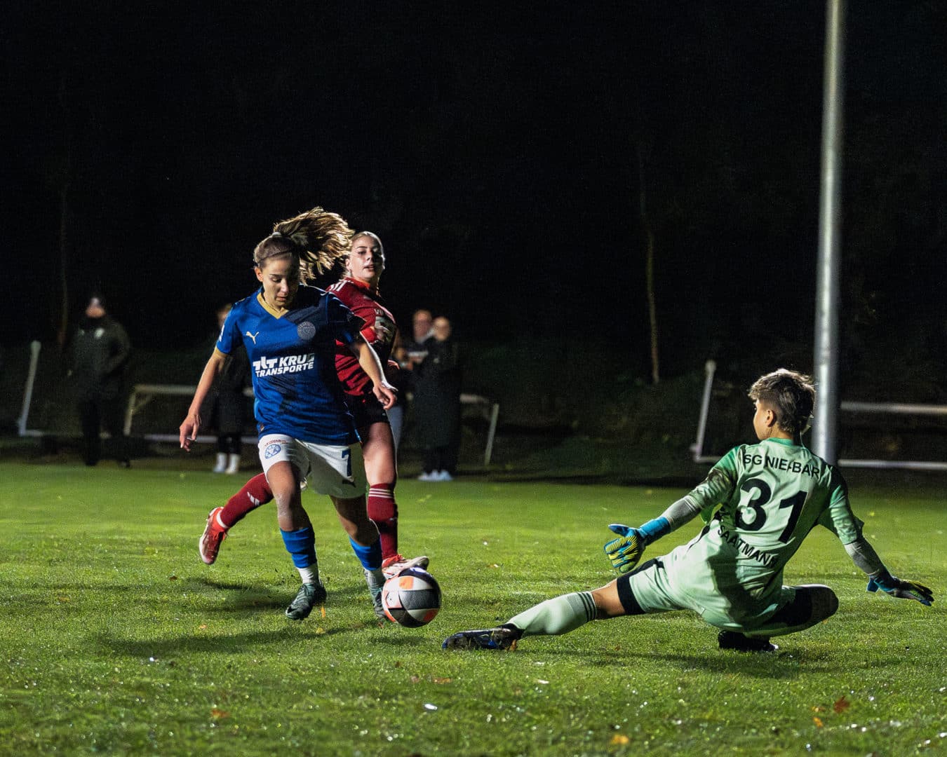 Auch im zweiten Durchgang ließen unsere Women trotz des komfortablen Vorsprungs nicht locker. Kira Hasse legte in der 53. Minute mit ihrem zweiten Treffer nach, bevor Arjela Lako in der 65. Minute den 6:0-Endstand markierte. Trotz des tiefen Bodens und schwieriger Platzverhältnisse blieb Holstein spielbestimmend, zeigte schöne Spielverlagerungen und machte für die Gastgeberinnen konsequent die Räume eng. „Wir waren sehr effizient und haben klar unsere Dominanz aufgezeigt. Auch durch zahlreiche Wechsel hatten wir keinen Qualitätsverlust, weil die Mädels es kollektiv als Mannschaft gut gemacht haben,“ so Jeschkeit weiter. Auch defensiv überzeugten die Kielerinnen: NieBar blieb ohne nennenswerte Torchance, weil Holstein kompakt stand, die Abstände hielt und clever verteidigte.