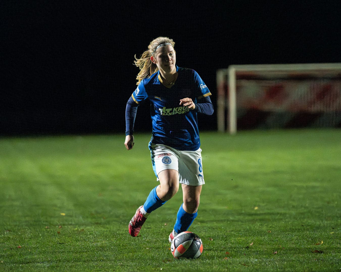 Unsere Holsteinerinnen erwischten einen perfekten Start: Kira Hasse eröffnete bereits in der 7. Minute mit ihrem Treffer zum 1:0, ehe Sammy Carone nur eine Minute später auf 2:0 erhöhte. Die Women dominierten von Beginn an, kombinierten sicher, suchten immer wieder die Breite und kamen über die Flügel gefährlich in die Tiefe. So erspielten sie sich immer wieder gute Möglichkeiten, ließen jedoch im weiteren Verlauf der ersten Hälfte auch einige gute Chancen aus. Erst kurz vor der Pause sorgte dann ein weiterer schneller Doppelschlag für klare Verhältnisse: In der 44. Minute fiel durch Ronja Jürgensen zunächst das 3:0, ehe diese sich selbst in der Nachspielzeit zur Doppeltorschützin kürte und auf 4:0 stellte. „Es war unser Ziel, uns viele gute Möglichkeiten herauszuspielen und diese dann auch zu nutzen,“ betonte André Jeschkeit, der Sportliche Leiter der Holstein Women, nach der Partie.