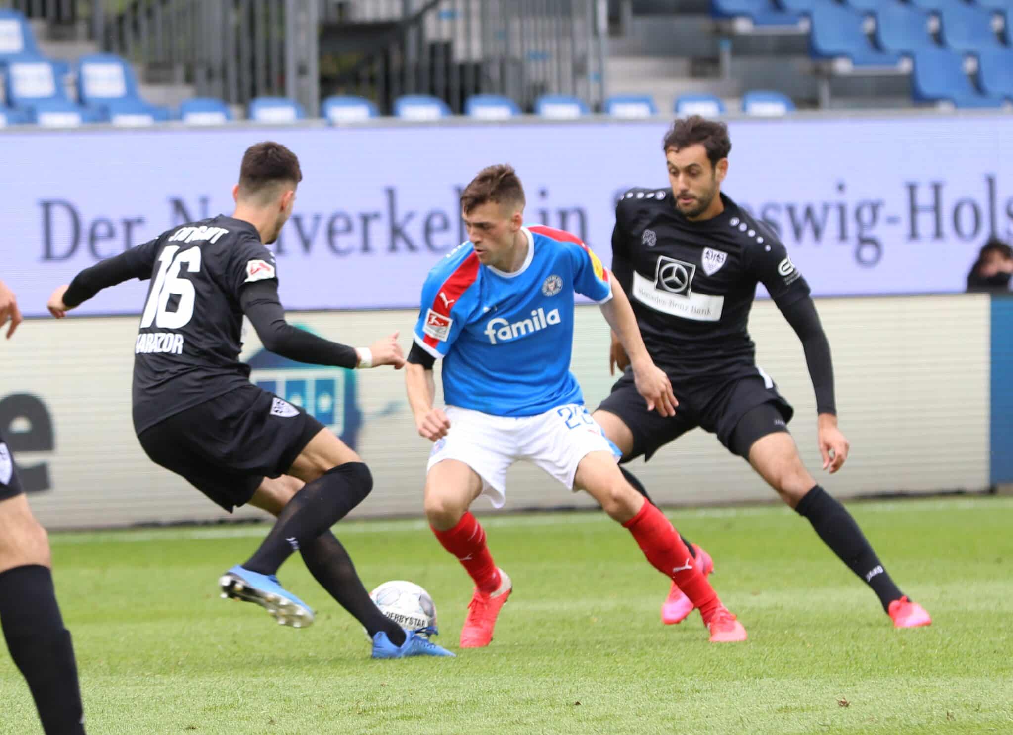 So schnell kann es gehen: Kaum ist Jonas Meffert wieder zurück bei unserer KSV Holstein, schon erreichte der Sechser einen Meilenstein. Der 31-jährige Mittelfeldspieler absolvierte beim DFB-Pokal-Viertelfinale gegen den VfB Stuttgart seinen 100. Einsatz als Storch.