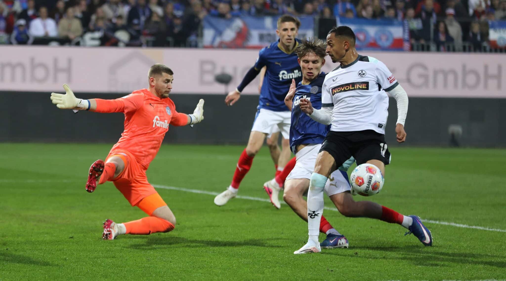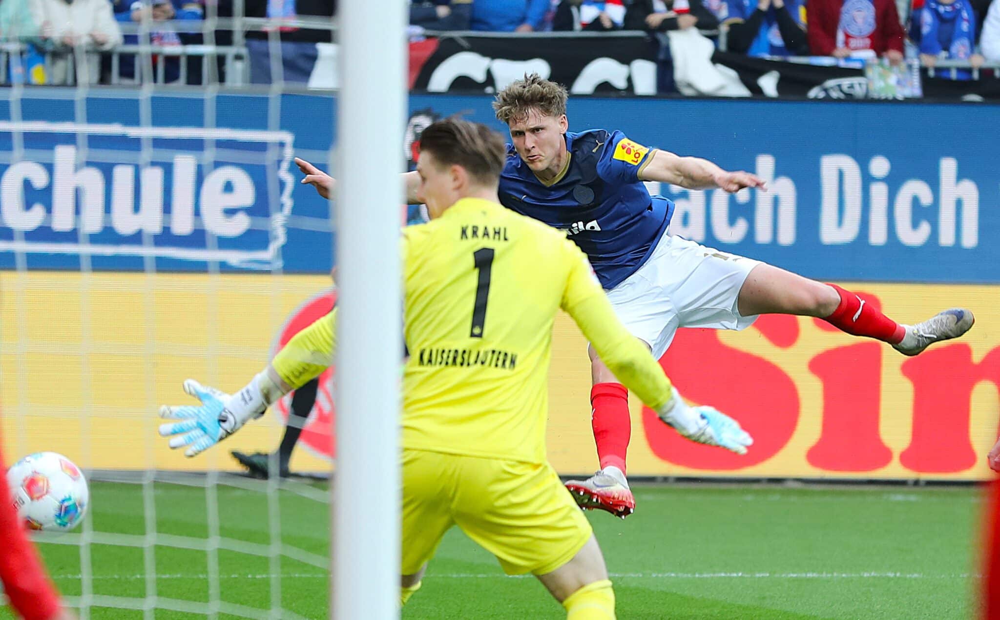 Wie im Hinspiel waren es Kaiserslautern, die den besseren Start in die Partie erwischten. Doch nun im Holstein-Stadion fiel nicht die frühe Führung, da Naatan Skyttäs Kopfball und Marlon Ritters Flachschuss in den ersten Minuten das Tor knapp verpassten. Anschließend konnte Holstein aber das Zepter des Handelns in die Hand nehmen. Steven Skrzybski, der noch in der ersten Hälfte ausgewechselt werden musste, meldete die KSV mit einem Schlenzer an und die Holsteiner Drangphase begann. In dieser konnte sich die Walter-Elf schnell belohnen: Tohumcu ließ an der Sechzehnerkante einen Gegenspieler aussteigen und jagte den Ball in den rechten Winkel (16.). Unsere Störche blieben dran. Ikem Ugoh steckte zu Phil Harres durch, der von rechts im Strafraum Julian Krahl im Gäste-Tor überwand (35.). Fünf Minuten später legte David Zec nach einer Tohumcu-Ecke den dritten Treffer nach (40.).