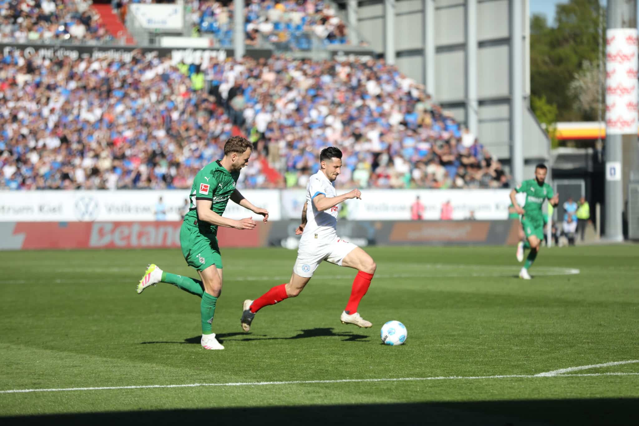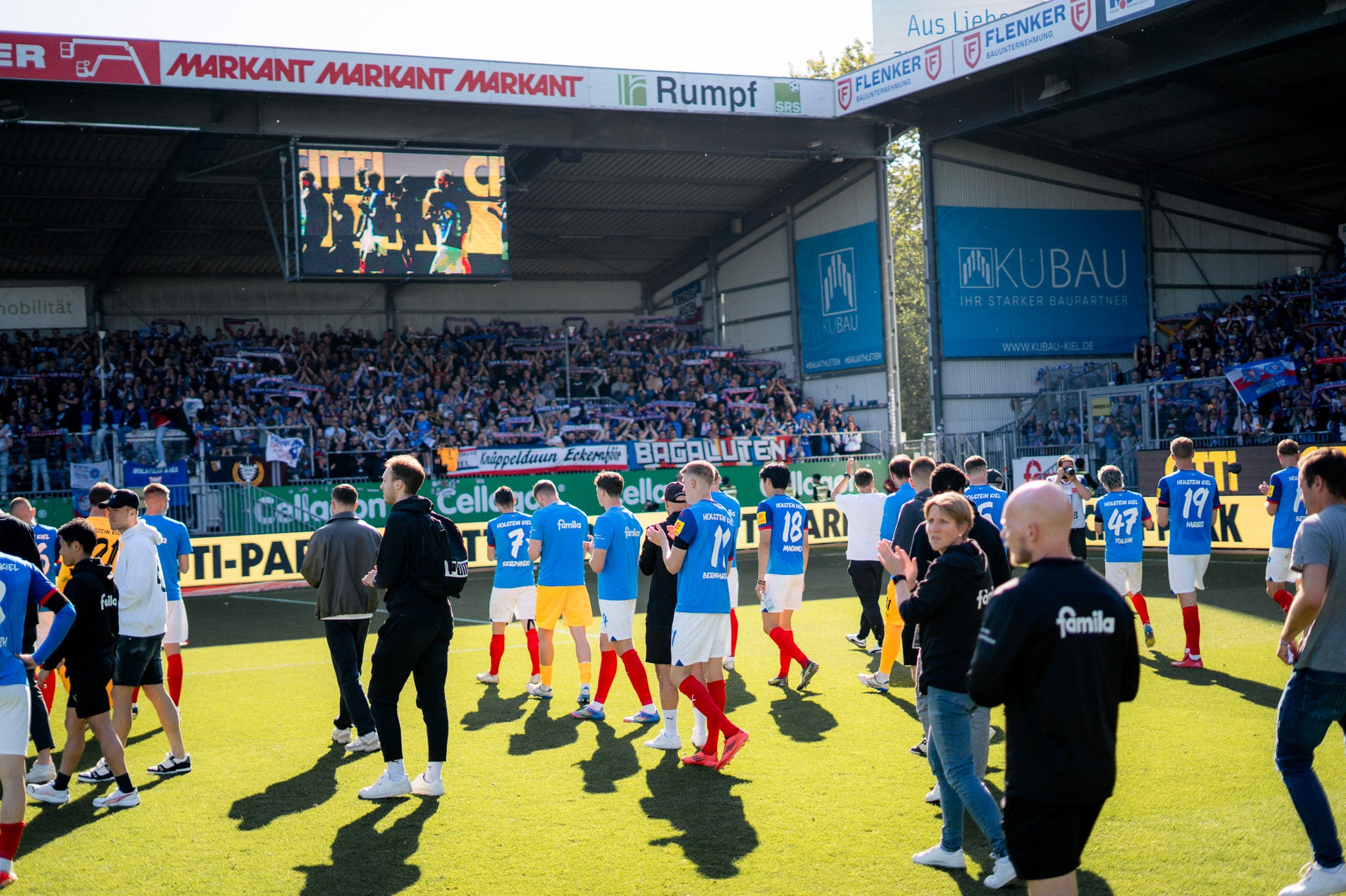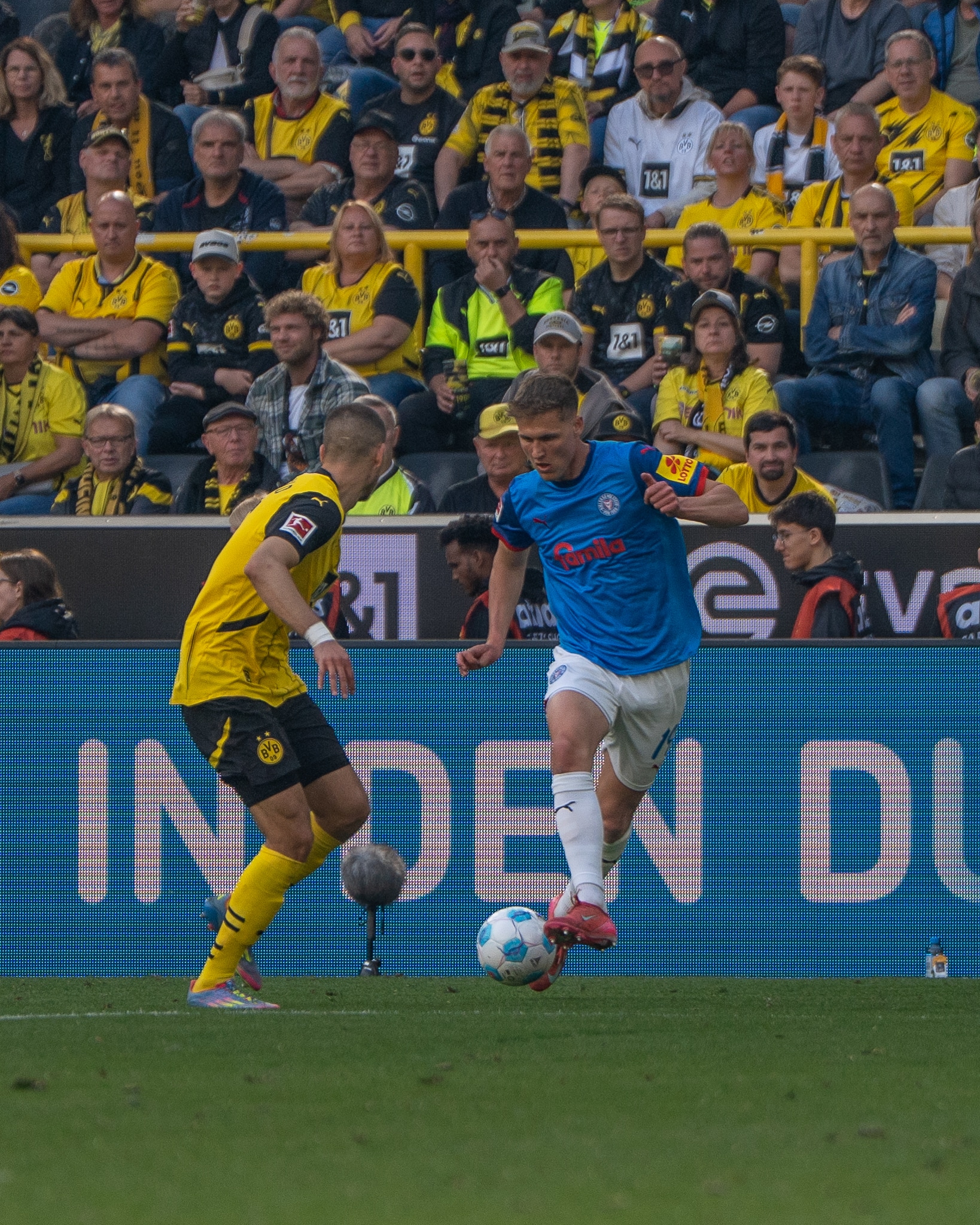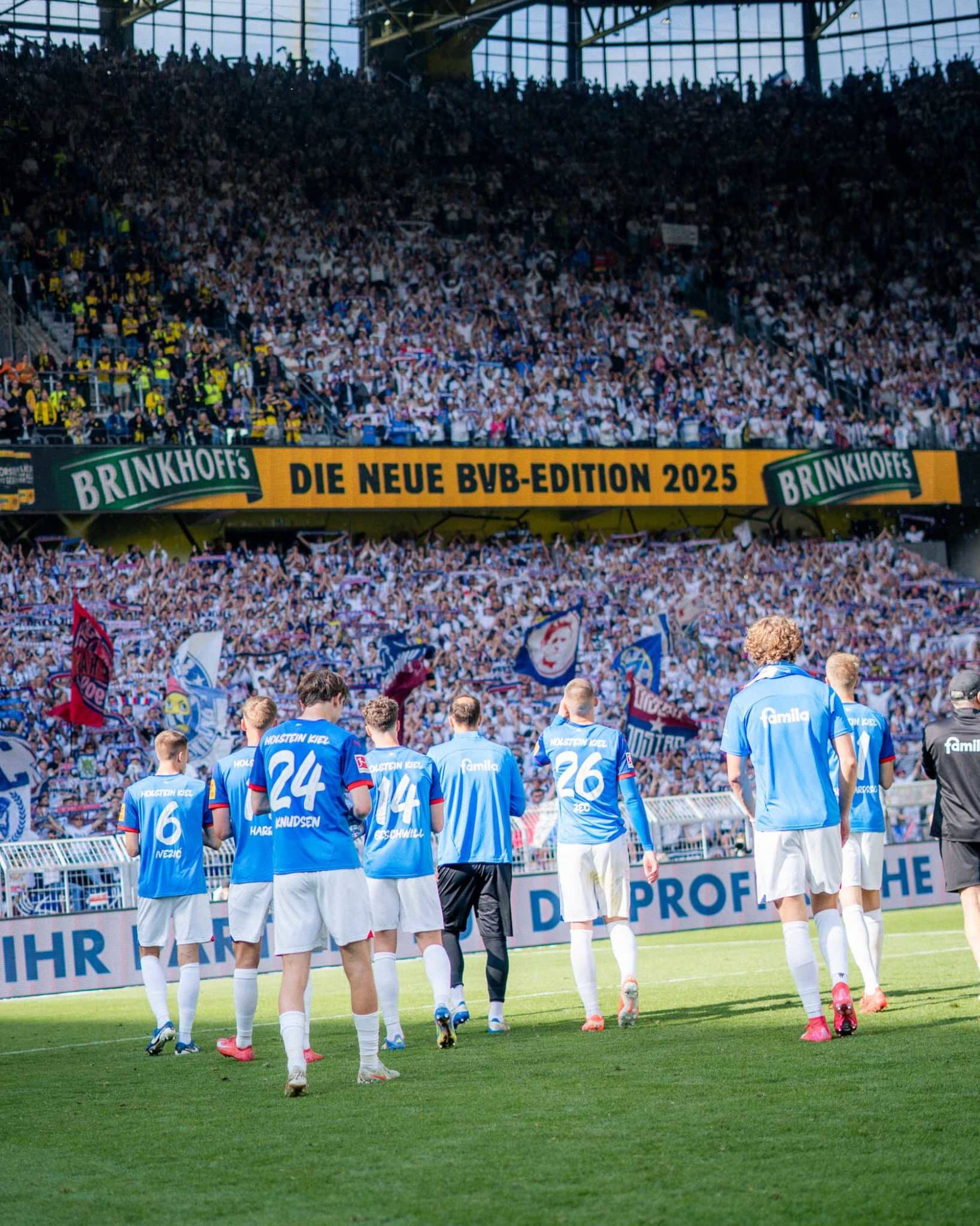 Ein letztes Highlight hielt die Saison 2024/25 aber noch bereit. Zum Bundesliga-Abschied in Dortmund begleiteten 8.000 Schlachtenbummler die Störche in den Signal Iduna Park. Die enorme Anzahl der Fans sorgte für einen Rekord, denn noch nie waren in der Vereinsgeschichte so viele Kieler*innen mit zu einem Auswärtsspiel gereist. Und das minutenlange Bejubeln der Mannschaft nach dem Anpfiff der 0:3-Niederlage stellte noch einmal unter Beweis, wie eindrucksvoll Holstein sich mit den sympathischen und stimmgewaltigen Fans in den Bundesligastadien präsentiert hat. Ungeachtet des Abstiegs blieb daher viel Positives hängen – und das nicht nur, weil die Mannschaft von Marcel Rapp trotz aller Widrigkeiten bis kurz vor Saisonende hatte hoffen dürfen.