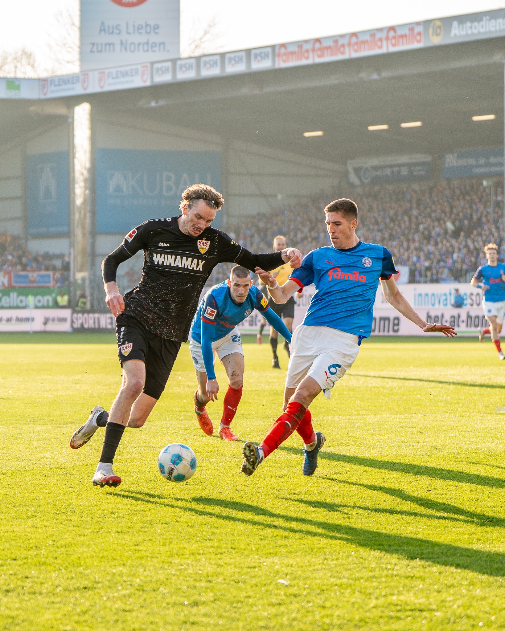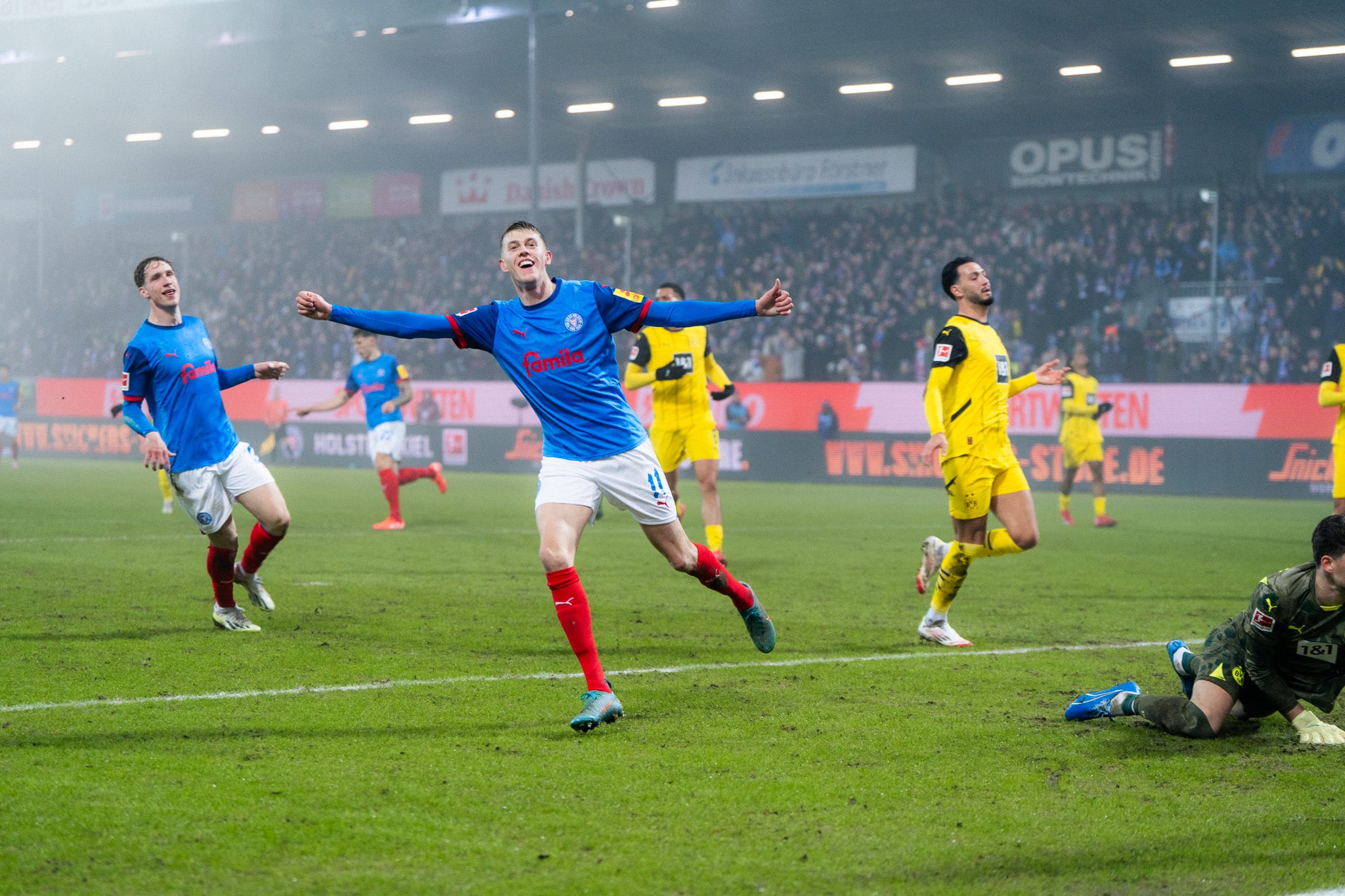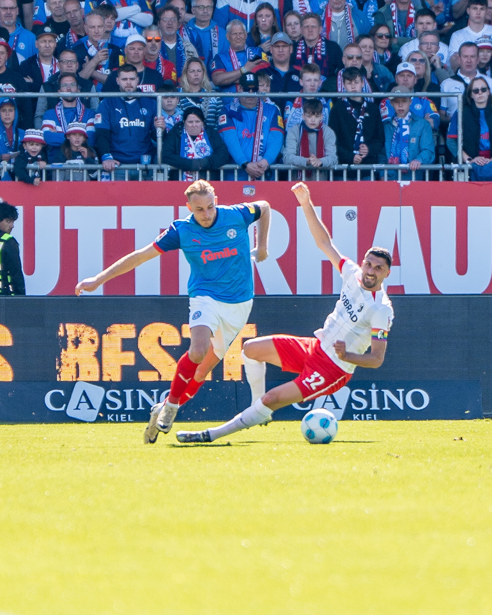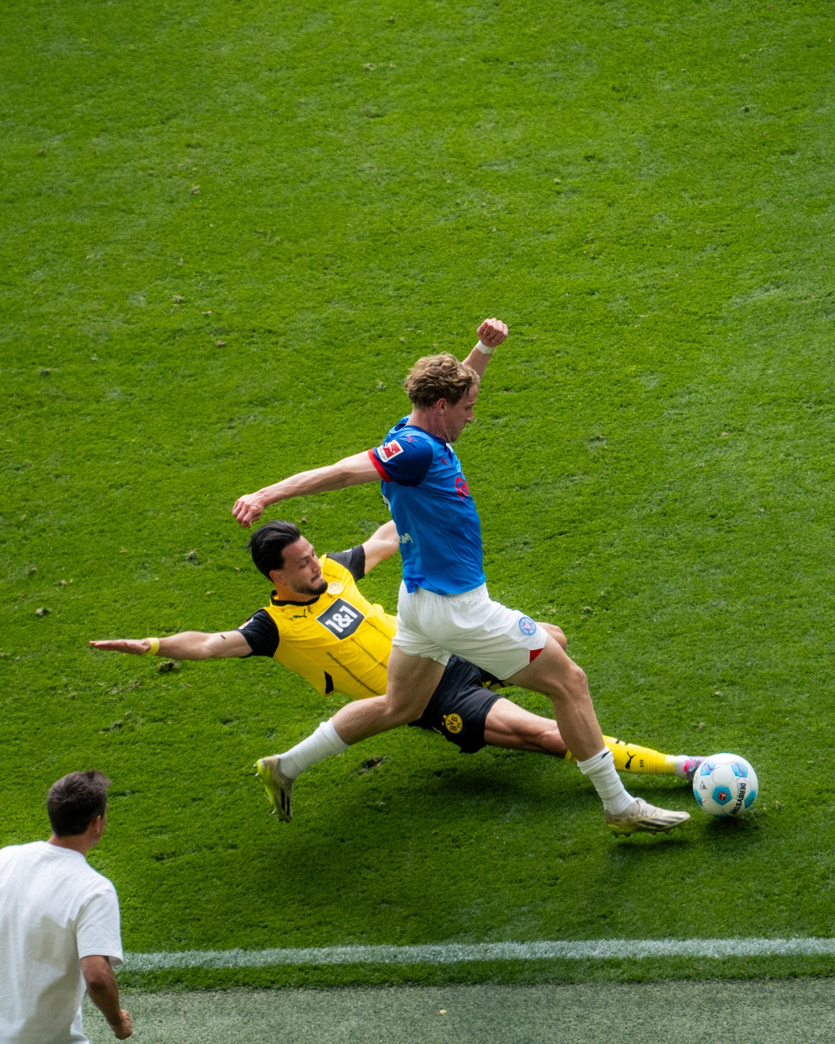 Ein letztes Highlight hielt die Saison 2024/25 aber noch bereit. Zum Bundesliga-Abschied in Dortmund begleiteten 8.000 Schlachtenbummler die Störche in den Signal Iduna Park. Die enorme Anzahl der Fans sorgte für einen Rekord, denn noch nie waren in der Vereinsgeschichte so viele Kieler*innen mit zu einem Auswärtsspiel gereist. Und das minutenlange Bejubeln der Mannschaft nach dem Anpfiff der 0:3-Niederlage stellte noch einmal unter Beweis, wie eindrucksvoll Holstein sich mit den sympathischen und stimmgewaltigen Fans in den Bundesligastadien präsentiert hat. Ungeachtet des Abstiegs blieb daher viel Positives hängen – und das nicht nur, weil die Mannschaft von Marcel Rapp trotz aller Widrigkeiten bis kurz vor Saisonende hatte hoffen dürfen.