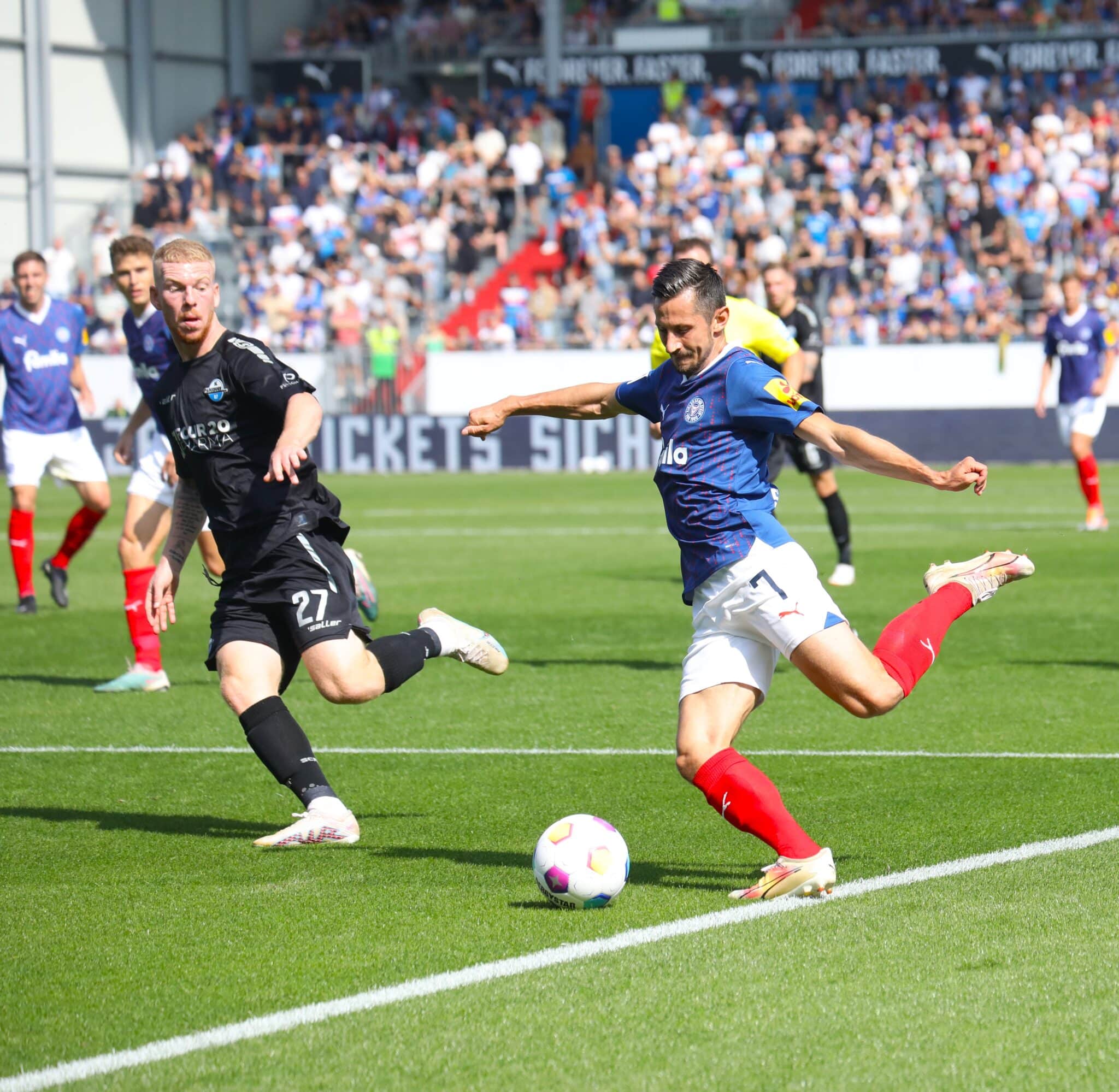 An das letzte Spiel der beiden Mannschaften im Holstein-Stadion dürften sich die KSV-Fans aber bestimmt gerne zurückerinnern. Schließlich war es im September 2023 Steven Skrzybski, der mit einem sehenswerten Tor aus 40 Metern den 2:1-Siegtreffer erzielte. Dieser Treffer unseres Kapitäns wurde damals von der Sportschau zum Tor des Monats nominiert.