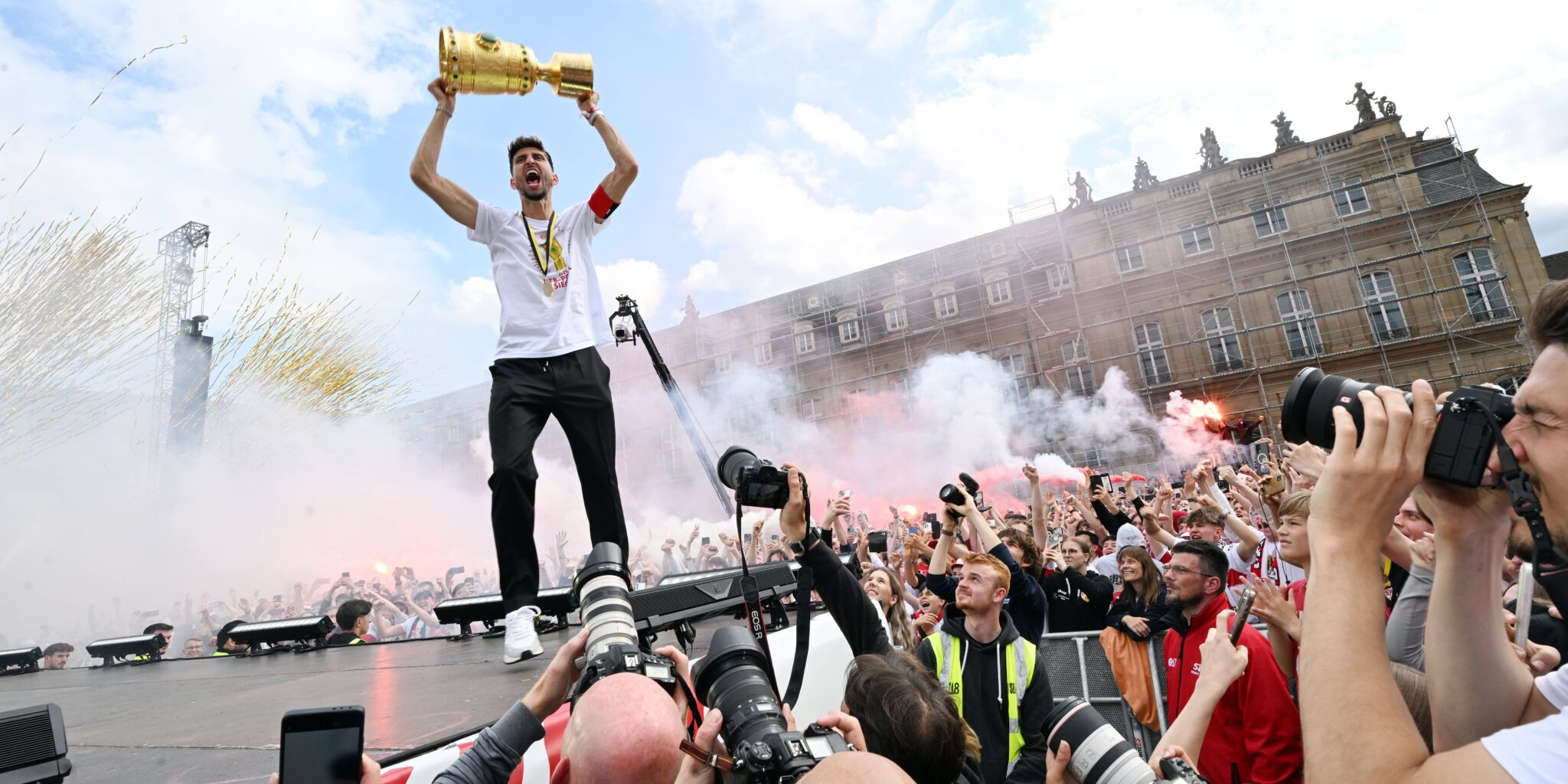 Die Gäste aus Stuttgart können definitiv als Pokalexperten bezeichnet werden. Seit der Saison 2022/23 erreichten die Schwaben stets das Viertelfinale, in der vergangenen Spielzeit zogen sie sogar erstmals seit 2013 wieder ins Endspiel ein – und setzten sich in diesem mit 4:2 gegen Arminia Bielefeld durch, sodass sie als Titelverteidiger an die Kieler Förde reisen. Doch nicht nur deshalb dürfte die Mannschaft von Trainer Sebastian Hoeneß am Mittwoch im Holstein-Stadion mit breiter Brust auftreten. Der VfB spielt sowohl im Pokal, in welchem man sich bisher gegen Eintracht Braunschweig (12:11 nach Elfmeterschießen), den 1. FSV Mainz 05 sowie den VfL Bochum (jeweils 2:0) durchsetzte, als auch in der Bundesliga eine starke Saison. Die Stuttgarter verloren nur eins der letzten zehn Pflichtspiele, zogen in der Europa League in die Playoffs ein und befinden sich aktuell als Tabellenvierter auf Champions-League-Kurs.