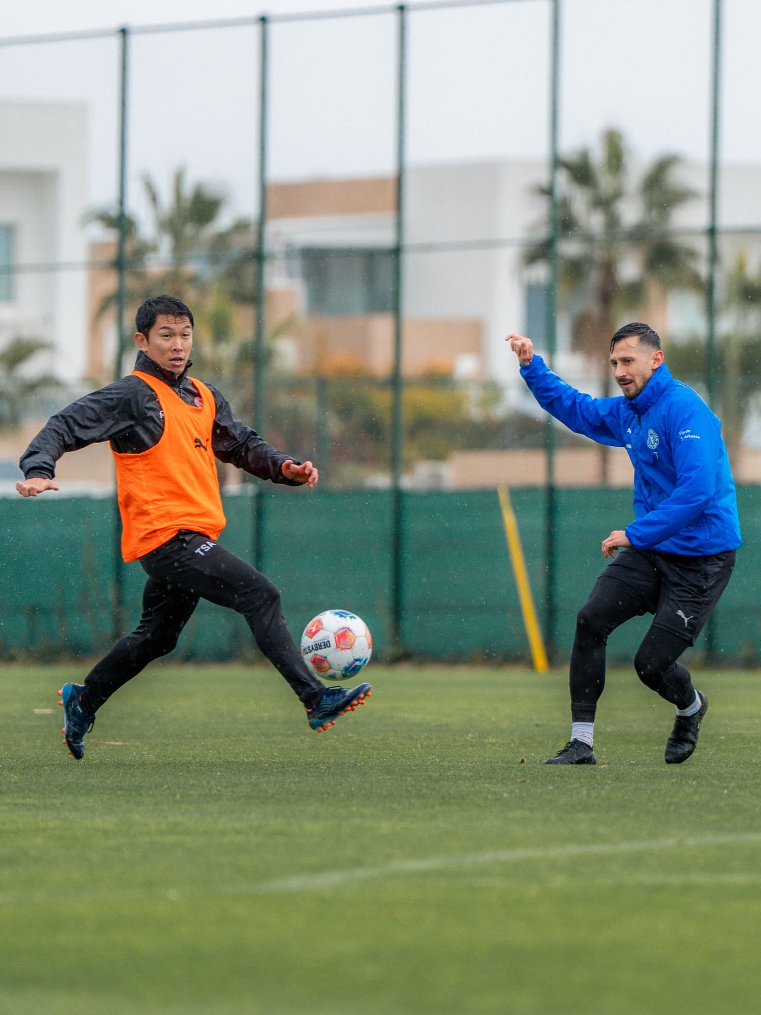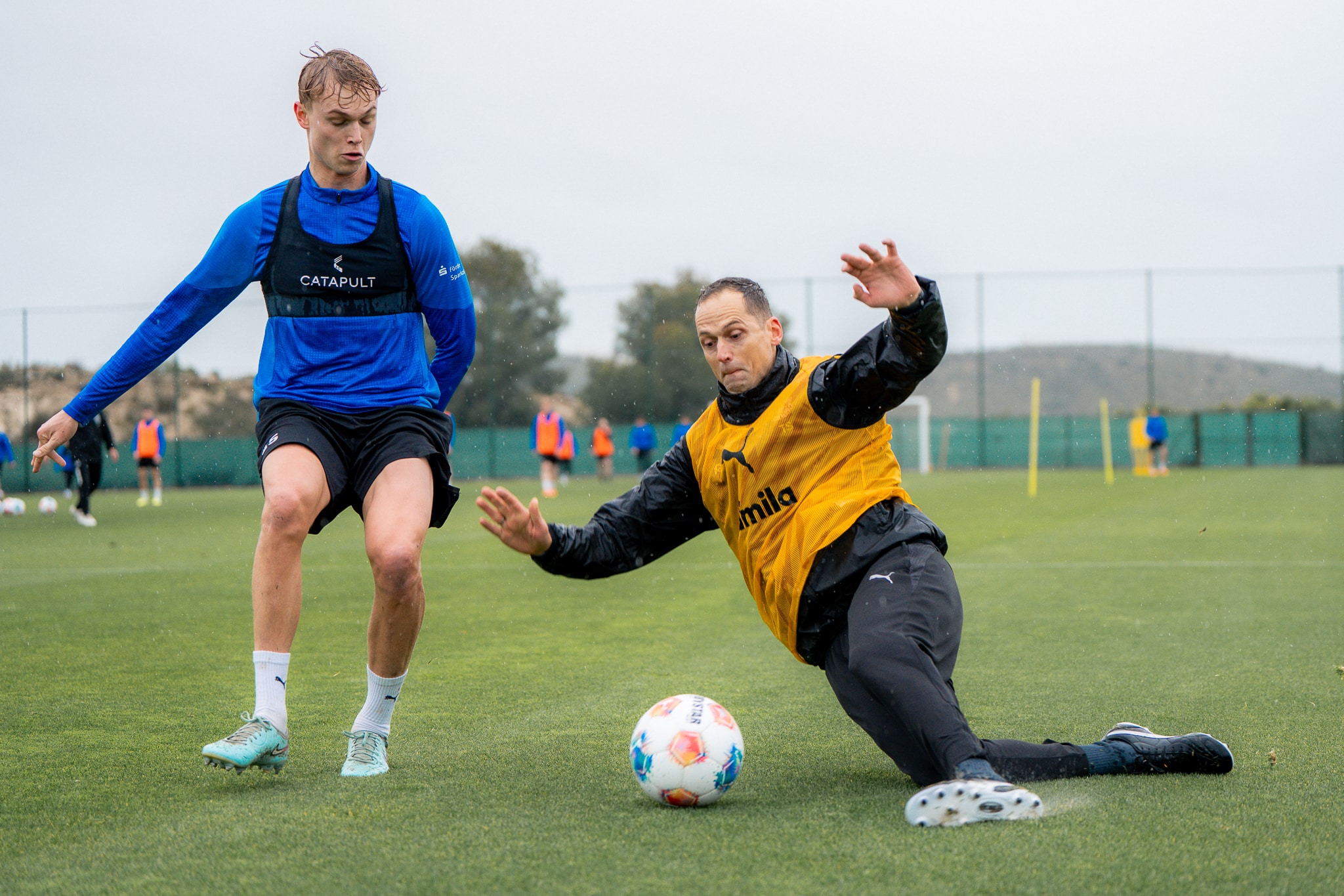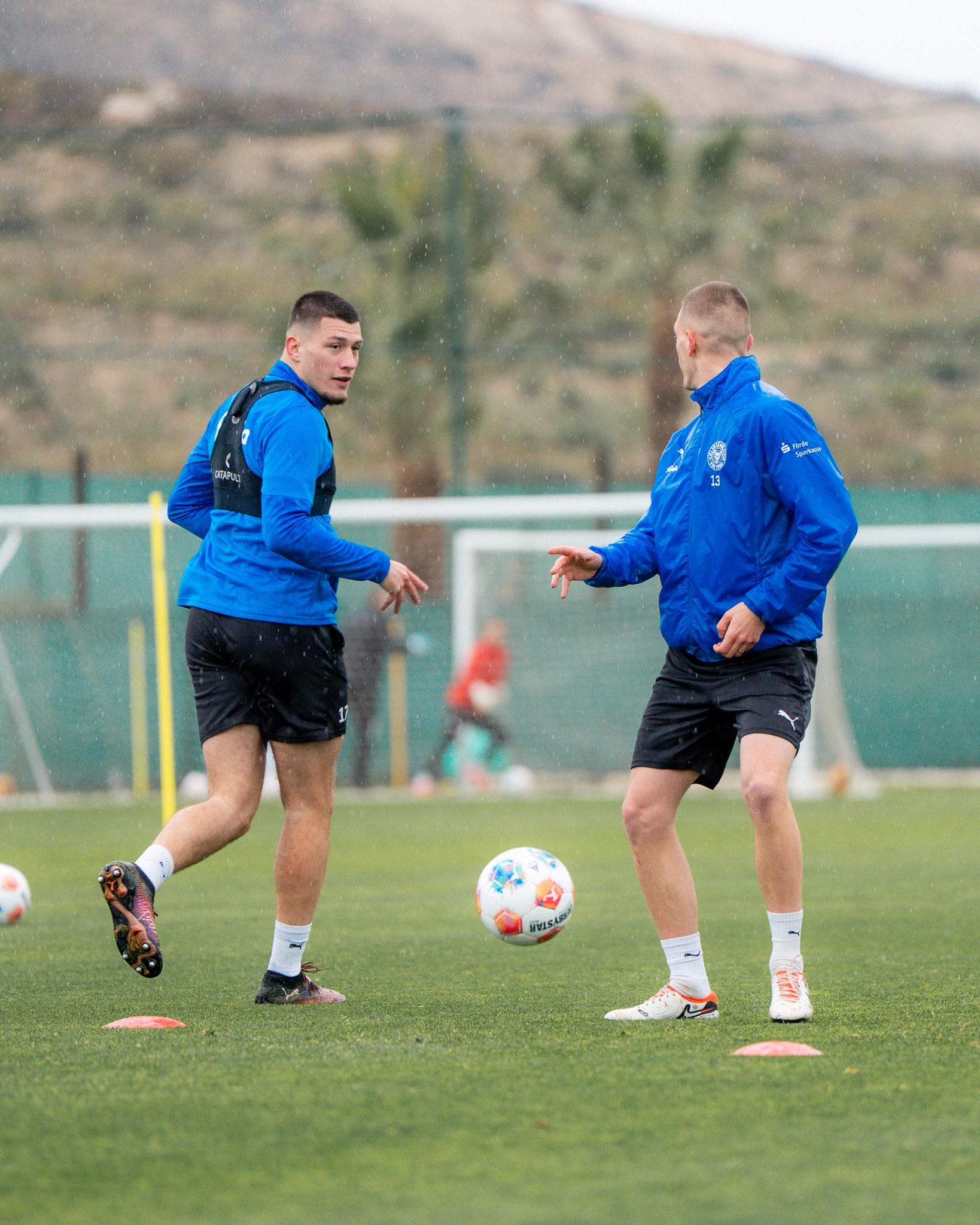 Nach der einen Trainingseinheit am Ankunftstag wurde am zweiten Tag im Trainingslager in Algorfa ein Gang hochgeschaltet. Insgesamt bat Marcel Rapp gleich dreimal zum Training. Trotz des Regens bei der Vormittagseinheit hatten die Profis sichtlich Spaß bei Geschicklichkeitschallenges mit Wasser von oben und unten.