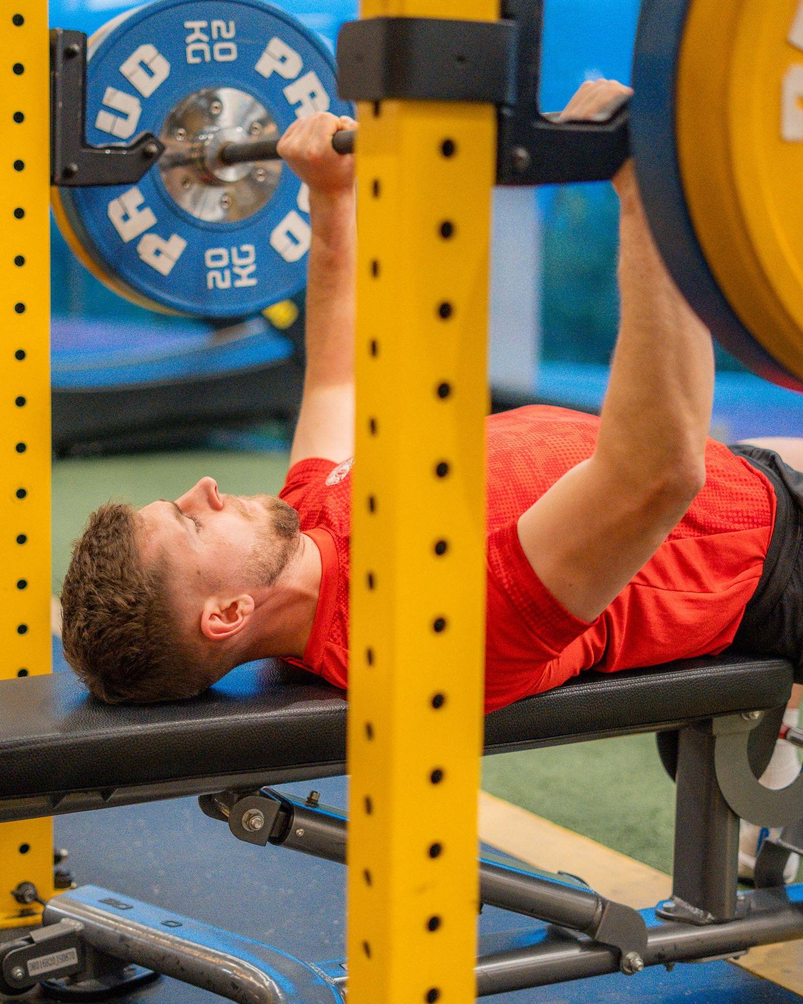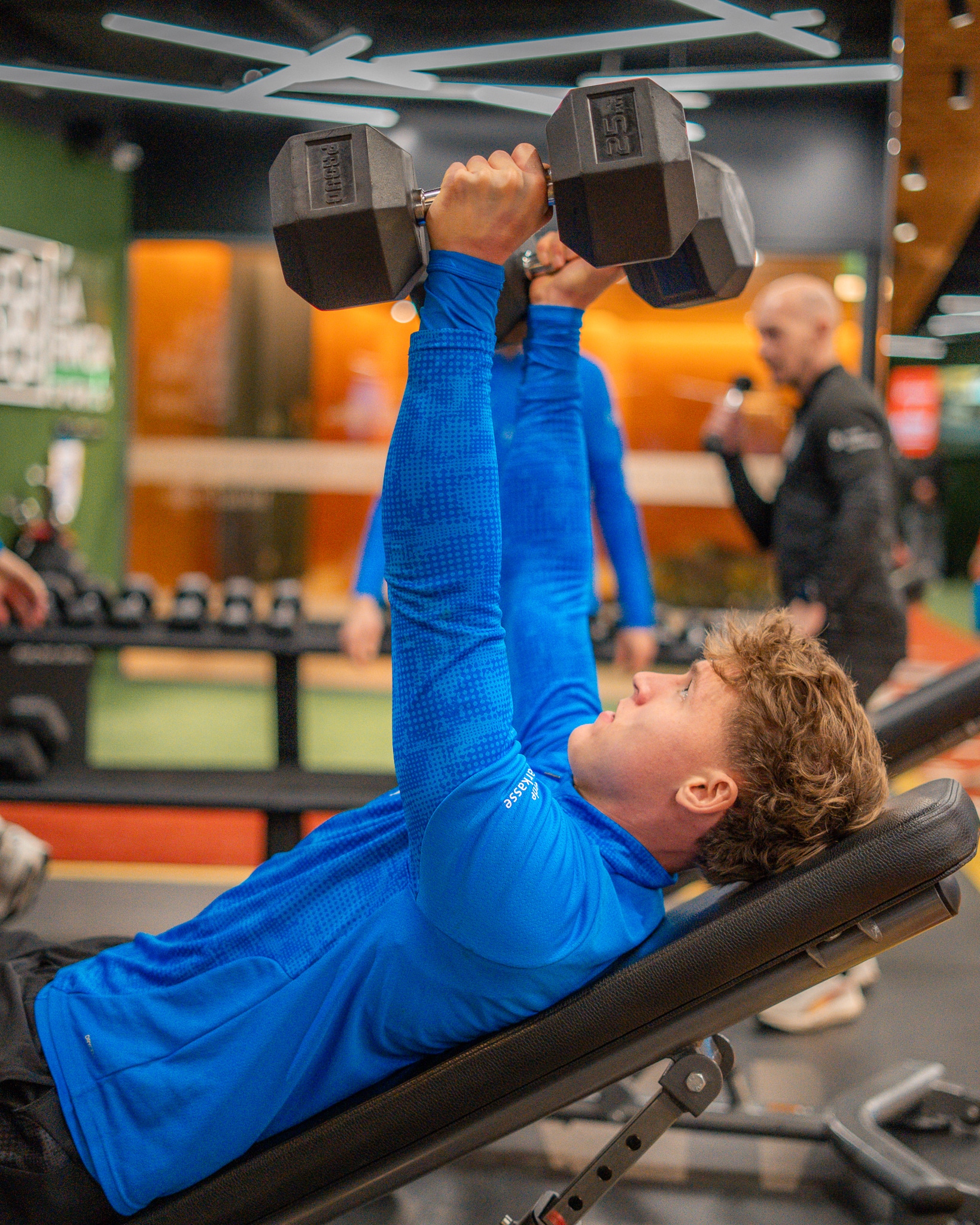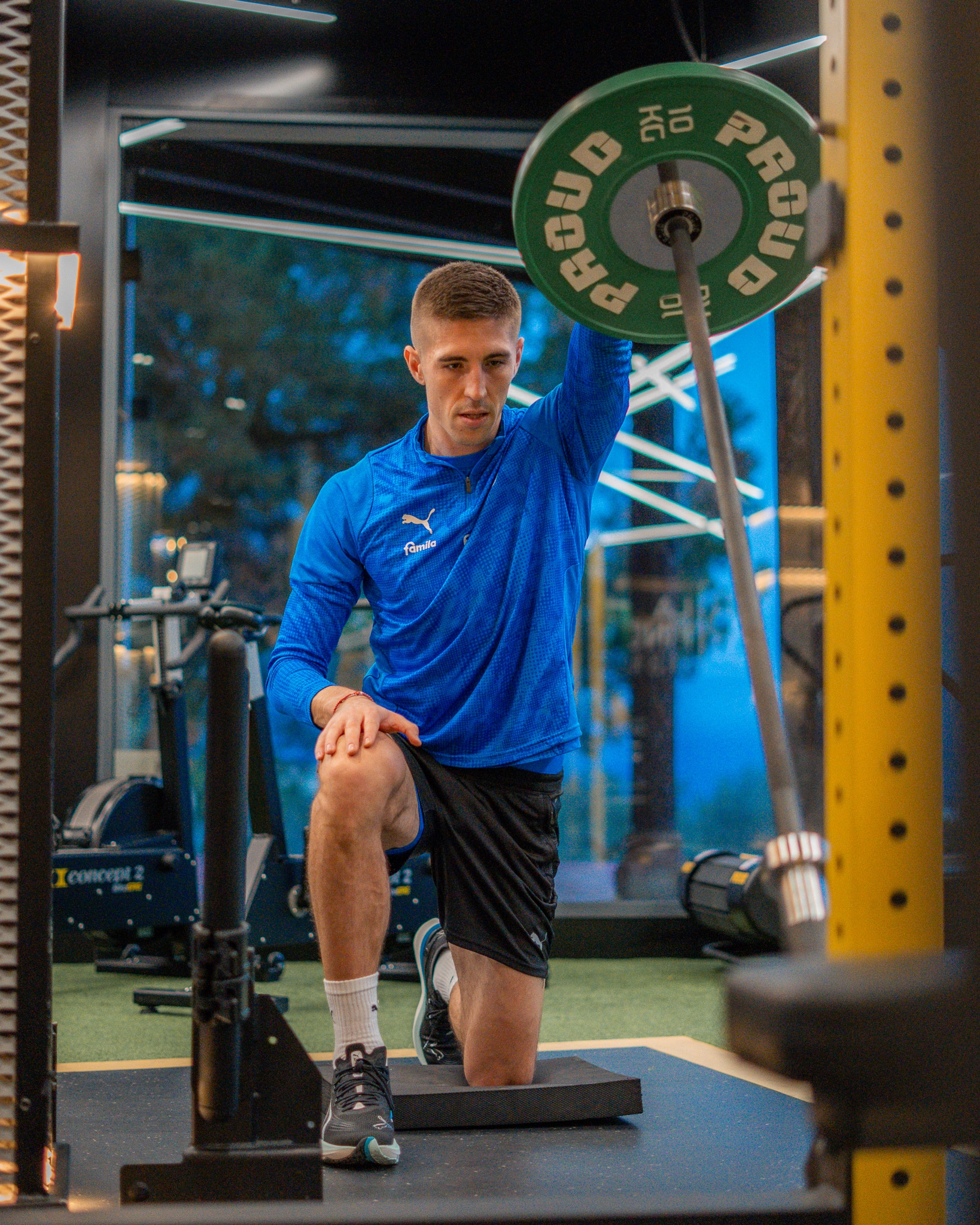 Über die Mittagszeit hörte der Regen dann auf, doch der Himmel blieb bedeckt. Unter diesen Vorzeichen trat die Mannschaft zum zweiten Mal den Weg zum Trainingsplatz an. Dort wurden sie von den ersten aus Kiel gekommenen Fans begrüßt. Zurück im Hotel ging es allerdings nicht sofort zum Abendessen, denn zuerst betrat die Mannschaft das Gym. Unter der Anleitung der Athletiktrainer Lasse Bork und Timm Sörensen absolvierten unsere Profis zunächst ein Oberkörpertraining und anschließend regenerative Übungen. Das Abendessen hatten sich die Spieler dann mehr als verdient.