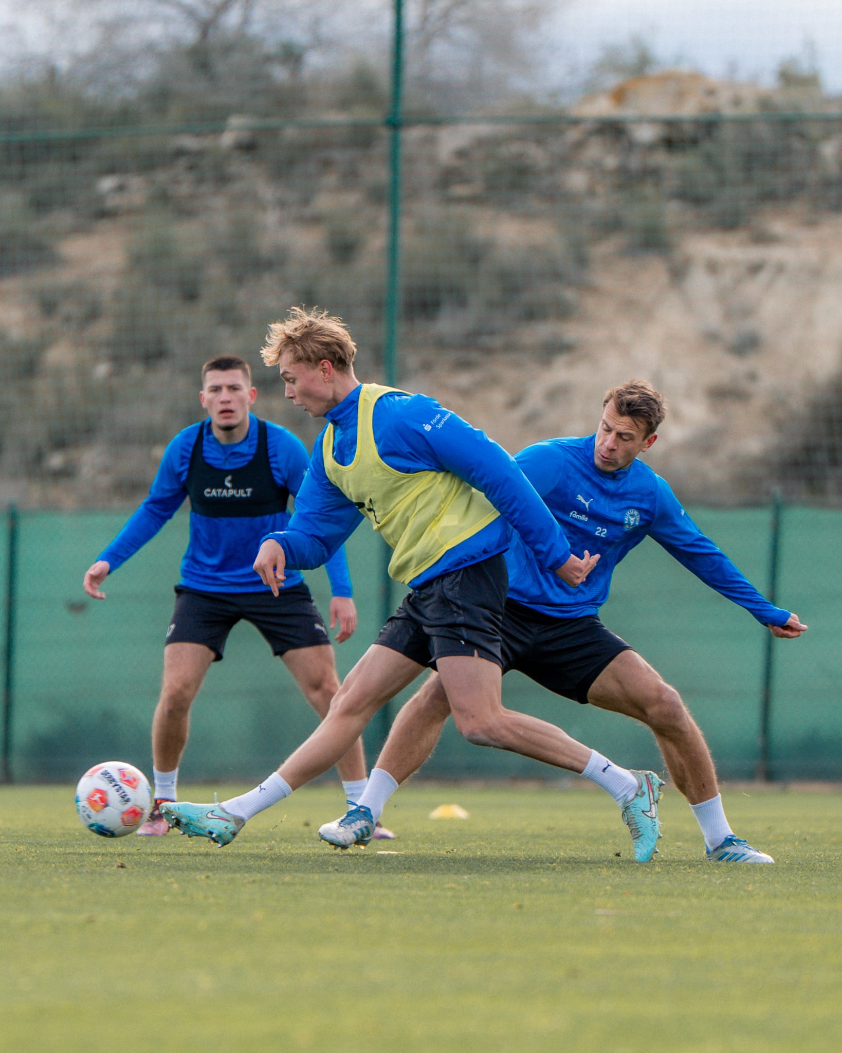 Dass keinem Spieler kalt wurde, dafür sorgte dann natürlich auch unser Trainerteam in der Vormittagseinheit. Kurze Spiele im Elf gegen Elf auf verkleinerten Feldern sorgten für ein rasantes Tempo. In den engen Räumen fanden unsere Störche geschickt, kreative Lösungen. Im weiteren Verlauf des Vormittags wurde an weiteren Offensiv-Abläufen gefeilt. Zum Abschluss zeigten Ivan Nekić, David Zec, Marko Ivezić und Marcel Engelhardt ihr Können an der Teq-Ball-Platte, während eine Gruppe um Phil Harres noch Freistöße schoss.