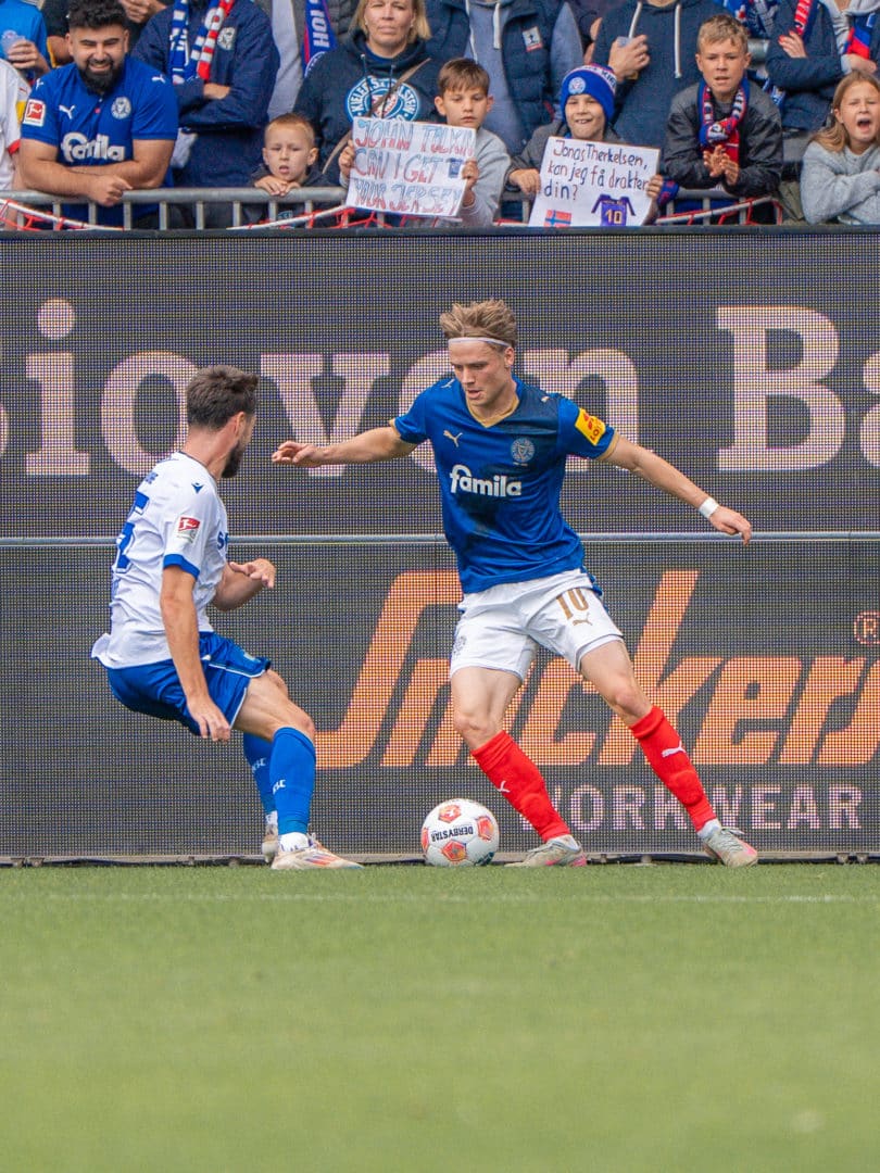 Da sich der Blondschopf nach dem ersten Kontakt mit Holstein im vergangenen Winter als Vorbereitung auf einen Wechsel die Spiele unserer KSV angesehen hatte, war er guter Dinge, sich schnell im System unseres Chefcoachs Marcel Rapp zurechtfinden zu können. „Ich habe die Spielweise studiert. In meinen alten Klub in Norwegen haben wir in der vergangenen Saison ein sehr ähnliches System gespielt“, erzählt unsere Nummer Zehn. Der aus dem Nachwuchs von Strömsgodset IF stammende Offensivspieler sammelte nach seinem Debüt im Herrenbereich seines Heimatklubs im Jahr 2022 70 Pflichtspiele und erzielte neun Tore.