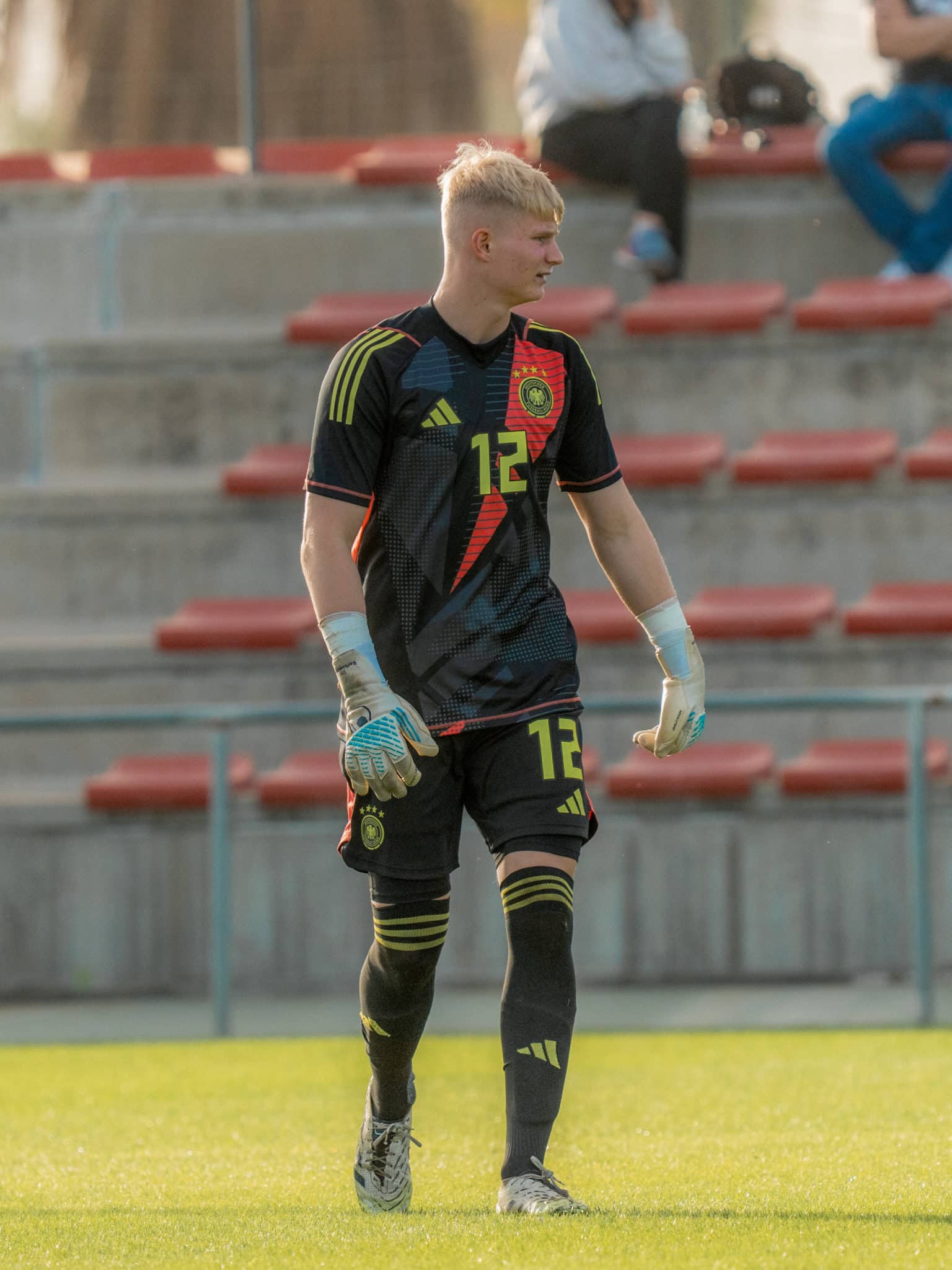 Unser 19-jähriger Torhüter war einer von 117 Top-Sportlerinnen und -Sportlern aus Schleswig-Holstein, die die Kriterien für die Sportlerehrung erfüllten. Fast 70 von ihnen waren nach Kiel gekommen und nahmen persönlich an der Veranstaltung teil. Geehrt wurden all diejenigen, die im vergangenen Jahr in olympischen, paralympischen und nichtolympischen Sportarten und Disziplinen mit Spitzenleistungen auf sich aufmerksam gemacht, an den Olympischen bzw. Paralympischen Spielen oder World Games teilgenommen, Platz eins bis acht bei Europa- und/oder Weltmeisterschaften erreicht oder einen deutschen Meistertitel errungen haben oder aber in Mannschaftssportarten für die Nationalmannschaft nominiert waren. Letzteres Kriterium erfüllte Rothenhagen, der im Jahr 2025 für insgesamt sechs Spiele in den Kader der deutschen U20-Nationalmannschaft berufen wurde. Nachdem unser Torwart am 9. September beim 4:0-Sieg gegen Italien sein Debüt gefeiert hatte, kam er auch gegen die U20-Nationalteams von Portugal (1:2) und Rumänien (6:0) zum Einsatz.