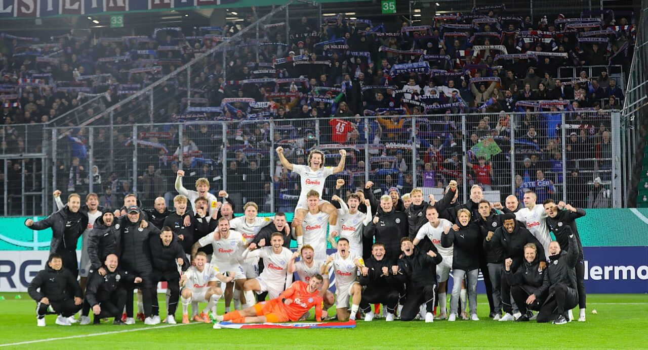 Dass der 1:0-Erfolg am gestrigen Abend durch das Goldene Tor von Alexander Bernhardsson in Wolfsburg ein historischer Sieg war, hatte wohl niemand in der Volkswagen Arena auf dem Schirm – fast niemand. Tobias Meier, Vorsitzender des Fanclubs „Gruppo Ernesto“ und Gastautor der Chronik 125 Jahre Holstein Kiel, meldete uns kurz nach Mitternacht voller Begeisterung die Besonderheit. Erstmals in der langen Pokalgeschichte gelang den Störchen ein Auswärtssieg bei einem höherklassigen Club. Geschichte pur also im Jahr des 125. Vereinsgeburtstages. Und das auch noch in den „legendären“ weißen Trikots…
