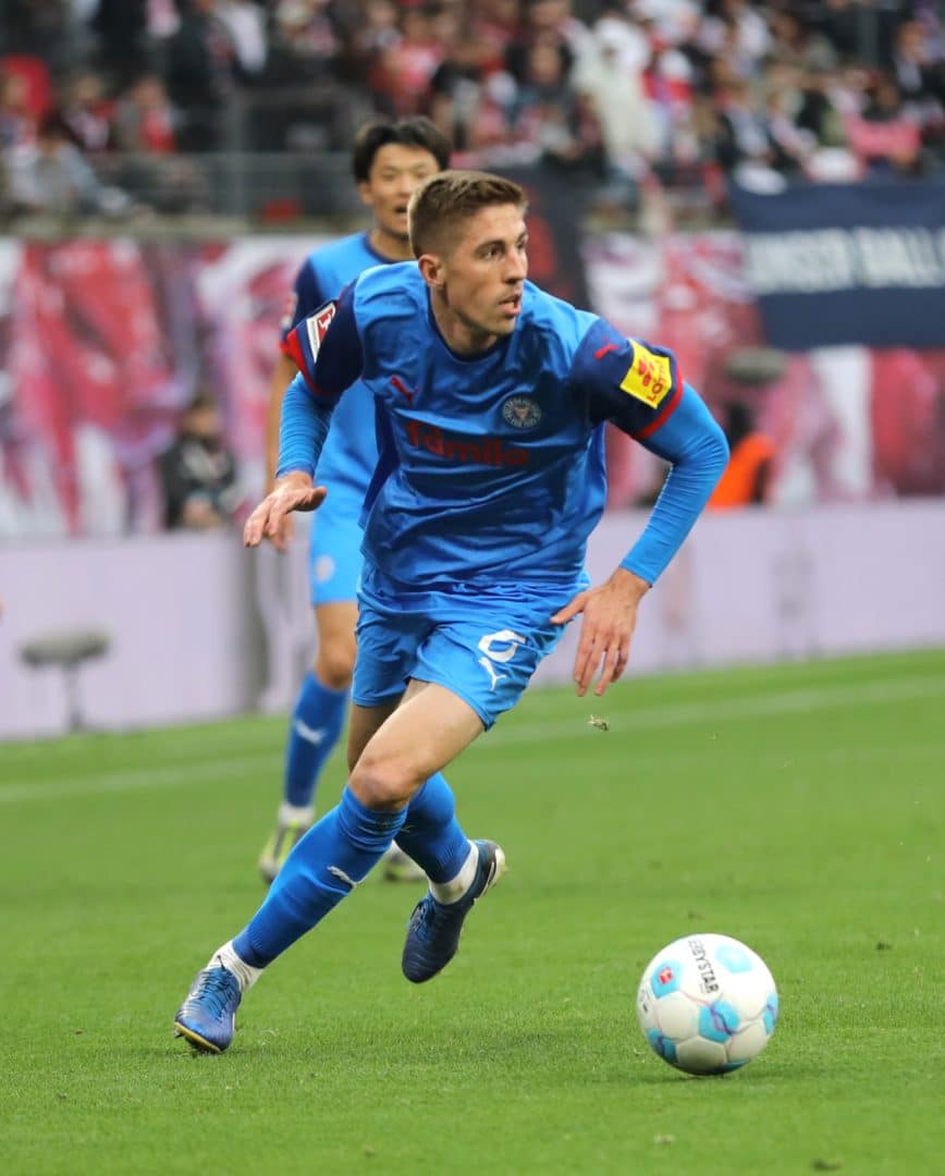 Vier Minuten waren gespielt, da hätte RB Leipzig durch Benjamin Sesko bereits in Führung gehen können: Eine Flanke von Nicolas Seiwald setzte der Stürmer jedoch knapp am kurzen Pfosten vorbei. In einer munteren Anfangsphase dann wenig später die erste dicke Möglichkeit für die Elf von Marcel Rapp, als Steven Skrzybski nach einem Ballgewinn aus rund 45 Metern den Kunstschuss ansetzte, RB-Torhüter Peter Gulacsi den Lupfer jedoch im Rückwärtslaufen über den Kasten lenken konnte. In der Folge wurden unsere Störche stärker und erspielten sich eine optische Überlegenheit, die jedoch selten zu klaren Torchancen führte. Leipzig hatte Probleme gegen die gut gestaffelte Kieler Abwehrreihe und leistete sich wiederholt Fehler im Aufbau, die zu Offensivaktionen der KSV führten. Ein geblockter Abschluss von Shuto Machino (20.) sowie eine Ballaktion in aussichtsreicher Position von Skrzybski (31.) blieben aber zunächst die einzigen Halbchancen. Vor allem über rechts startete Holstein Angriff um Angriff und wurde kurz vor der Pause belohnt: Lasse Rosenboom schickte über rechts den auffälligen Skrzybski, der den Ball mit perfektem Timing flach auf Machino flankte. Der Japaner ließ sich diese Chance nicht nehmen und traf zum verdienten 1:0 (44.).