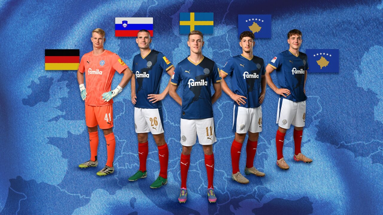 Diese Störche sind auf Länderspielreise (v. li.): Lio Rothenhagen, David Zec, Alexander Bernhardsson, Hamza Muqaj und Leon Parduzi