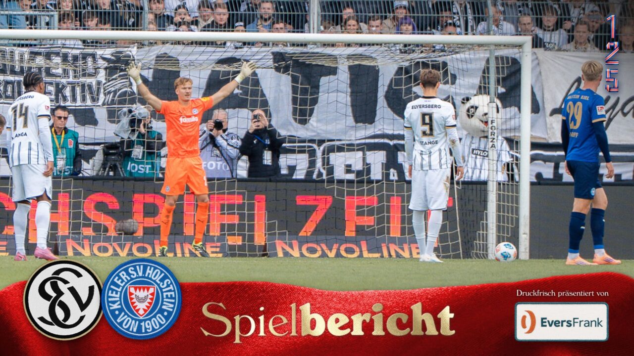 Nach dem Seitenwechsel nahm die Chancendichte ab. Den ersten Hochkaräter hatten unsere Jungs, als Joker Phil Harres frei vor Kristof auftauchte, den Ball per Grätsche aber nicht am herauseilenden Torhüter vorbei bugsieren konnte (57.). In der Folge verflachte die Partie zusehends, weil sich beide Seiten neutralisierten und nicht mehr gefährlich vors gegnerische Gehäuse kamen. In der Schlussphase erhöhten die Saarländer noch einmal den Offensivdruck und kamen zu einer Doppelchance, als erst Krumrey Ebnoutalibs Schuss parierte und anschließend Carl Johansson per Kopf den Nachschuss von Bambasé Conté auf der Linie klärte (83.). Holstein konnte gegen nun druckvollere Hausherren nur noch für wenig Entlastung sorgen – und musste in der Nachspielzeit einen Foulelfmeter gegen sich hinnehmen, als Lasse Rosenboom im Strafraum Conté zu Fall brachte. Bei Otto Stanges Elfmeter war Krumrey zwar in der richtigen Ecke, konnte den präzisen Schuss aber nicht abwehren (90.+5). In der verbleibenden Zeit warfen unsere Störche alles nach vorne, Tolkin konnte nach nach einer weiten Flanke den Ball aber nicht mehr aufs Tor bringen (90.+7), sodass unsere KSV mit einer bitteren Last-Minute-Niederlage die Heimreise gen Norden antreten musste.