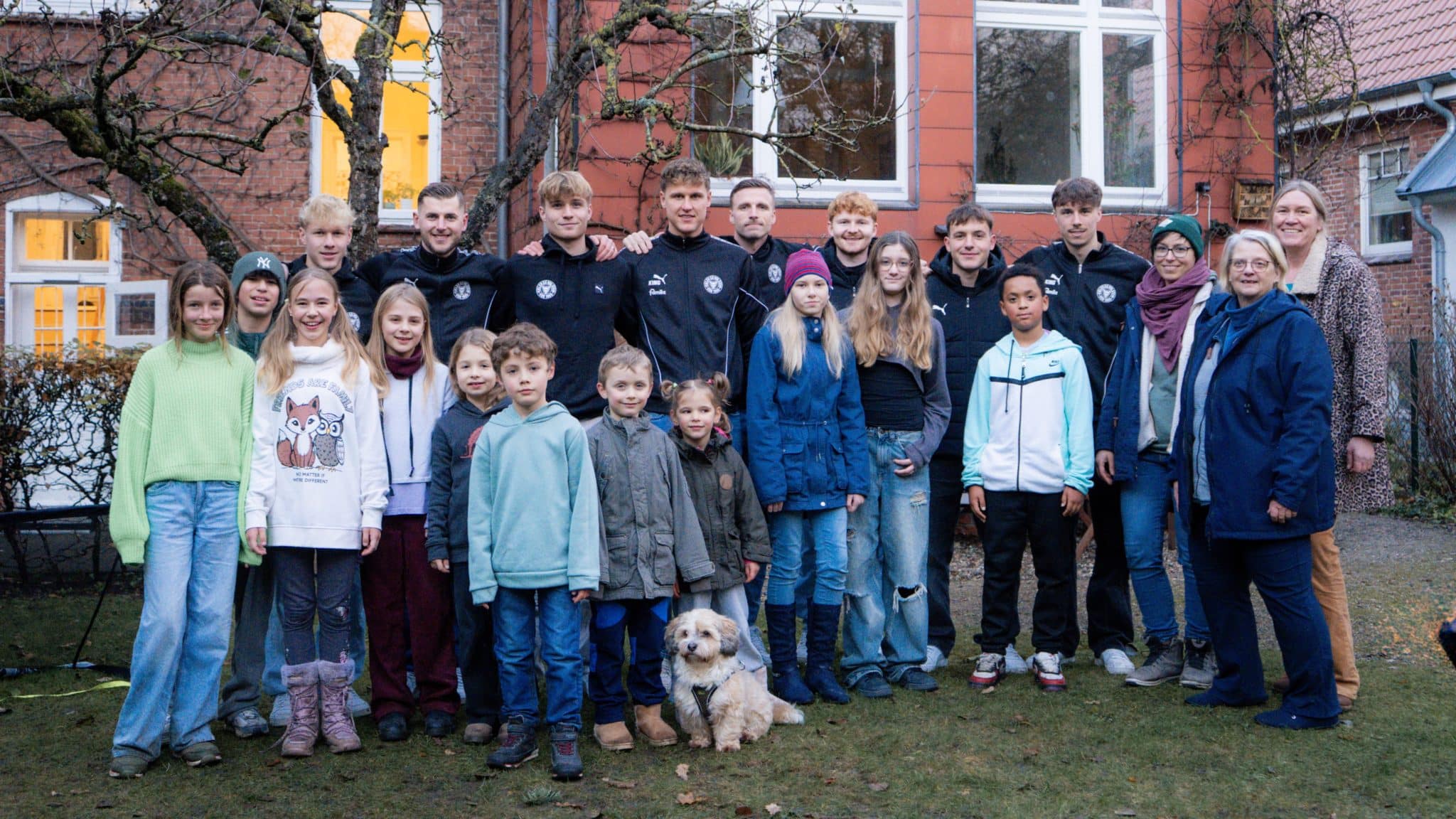 Die Profis von Holstein Kiel unterstützen das Projekt KLEE bereits seit mehreren Jahren und besuchen die Kinder der Einrichtung regelmäßig in der Vorweihnachtszeit. So waren am Mittwoch Luca Prasse, Timon Weiner, Niklas Niehoff, Phil Harres, Carl Johansson, Robert Wagner, Leon Parduzi und Louis Köster in der Waitzstraße zu Besuch. Zunächst spielten sie mit den Kindern im Garten eine Runde Fußball, anschließend stellten die Kinder neugierig Fragen an die Fußballer. Zum Abschluss überreichten unsere Störche Geschenktüten mit Mützen, Schals, Autogrammkarten und weiteren Überraschungen aus dem Holstein-Fanshop – zur großen Freude der Kinder.