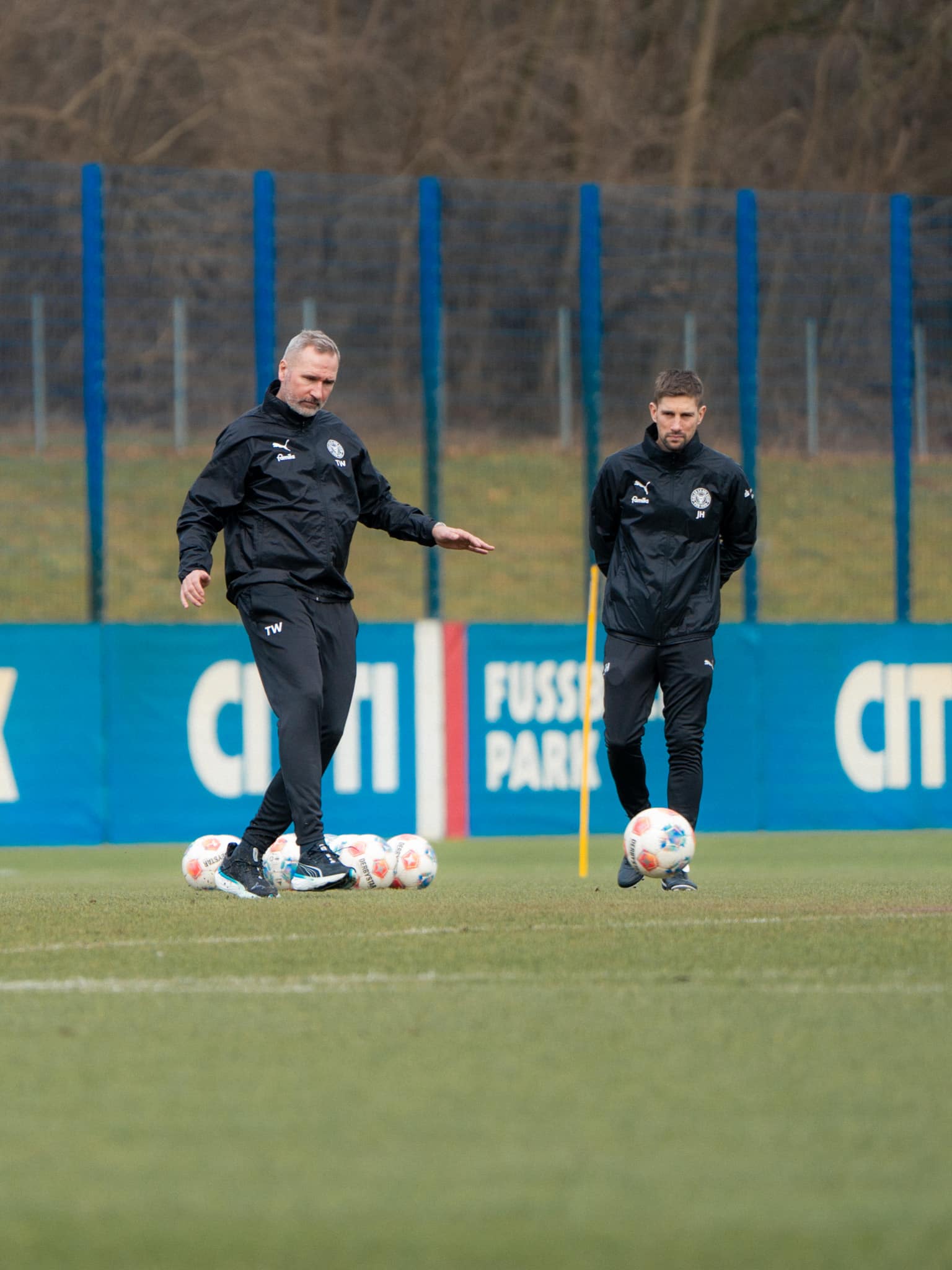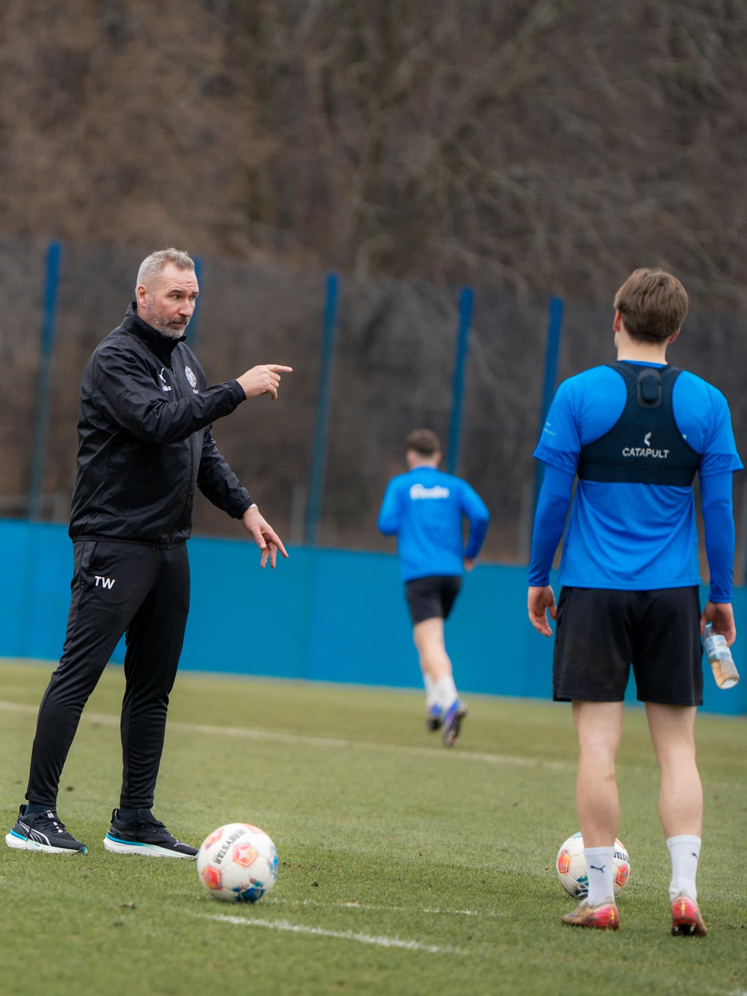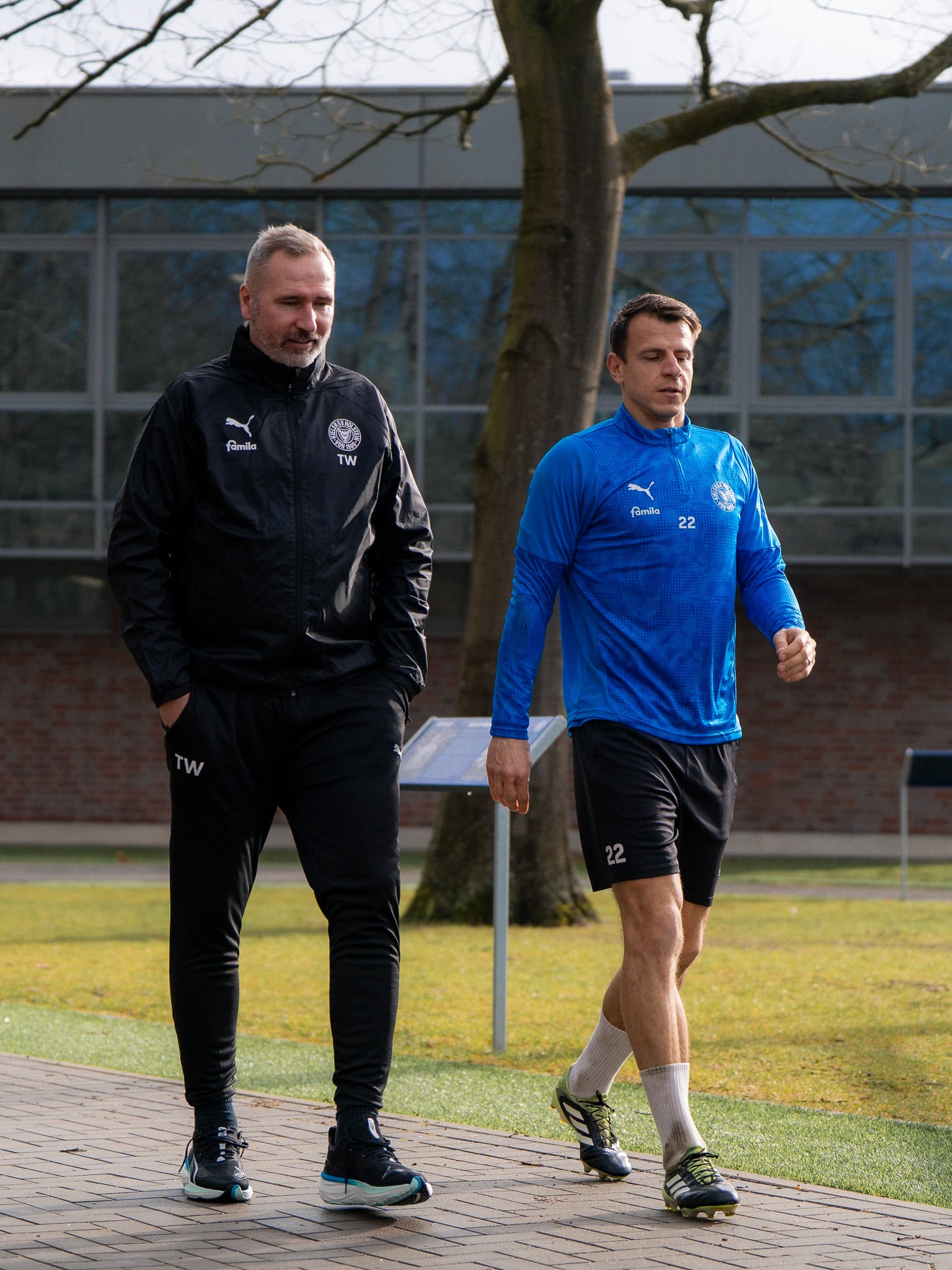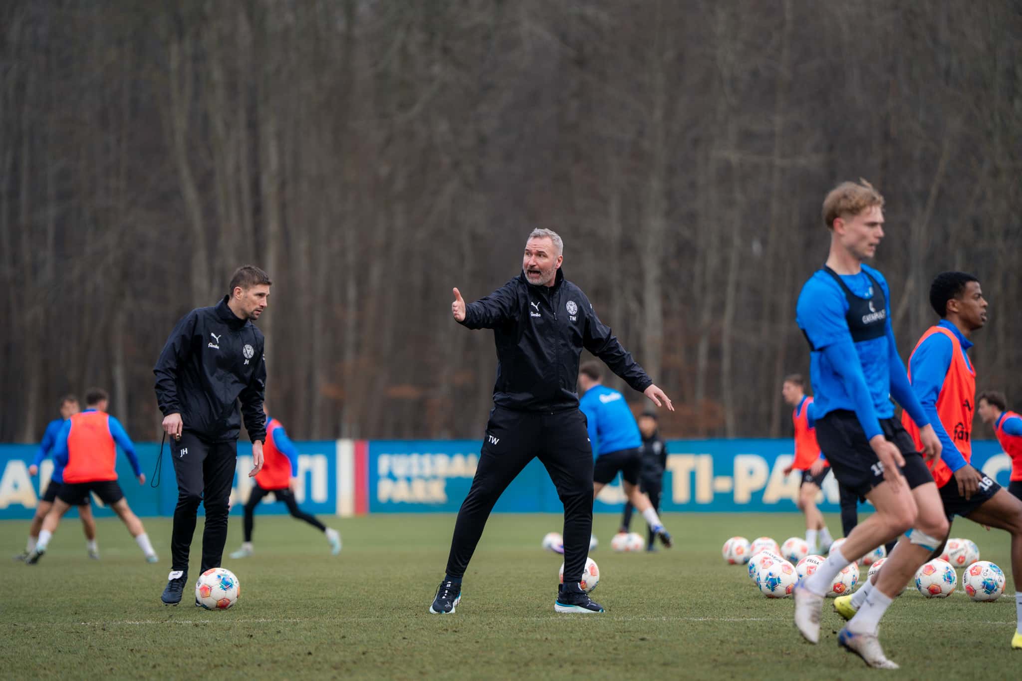 Er sei auf eine herzliche, offene Mannschaft getroffen, die lernwillig sei und die Bereitschaft zeige, neue Inhalte anzunehmen, berichtete Walter. „Und das haben die Jungs heute schon direkt sehr gut gemacht“, lobte der Fußballlehrer, der seinem Team eine klare Ansprache bieten und Konsequenz vorleben, gleichzeitig aber auch Spaß am Fußball vermitteln will. „Ich möchte die Jungs damit infizieren, dass man viel Freude am Fußball hat, wenn man mutig ist und intensiv agiert. Diese Attitüde legen sie an den Tag. Ich werde alles dafür geben, um gemeinsam mit meinen Spielern erfolgreich zu sein. Sie sollen das Vertrauen spüren und initiativ werden“, betonte Walter. Er habe Holstein in den vergangenen Jahren nie aus den Augen verloren – im Gegenteil. „Ich habe hier viele gute Freunde gefunden und bin in meiner Zeit im Norden oft nach Kiel gefahren, um sie zu besuchen. Außerdem hat mir der Verein damals die Chance gegeben, mich im Profifußball zu etablieren. Dafür bin ich Holstein sehr dankbar. Es war eine erfolgreiche Zeit. Daran wollen wir anknüpfen“, blickte der Coach voraus.