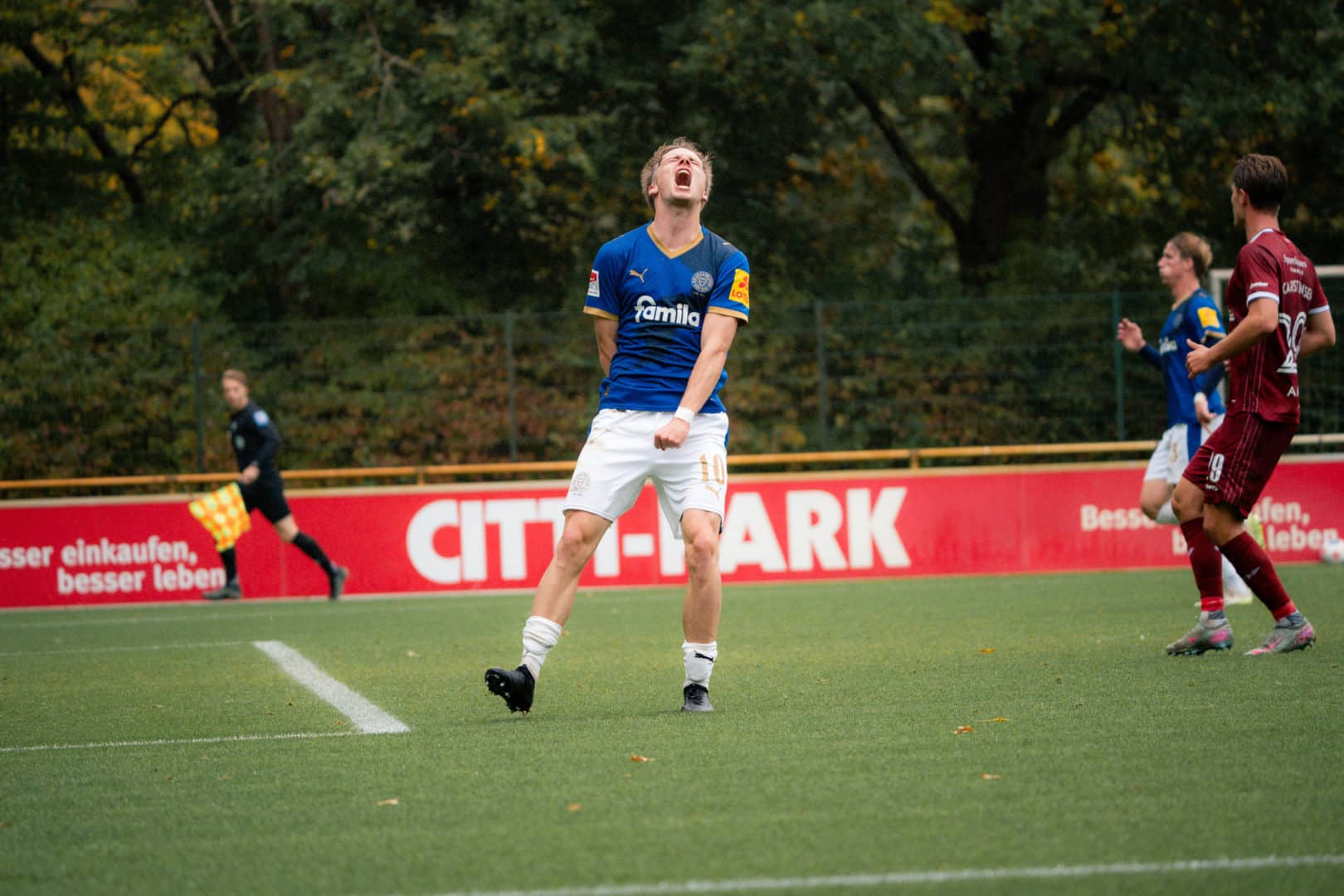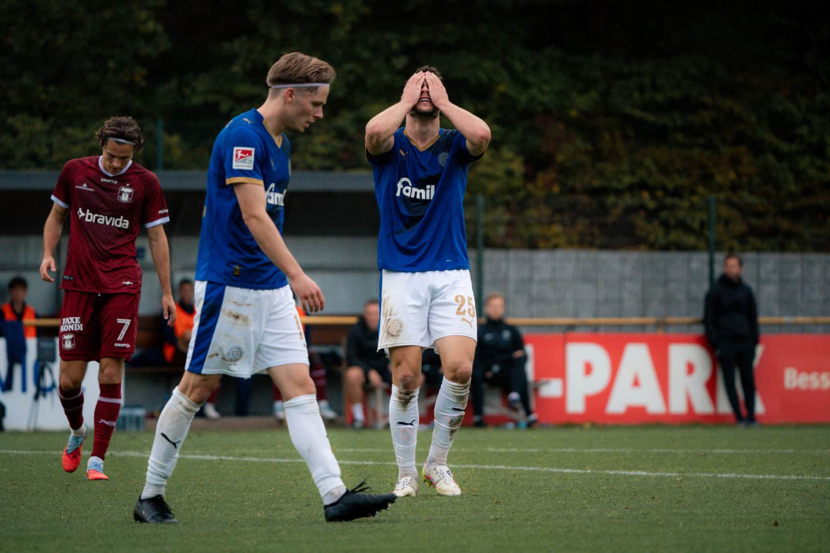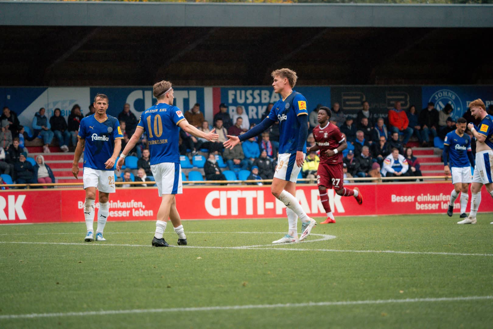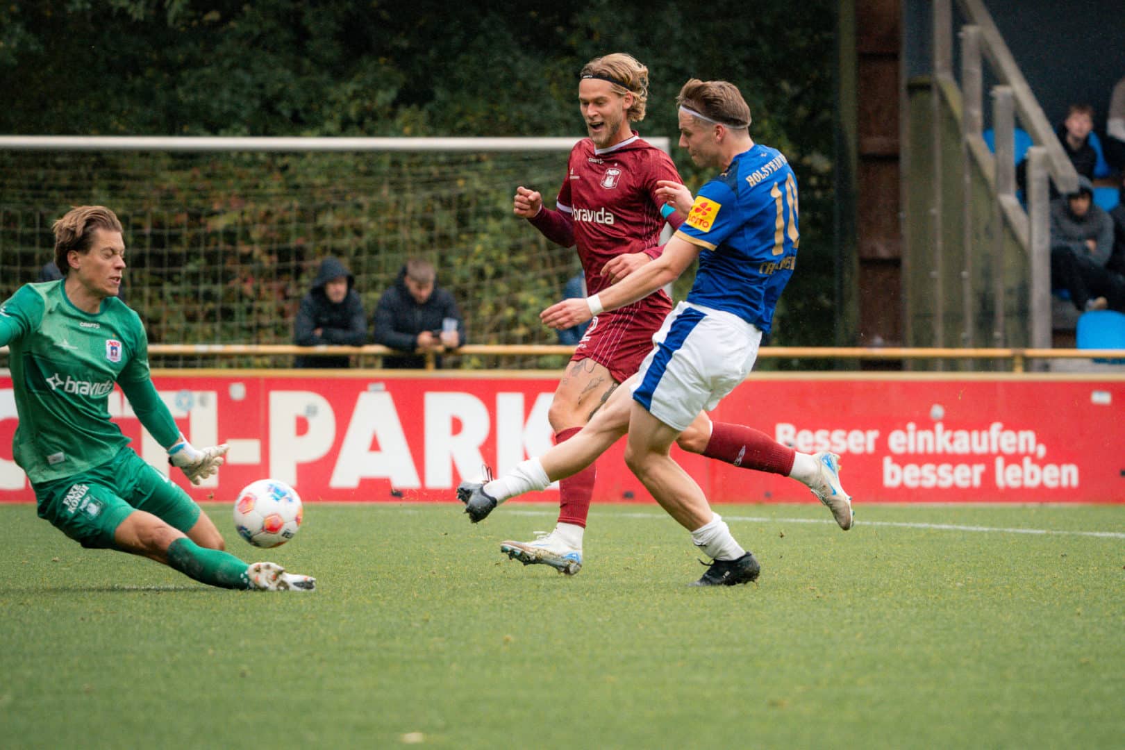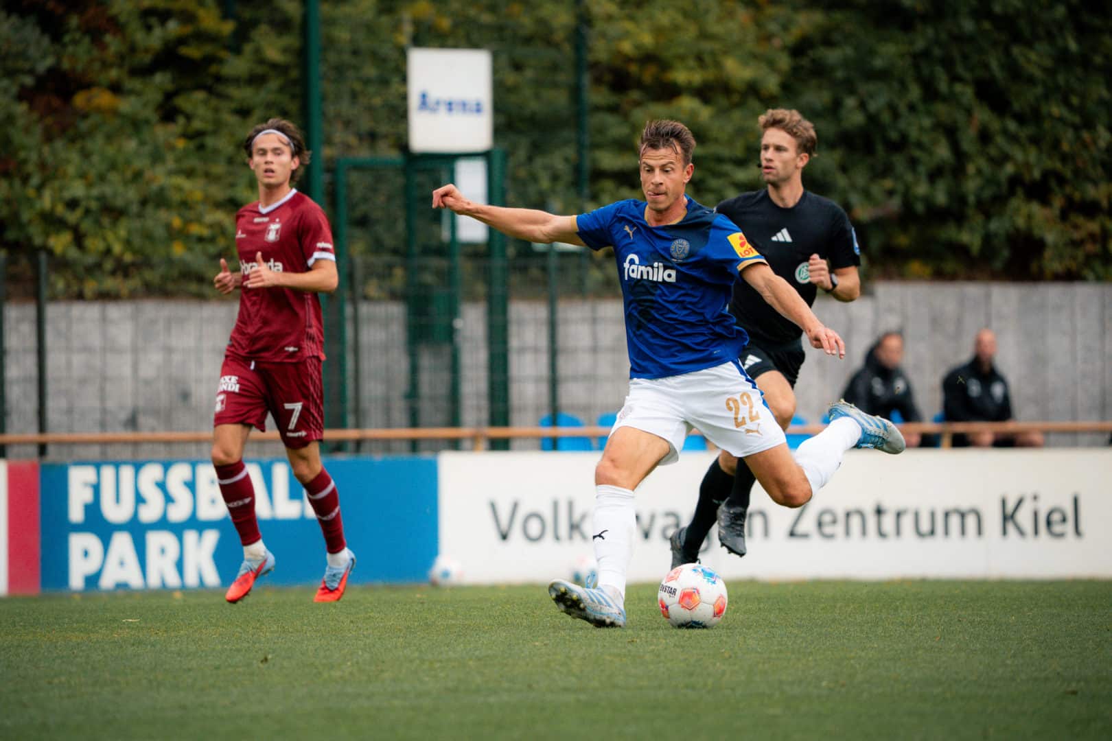Holstein: Weiner – Nekic, Roslyng, Komenda (46. Medlin) – Rosenboom, Wagner, Schwab, Niehoff, Skrzybski (70. Köster), Therkelsen (79. Prasse) – Müller (46. Harres). Trainer: Rapp.