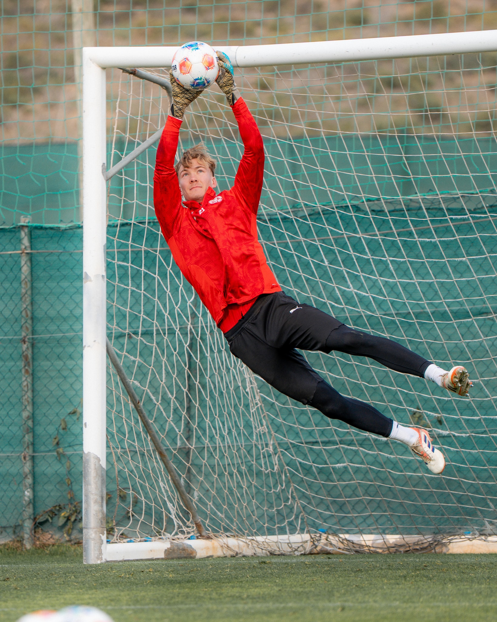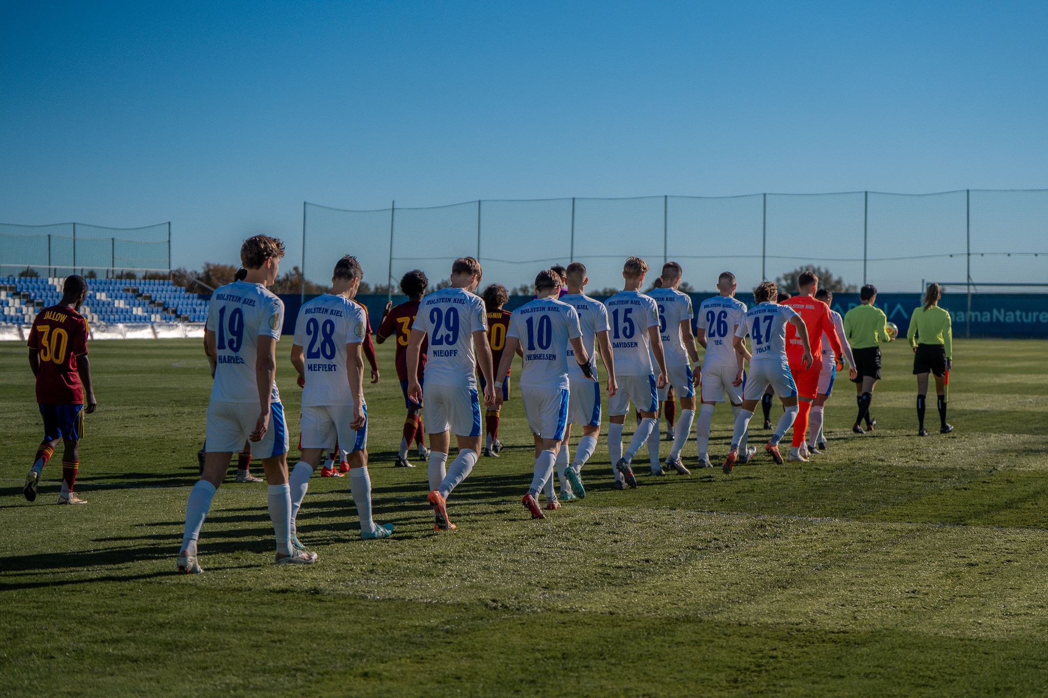 Bei zahlreichen Trainingseinheiten auf gut gepflegten Rasenplätzen und im Kraftraum bereiteten sich unsere Jungs auf die Rückrunde vor. Das Wetter wurde dabei von Tag zu Tag besser – am letzten Tag zeigte das Thermometer 18 Grad an. „Wir haben die Zeit hier gut genutzt. Wir konnten alles trainieren, haben nicht übertrieben und trotzdem haben die Jungs Vollgas gegeben. Daher sind wir insgesamt sehr zufrieden“, resümierte der Cheftrainer. Dazu standen zwei Testspiele auf dem Programm: In der ersten Partie trennte man sich mit 1:1 vom Schweizer Vizemeister Servette FC und zum Abschluss der Woche gelang ein 2:0-Erfolg gegen Ferencváros Budapest.