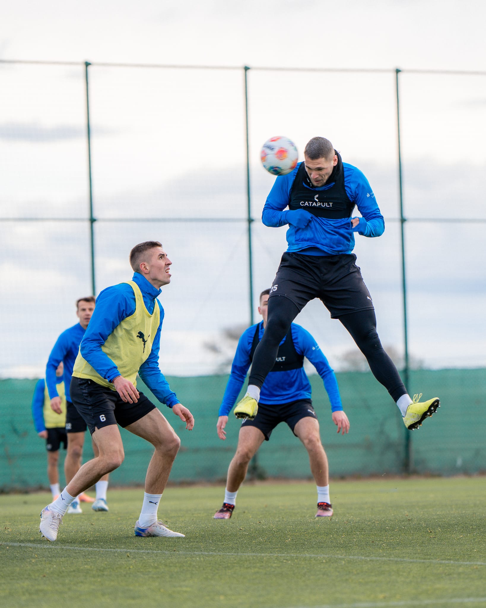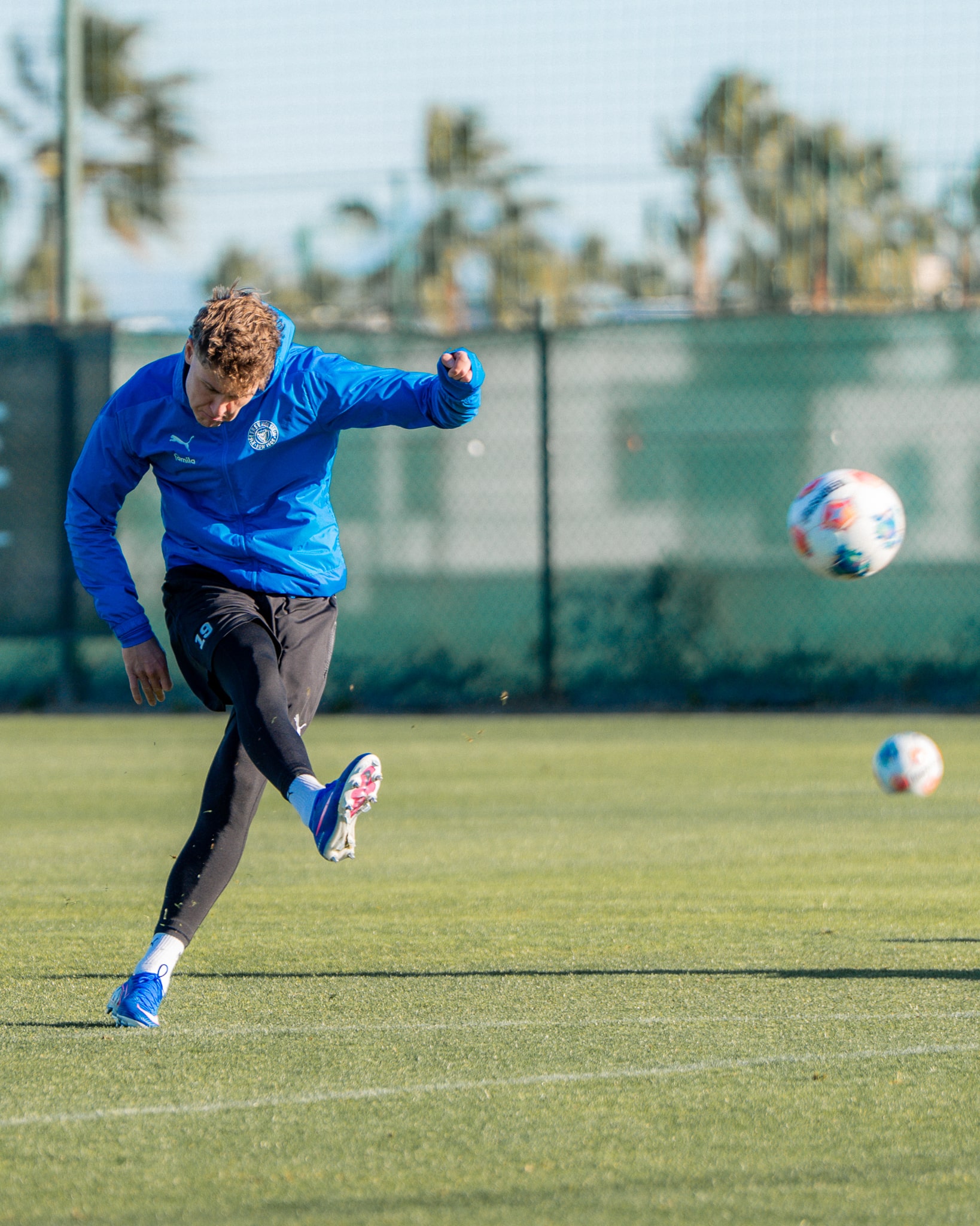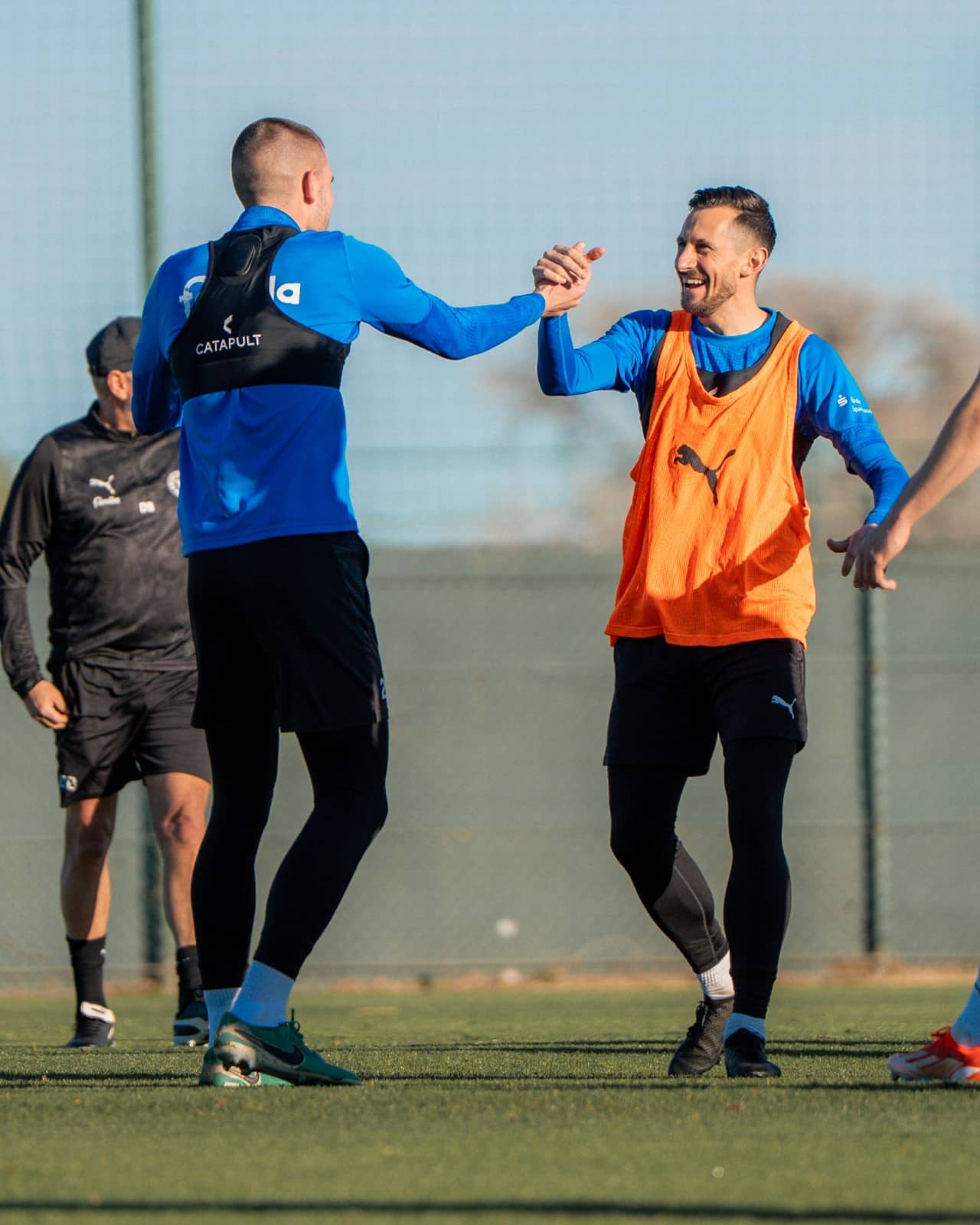 Am zweiten Tag im Trainingslager in Algorfa wurde ein Gang hochgeschaltet. Insgesamt bat Marcel Rapp gleich dreimal zum Training. Trotz des Regens bei der Vormittagseinheit hatten die Profis sichtlich Spaß bei Geschicklichkeits-Challenges mit Wasser von oben und unten.