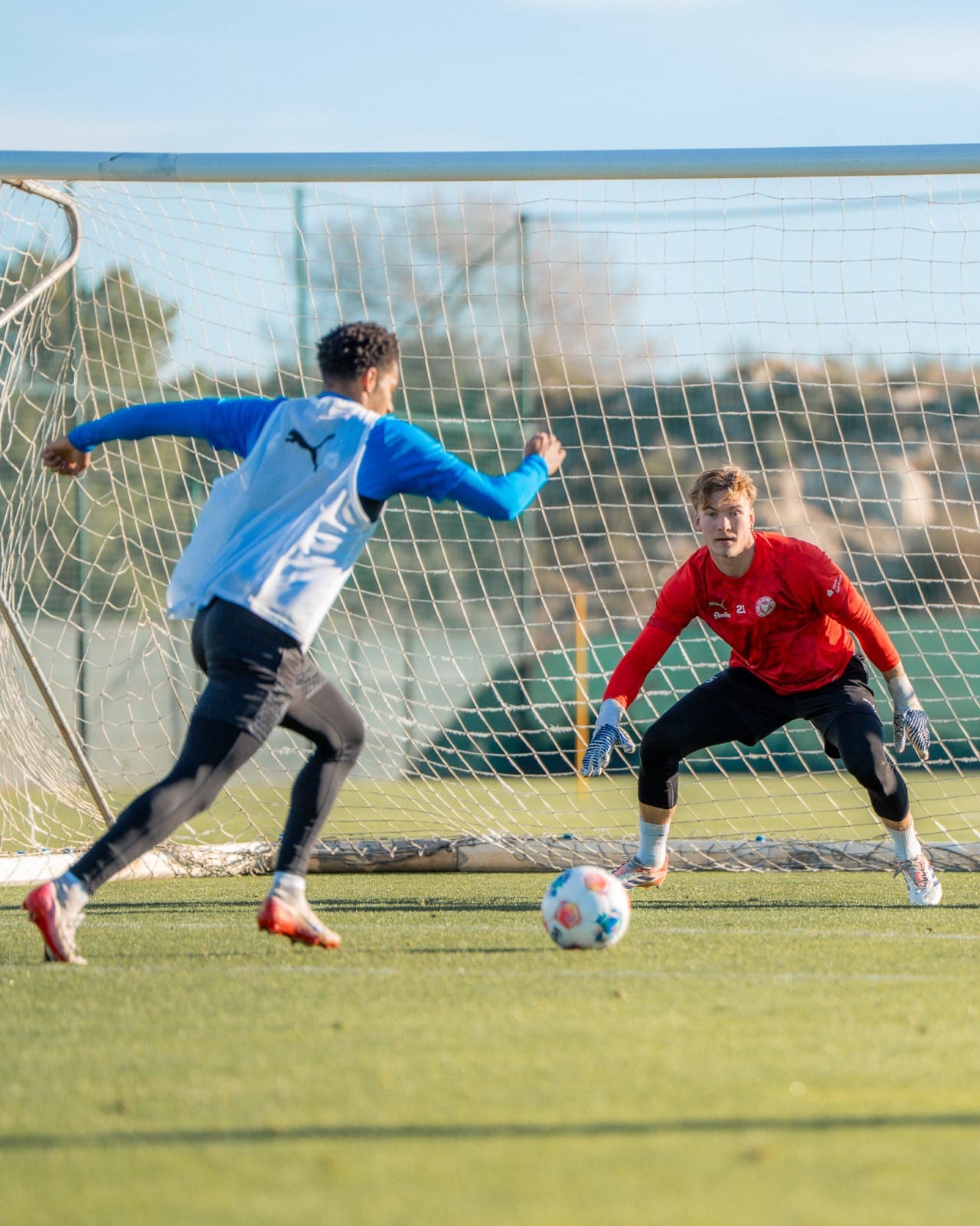 Nicht nur die mittlerweile dauerhaft scheinende Sonne brachte die Jungs ins Schwitzen, sondern auch die zwei angesetzten Trainingseinheiten. Abseits des Rasens sorgte die Vertragsverlängerung von Steven Skrzybski zudem für gute Laune.