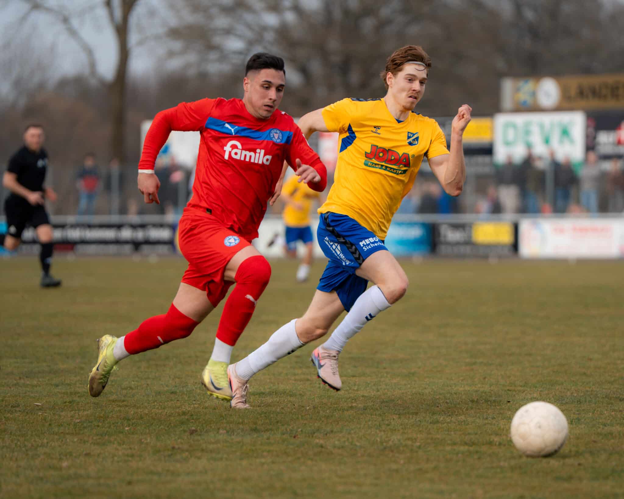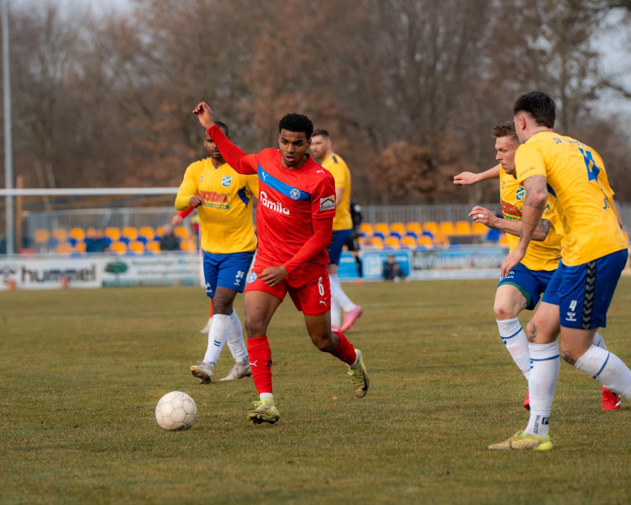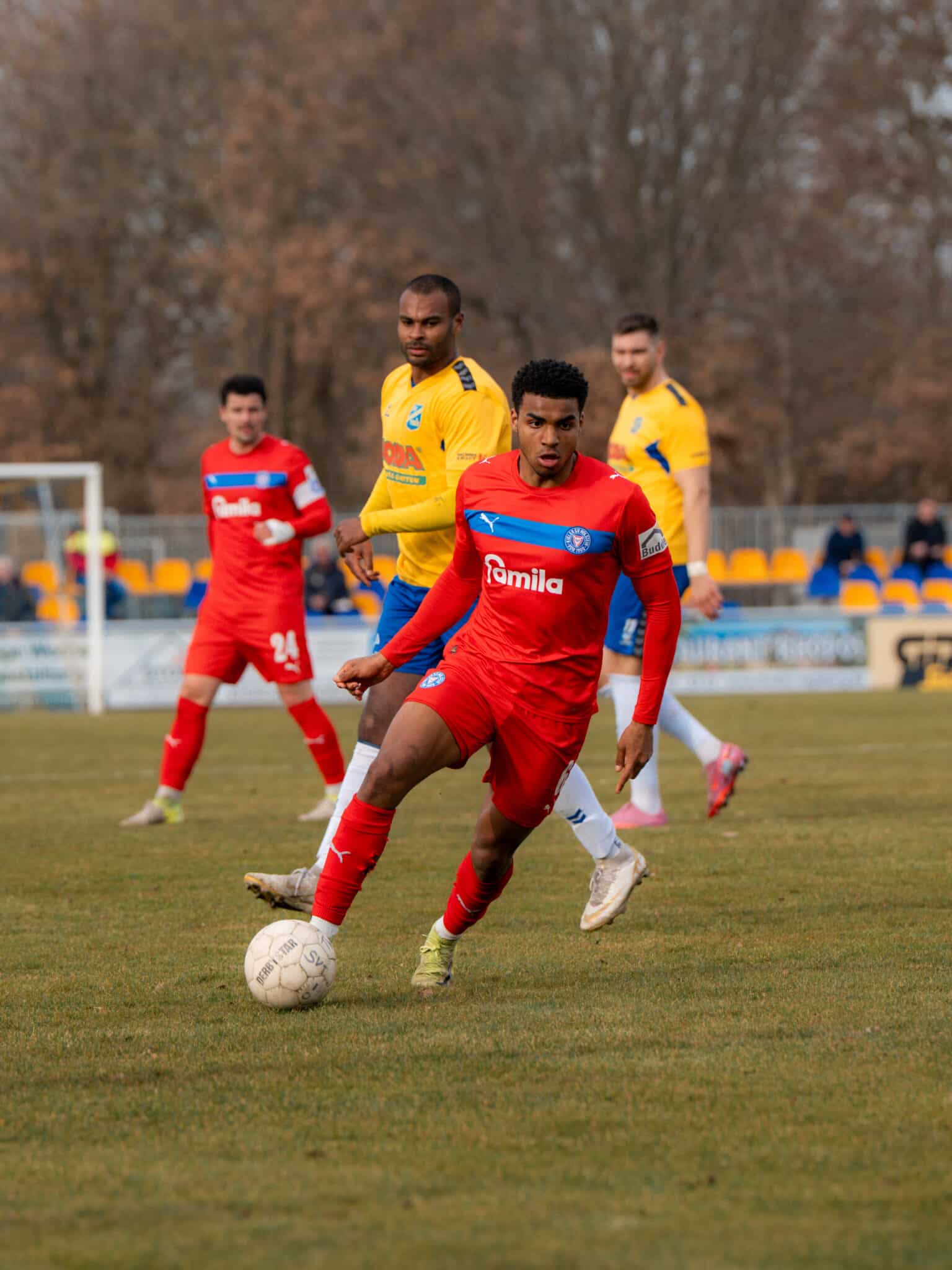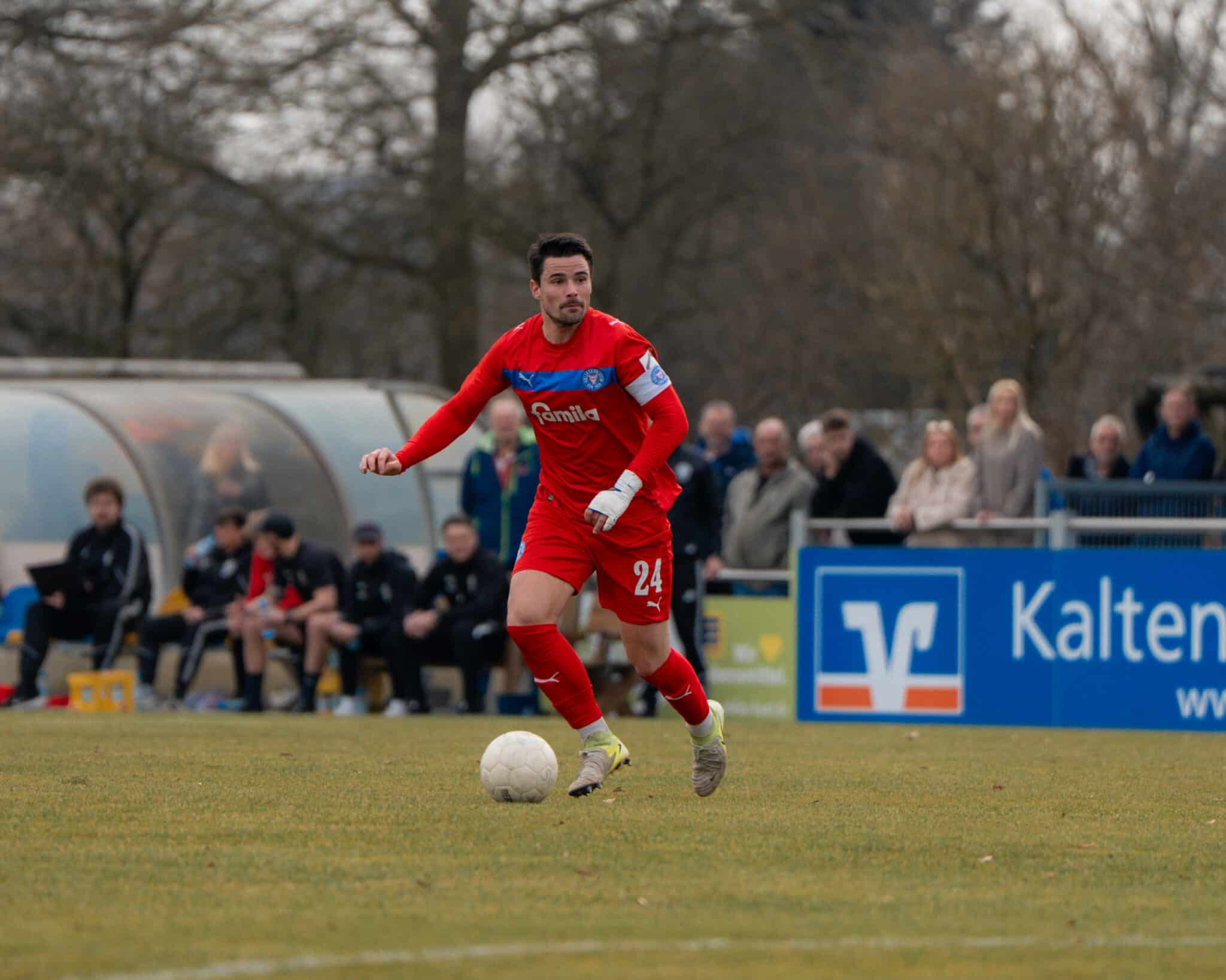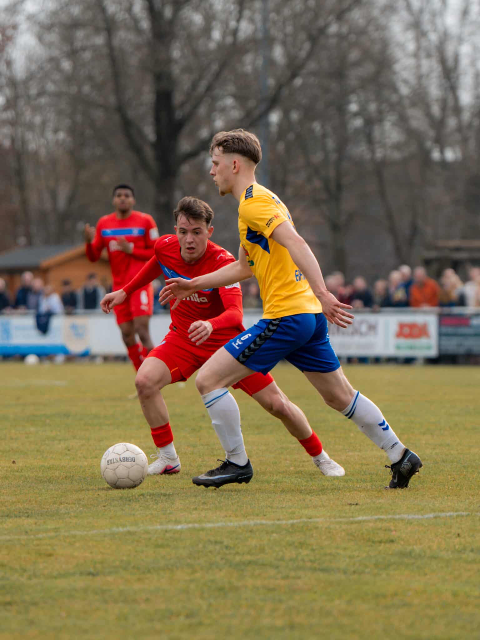 Es folgte eine kurze Druckphase der Todesfelder, die aber wieder durch eine gute Chance von Holsteins U23 beendet wurde. Auf Vorarbeit von Jakupovic schloss Niehoff in unmittelbarer Tornähe ab. Der Todesfelder Keeper Fabian Landvoigt konnte den Treffer aber im letzten Moment vereiteln. Wenig später war Landvoigt dann geschlagen – doch der Pfosten rettete für ihn. Holstein-Kapitän Malte Petersen hatte zuvor aus der Distanz abgezogen. Von dem Pech ließen sich unsere Jungstörche allerdings nicht beirren. Per direktem Freistoß aus halblinker Position zwang der umtriebige Niehoff den gegnerischen Torwart nach einer guten halben Stunde zu einer weiteren Parade. Und noch vor der Pause sorgte Niehoff abermals für Gefahr. Sein scharf getretener Freistoß von der linken Seite konnte nur mit Mühe vom Todesfelder Schlussmann entschärft werden. So blieb es vor der Halbzeitpause trotz des enormen Aufwands der Kieler beim torlosen Unentschieden.