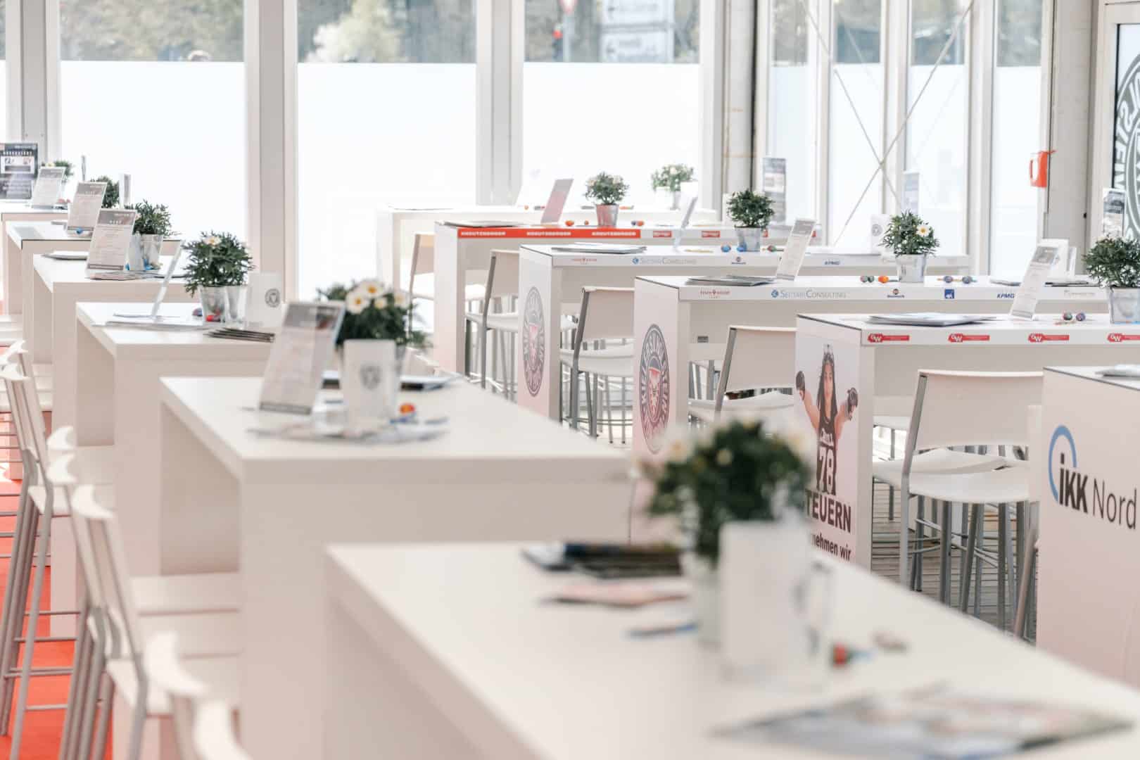 Einzigartiges Tischbranding ihrer saisonalen Plätze mit ihrem Unternehmenslogo in unserem VIP-Bereich