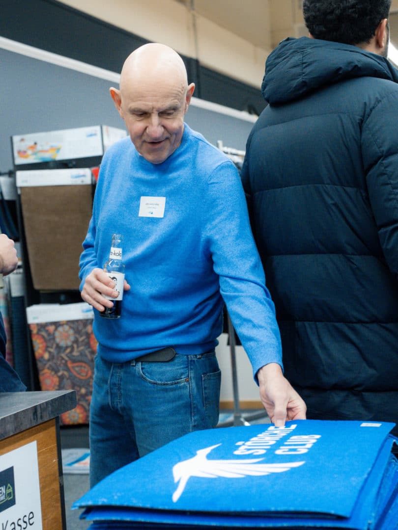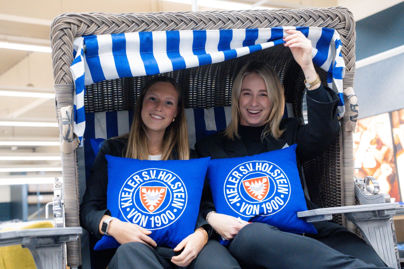 Das breite Produktportfolio des Bau- und Einrichtungsunternehmens zeigt sich unter anderem am Holstein-Kiel-Strandkorb und der eigens für den Störcheclub-Stammtisch gefertigte Fußmatte, die die Gäste kostenlos mitnehmen konnten.