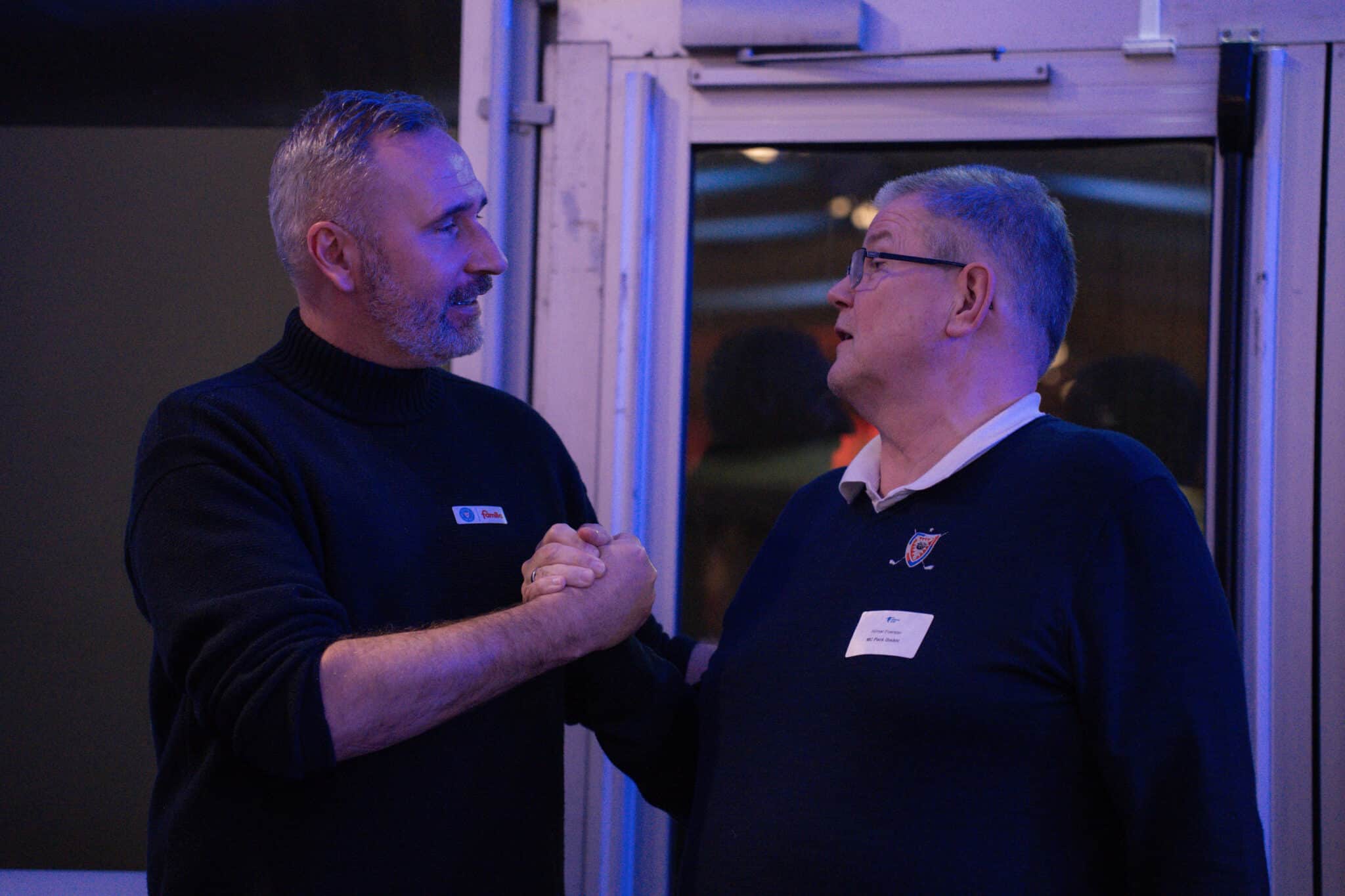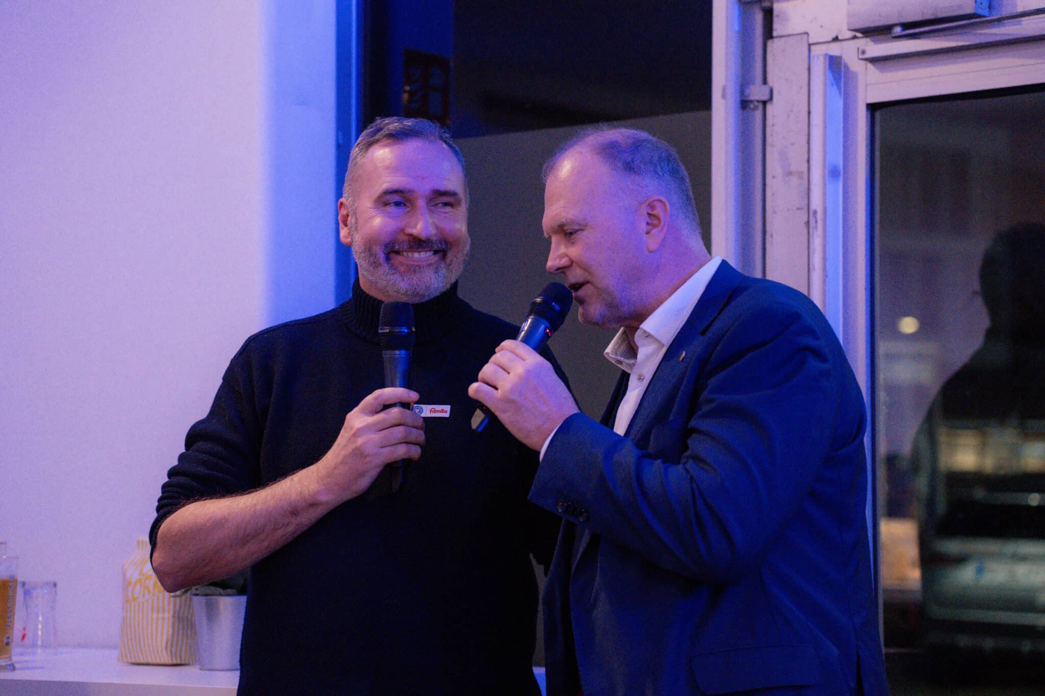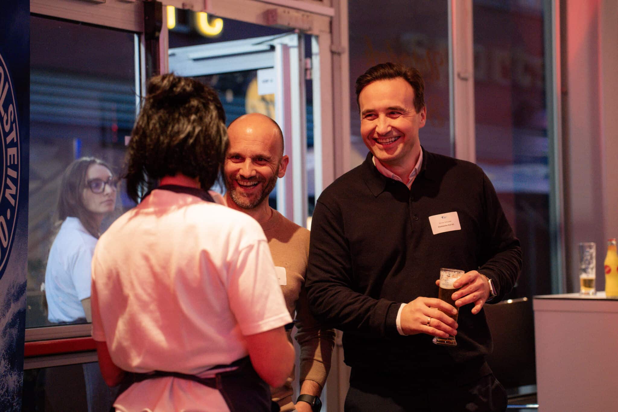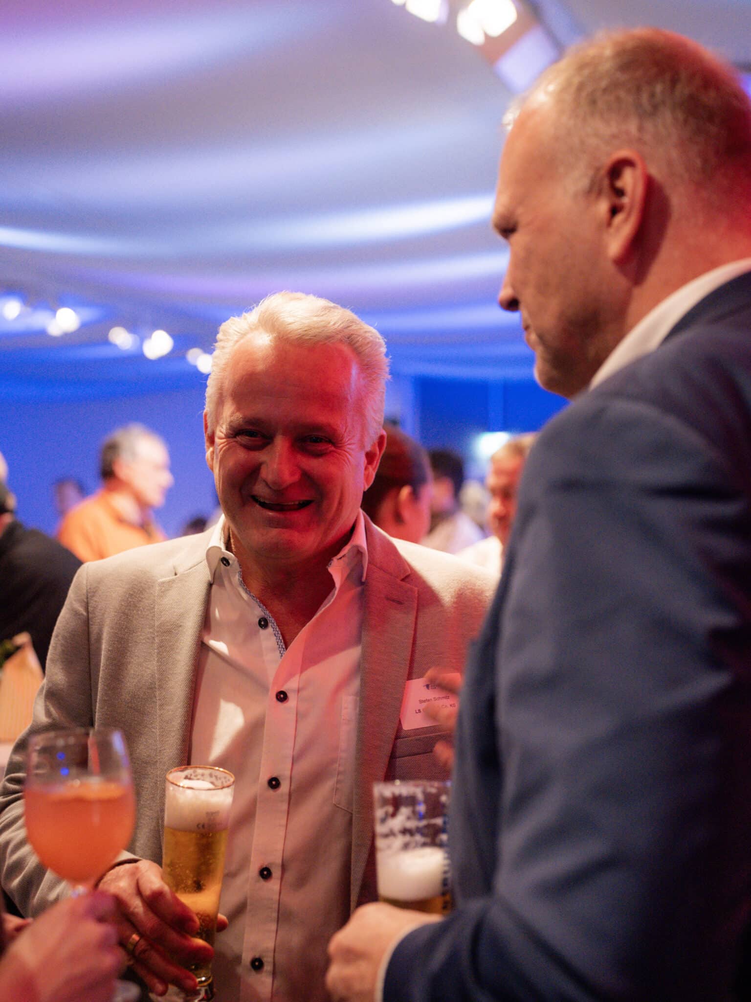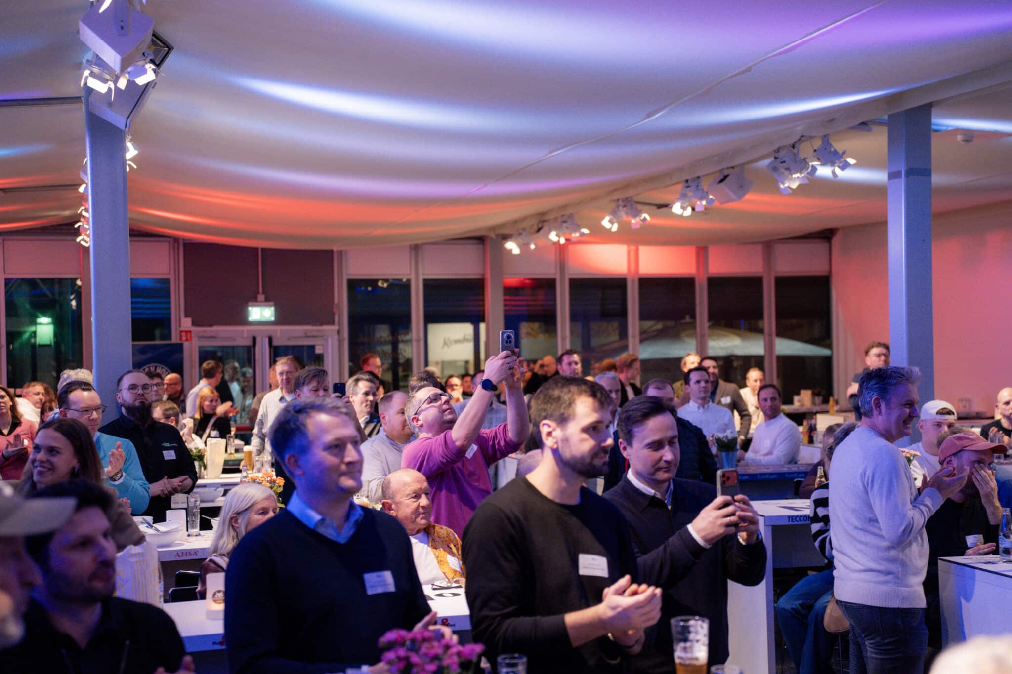 Zwei Fragen aus dem Publikum beantwortete Tim Walter schließlich noch direkt am Mikrofon, die meisten Partnerinnen und Partner nutzten dann aber im Nachgang die Gelegenheit, um in Ruhe Fotos mit dem neuen Trainerteam zu machen und über Fußball zu fachsimpeln. So ließen die Gäste den Stammtisch in entspannter Atmosphäre ausklingen.