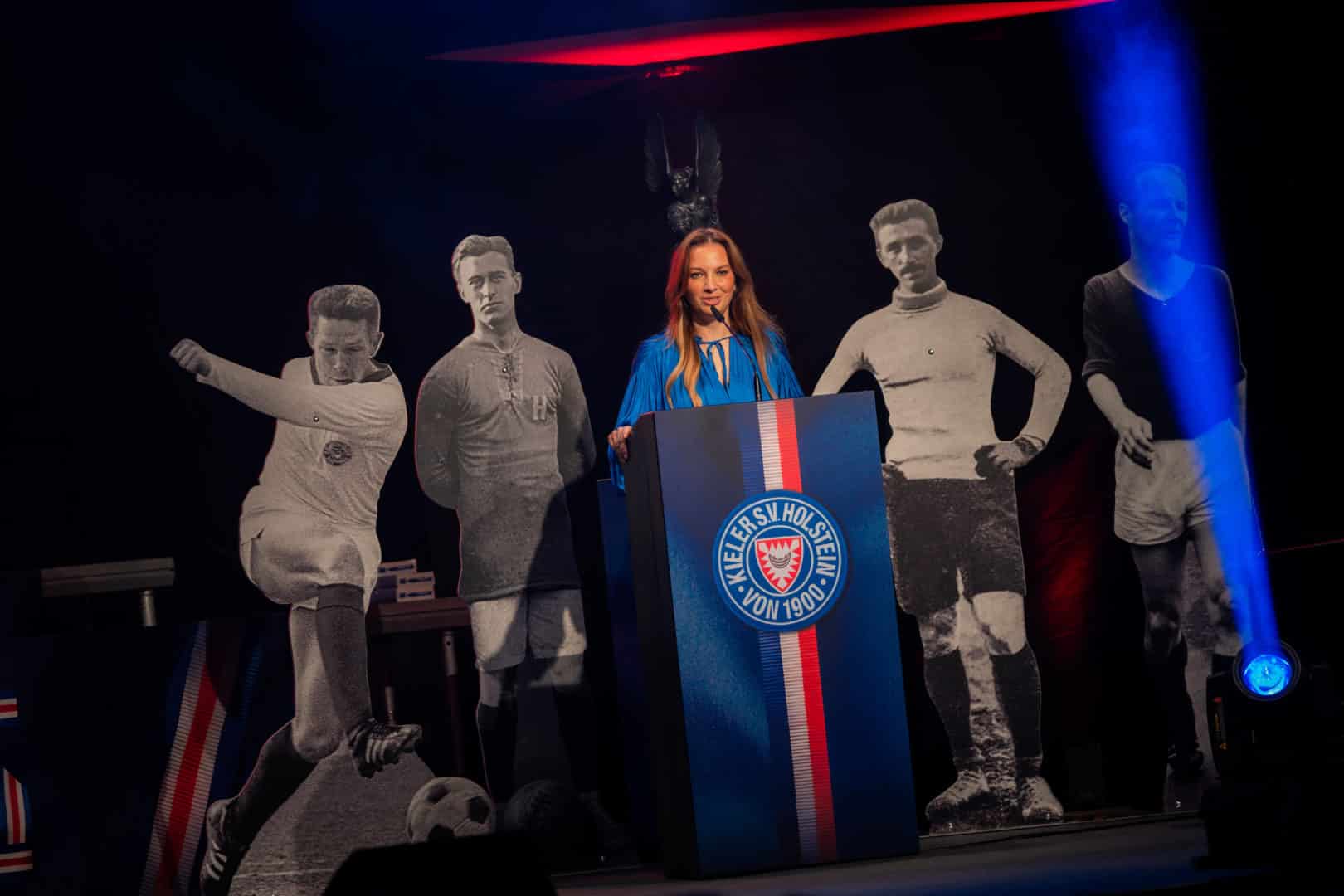 Bereits zuvor war der Abend mit Gänsehaut-Momenten gestartet: Erst lauschte das Publikum unvergesslichen Radiosequenzen aus 125 Jahren Holstein Kiel, ehe Die Denkedrans mit ihrer Hymne „Keine andere Stadt, keine andere Liebe, kein anderer Verein“ direkt für Stimmung sorgten. Parallel wurde mit der Victoria die Replik der Meistertrophäe des Jahres 1912 präsentiert.