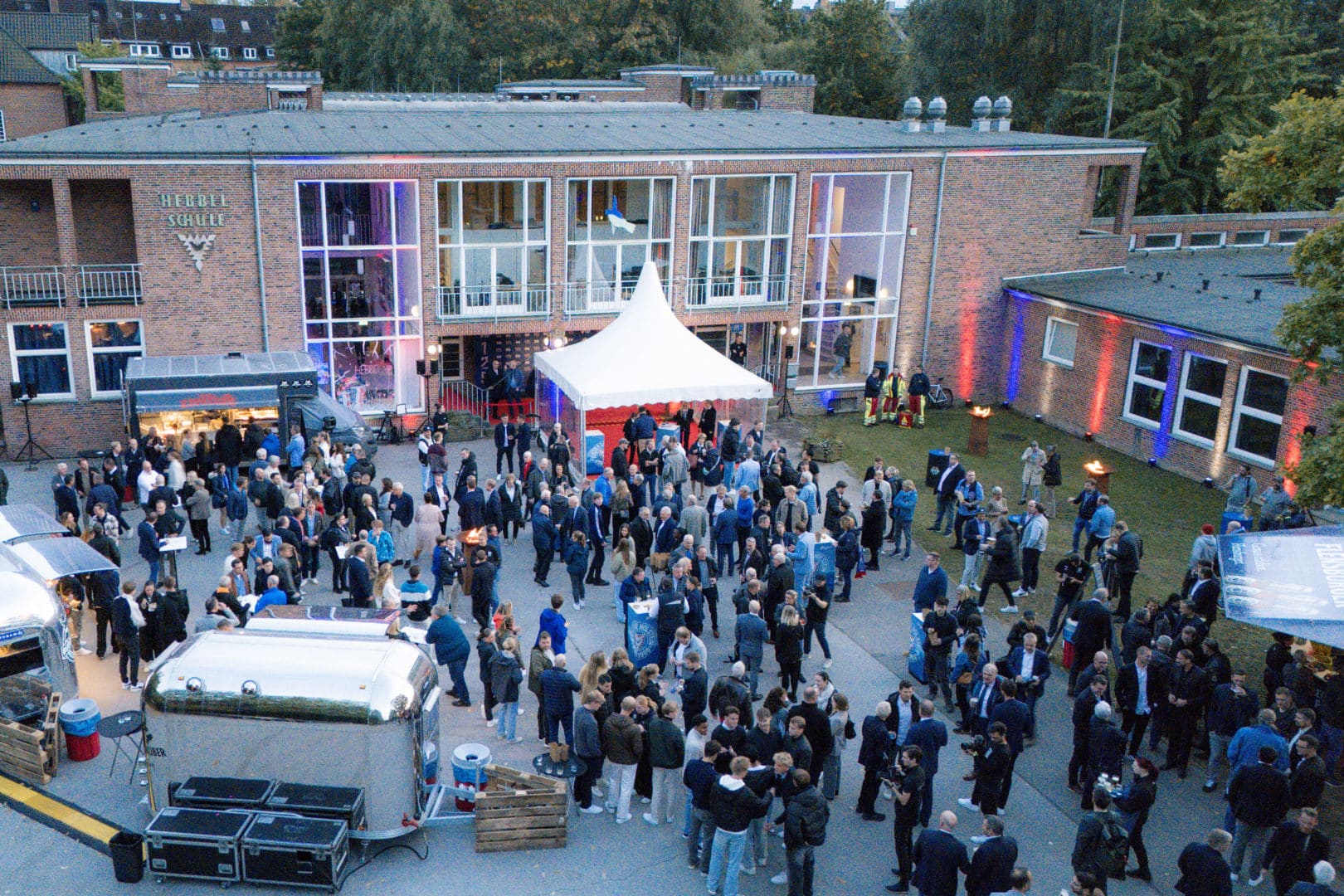 Die Wahl des Veranstaltungsortes war auf die Hebbelschule gefallen, weil am 4. Mai 1902 mit Friedrich Brügmann, Walter Duden und Hans Gosch drei Hebbelschüler in einer Gartenlaube am Knooper Weg den Kieler Fußball-Club Holstein gegründet hatten, der im Jahr 1917 mit dem am 7. Oktober 1900 gegründeten 1. Kieler Fußball-Verein von 1900 zur heutigen Kieler Sportvereinigung Holstein von 1900 e. V. fusionierte. Hierauf ging auch KSV-Präsident Steffen Schneekloth, selbst ehemaliger Hebbelschüler, in seiner Begrüßungsrede ein, und konstatierte hinsichtlich des besonderen Jubiläums: „125 Jahre Holstein Kiel – das sind 125 Jahre Leidenschaft, Zusammenhalt und natürlich, unzählige unvergessliche Momente – aber vor allem: Eine große, gelebte Fußballtradition.“