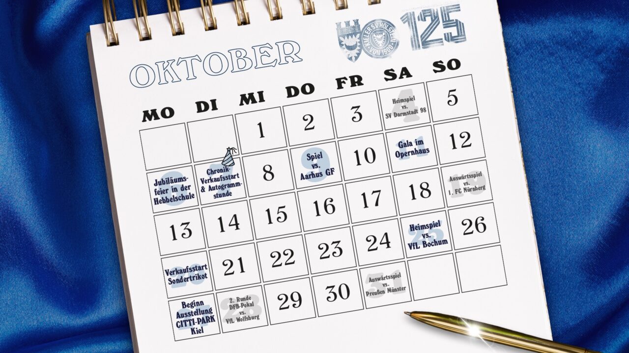 Das große Jubiläum unserer KSV Holstein rückt immer näher: Am 7. Oktober 1900 wurde unser Traditionsverein gegründet, sodass bereits in Kürze der 125. Geburtstag gefeiert werden kann. Nachdem alle Holstein-Fans im bisherigen Jubiläumsjahr bereits denkwürdige Momente wie die erste Bundesliga-Saison der Vereinsgeschichte, die Einweihung der Ernst-Möller-Straße, die Rückkehr der Victoria oder die Umbenennung von drei Trainingsplätzen nach Vereinslegenden miterleben durften, stehen im Zuge dieses besonderen Geburtstages im kommenden Monat weitere Highlights bevor.